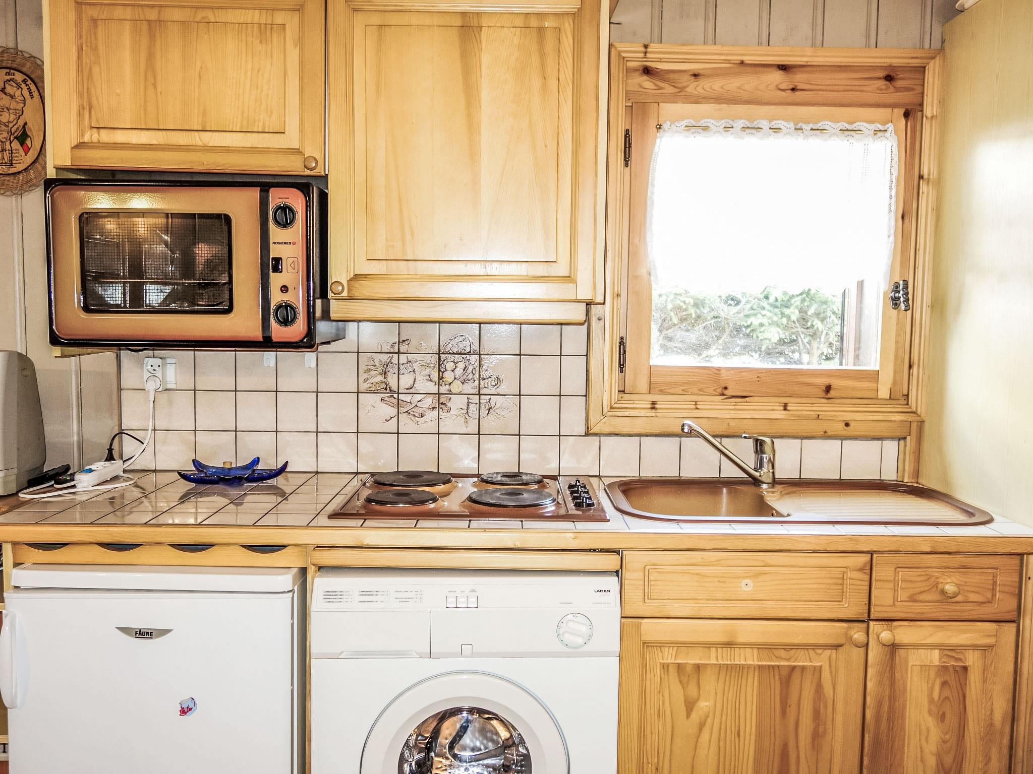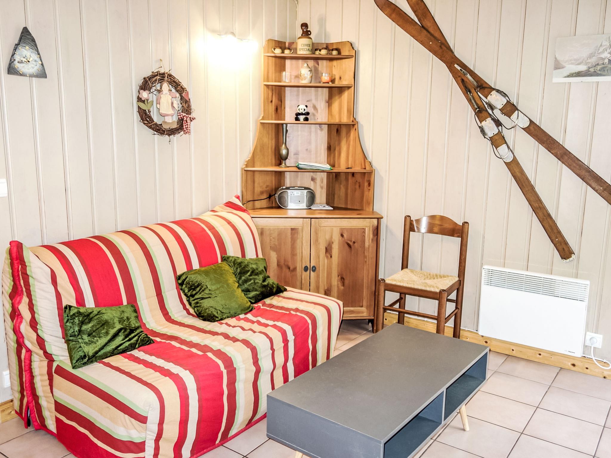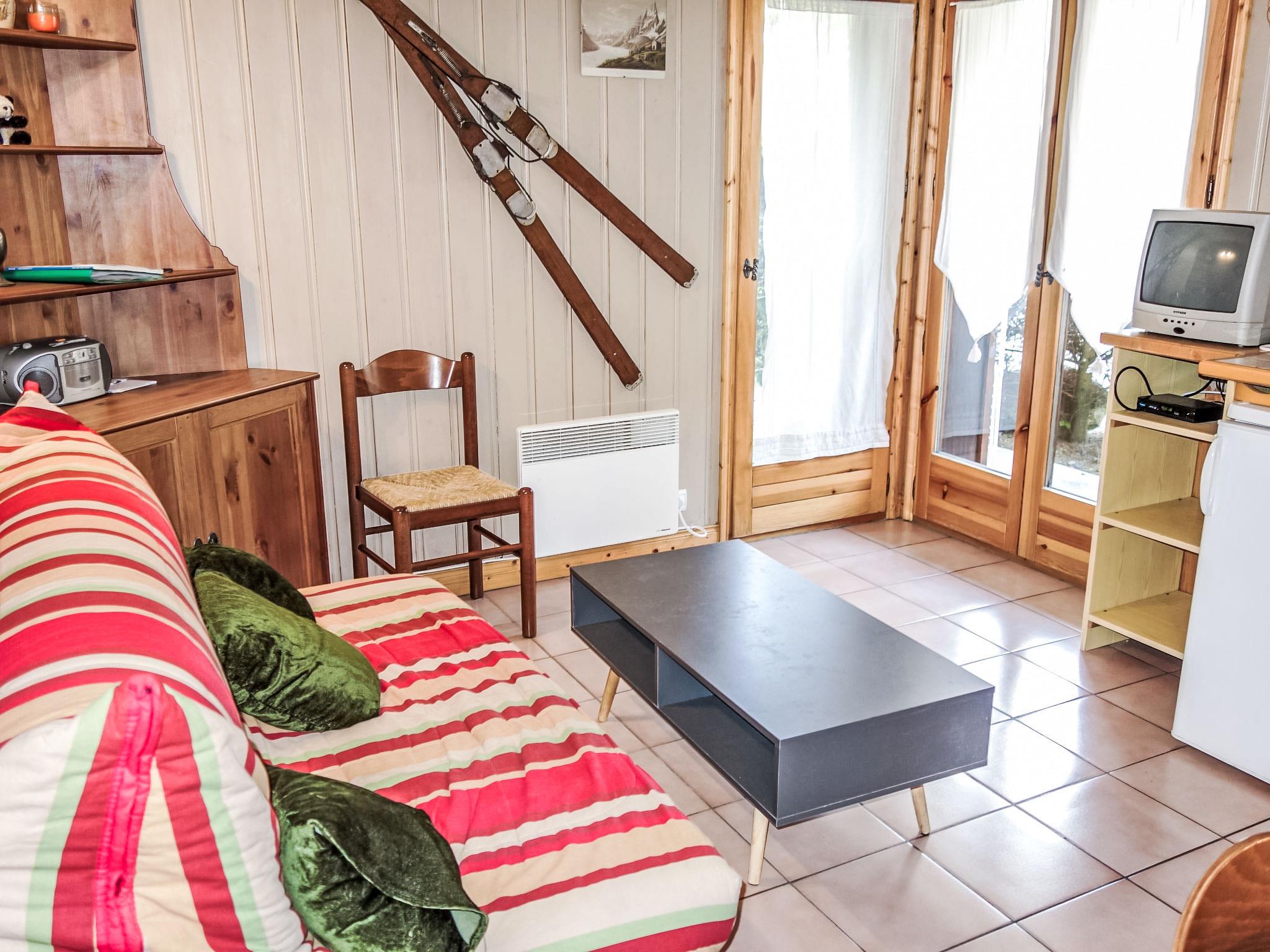 "Jardins Alpins 1", 2-room apartment 30 m2, on the ground floor. Entrance hall. Living/dining room with TV, flat screen and CD-player. 1 room with 1 french bed (140 cm). Living/sleeping room with 1 x 2 bunk beds (80 cm). Kitchenette (4 hot plates, mini-oven, oven, toaster, kettle, electric coffee machine, raclette grill). Shower/WC. Electric heating. West facing position, small terrace. Facilities: washing machine, iron, hair dryer. Internet (WiFi, extra). Garage space n 44. Please note: non-smokers only. TV only FR. Smoke alarm.
