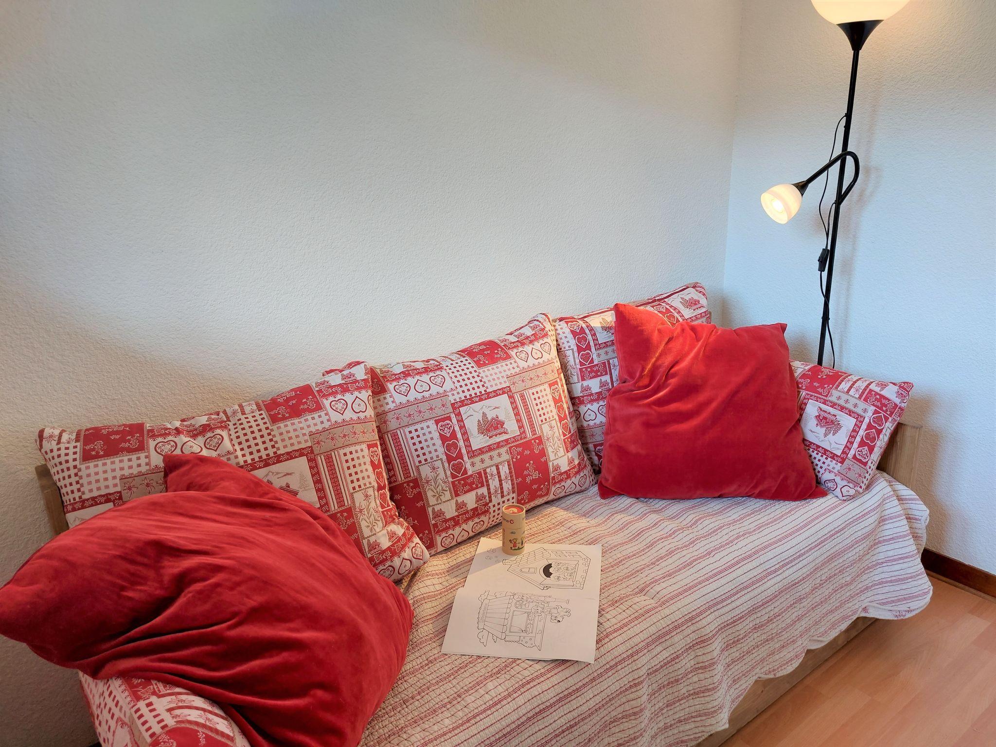 "Les chalets du soleil", 1-room studio 22 m2 on 1st floor. Living/dining room with 1 sofabed (140 cm, length 200 cm), TV (flat screen). Exit to the balcony. Sleeping alcove with 2 pull-out beds (2 x 80 cm, length 190 cm). Kitchenette (2 hot plates, toaster, kettle, electric coffee machine, combination microwave). Bath/WC. Electric heating. Balcony, west facing position. Balcony furniture. Beautiful panoramic view of the mountains. Facilities: Internet (WiFi, extra). Garage space n 11. Please note: TV only FR. Smoke alarm. Instead of an enclosed bedroom, some sleeping areas are located in an open-plan area (gallery, alcove, etc.). Offer by a private individual according to Art. 155, IV of CGI. 742360259092