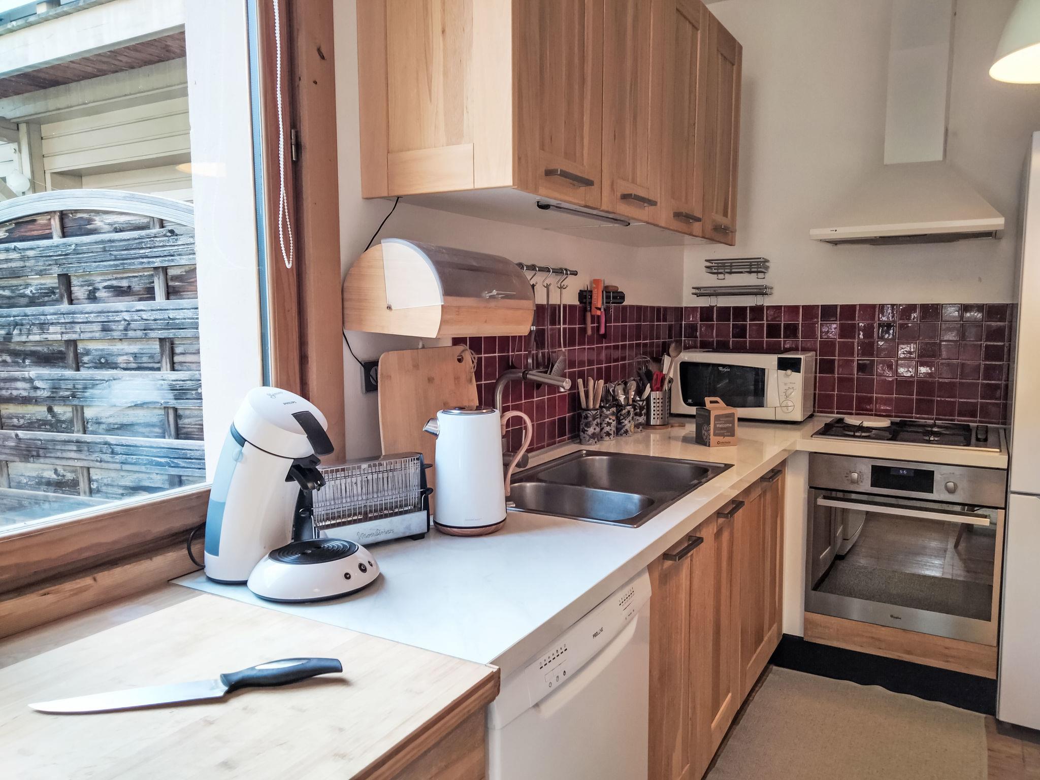 "Chalet du Rosay", 4-room apartment 60 m2, on the upper ground floor. Living/dining room with dining table and TV (flat screen). Exit to the balcony. 1 room with 2 beds (80 cm, length 190 cm). 1 room with 1 french bed (160 cm, length 190 cm). Open kitchen (1 hot plate, oven, dishwasher, 3 gas rings, toaster, kettle, microwave, freezer, electric coffee machine, raclette grill). Bath/WC. Electric heating. On the lower ground floor: (exterior staircase), 1 room with 1 french bed (160 cm, length 190 cm), shower/WC. Balcony, east facing position. Balcony furniture. Beautiful panoramic view of the mountains and the resort. Facilities: washing machine, dryer, children's high chair, baby cot for up to 3 year olds. Internet (WiFi, free). Parking space n 1 (2 cars). Please note: one double bedroom is outside the apartment. Non-smokers only. TV only FR. Smoke alarm. No internal connecting door between the floors. Offer by a private individual according to Art. 155, IV of CGI.