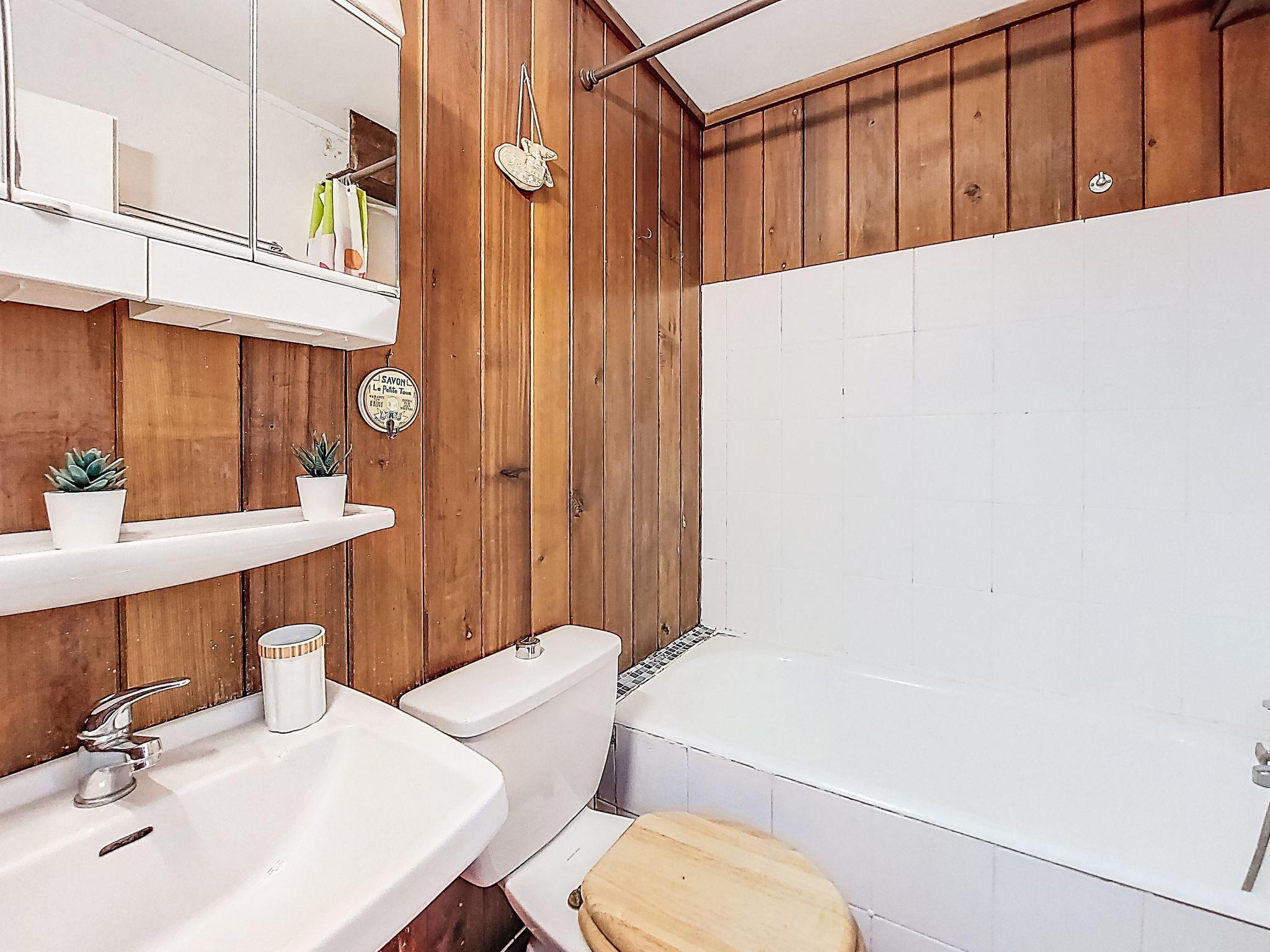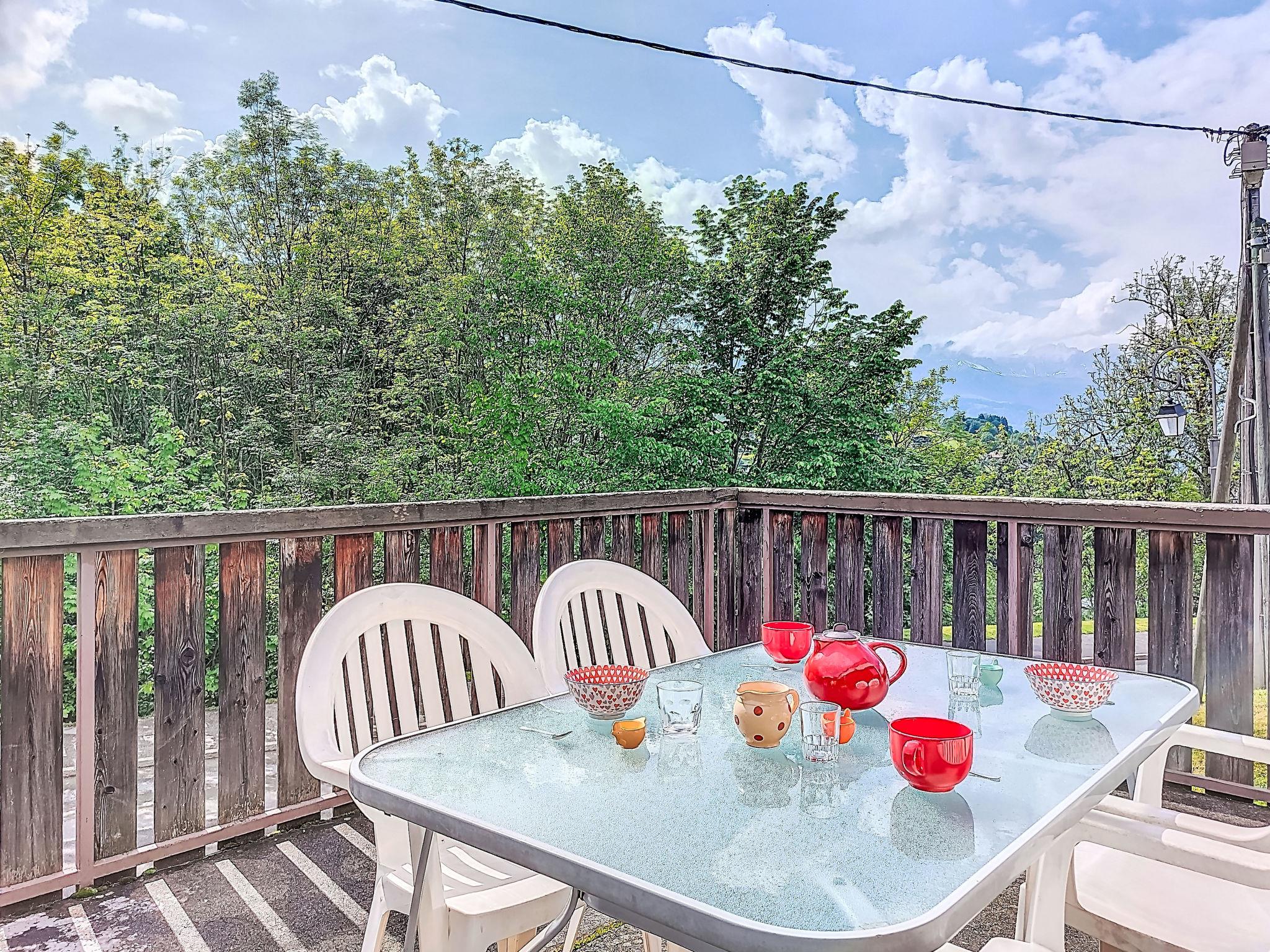 "Le Sporting", 2-room apartment 39 m2. Living/dining room with 1 double sofabed (140 cm), TV. Exit to the terrace, south facing position. 1 room with 1 x 2 bunk beds (90 cm), 1 double wall-trunk bed (140 cm). Exit to the terrace. Kitchenette (oven, 3 induction hot plates, toaster, kettle, electric coffee machine, combination microwave). Bath/WC. Oil heating. Large terrace. Terrace furniture. View of the mountains. Facilities: hair dryer. Internet (WiFi, extra). Parking (roofed, 1 car). Please note: TV only FR. Smoke alarm.