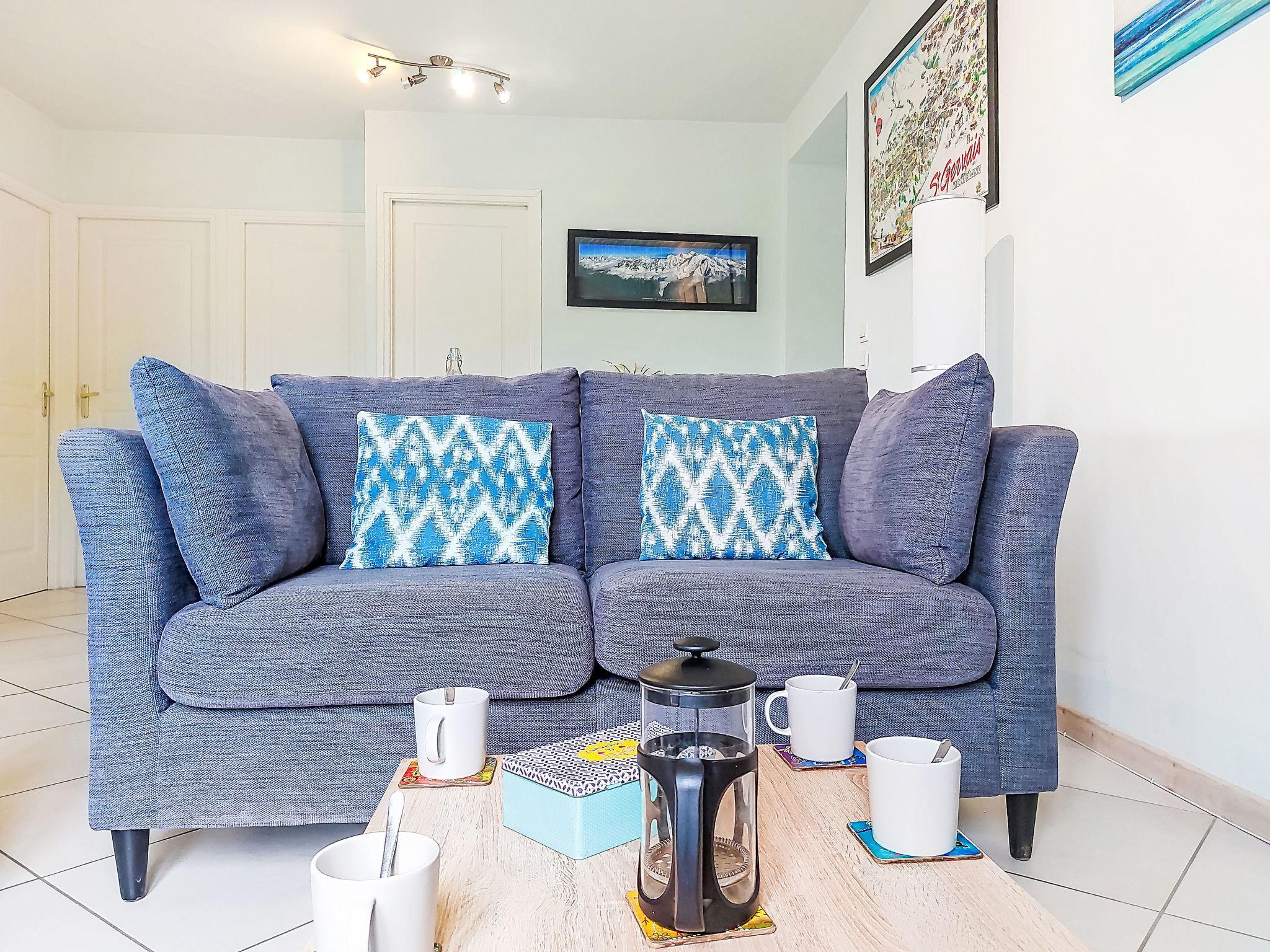 "Les Gentianes", 3-room apartment 59 m2 on 3rd floor. Living/dining room with TV and flat screen. Exit to the balcony. 2 rooms, each room with 1 french bed (1 x 140 cm). Sleeping alcove with 1 x 2 bunk beds (90 cm). Open kitchen (oven, dishwasher, 4 ceramic glass hob hotplates, toaster, kettle, microwave, electric coffee machine). Bathroom, shower/WC. Electric heating. Balcony 6 m2. Beautiful view of the mountains. Facilities: washing machine, hair dryer. Internet (WiFi, free). Blu-ray player. Parking (roofed, 1 car). Please note: non-smokers only. TV only FR, EN. Smoke alarm. Instead of an enclosed bedroom, some sleeping areas are located in an open-plan area (gallery, alcove, etc.).