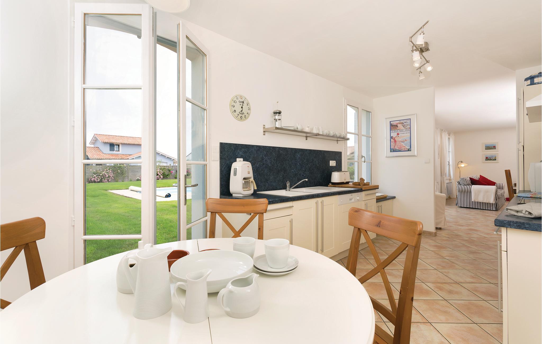 Huset ligger i en feriepark lige ved golfbanen Les Fontenelles og kun en kort køretur fra havet.