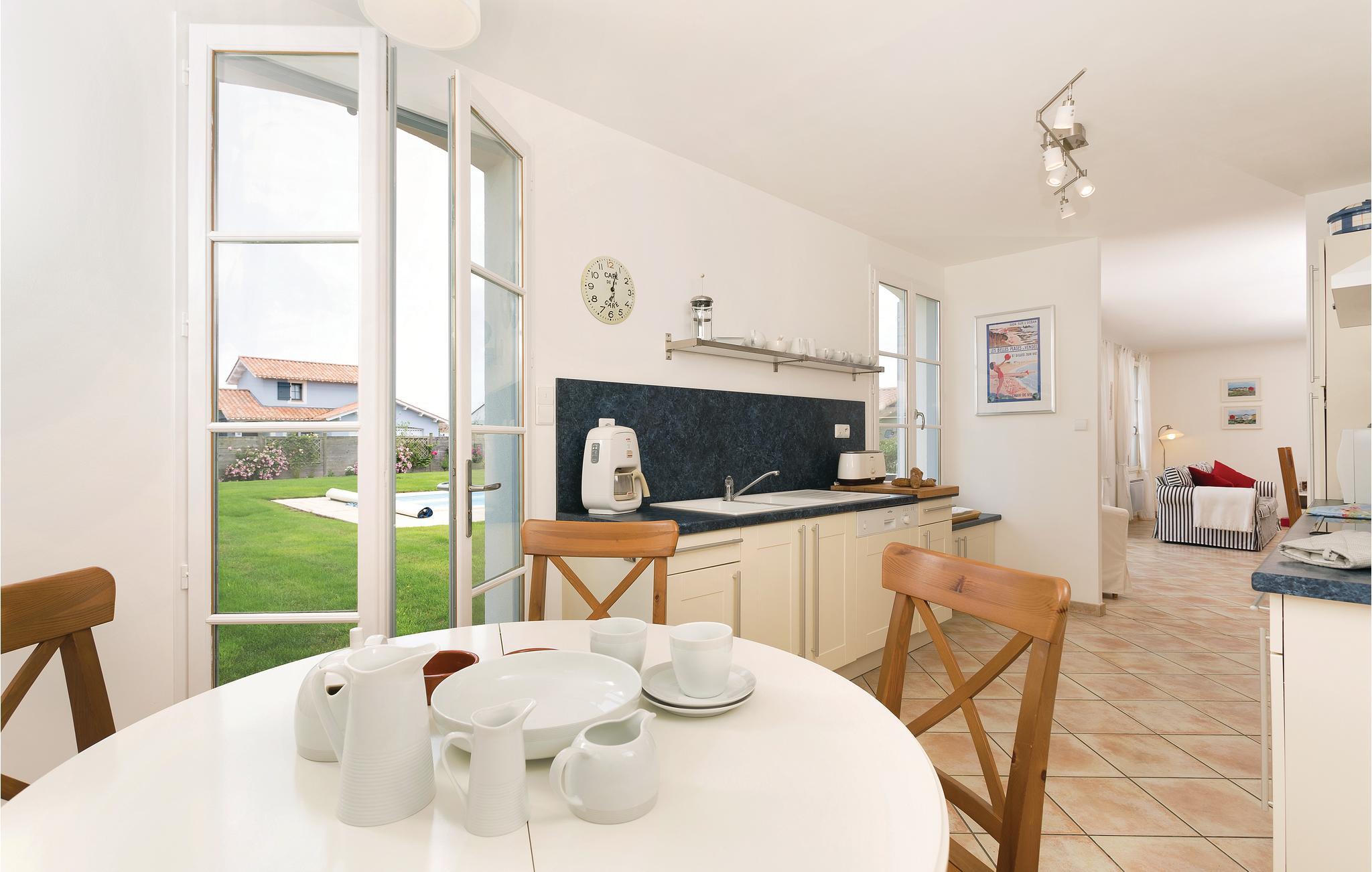 Huset ligger i en feriepark lige ved golfbanen Les Fontenelles og kun en kort køretur fra havet.