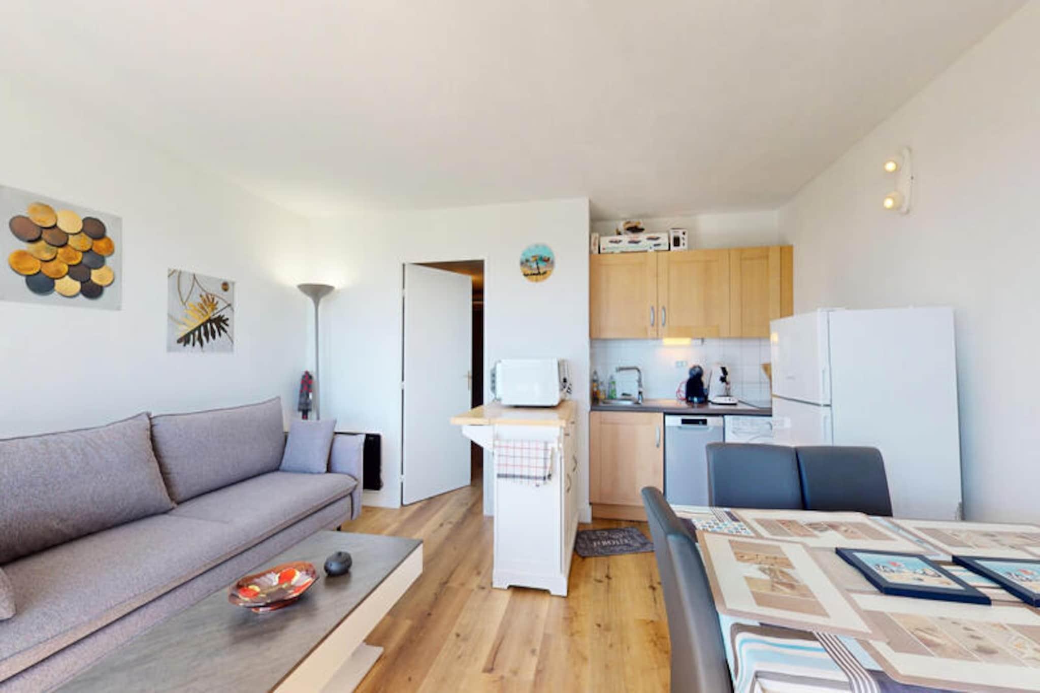 Forestil dig at vågne op til den beroligende lyd af bølger og synet af det glitrende Atlanterhav fra din private balkon. Le Reflet Marin, der ligger kun 100 meter fra sandstranden i Saint-Jean-de-Monts, inviterer dig til at opleve en rolig kystferie. Beliggende i en fredelig bolig med en opvarmet udendørs pool, tilbyder denne lejlighed den perfekte blanding af afslapning og rekreation for familier eller par, der søger en mindeværdig ferie. Fra juni til september kan du nyde luksusen af ??en forfriskende dukkert eller blot slappe af, mens du nyder den betagende udsigt over Yeu-øen og den nærliggende golfbane. Indvendigt er lejligheden omhyggeligt designet til komfort og bekvemmelighed. Det hyggelige soveværelse har en dobbeltseng og rigelig opbevaringsplads, mens to køjesenge i entréen og en sovesofa i stuen giver fleksible sovepladser til op til seks gæster. Det fuldt udstyrede køkken indeholder alt, hvad du behøver for at tilberede lækre måltider, fra køleskab og ovn til mikrobølgeovn og brødrister. Badeværelset med badekar og separat toilet sikrer et behageligt ophold, mens balkonen bliver dit yndlingssted til udendørs spisning med panoramaudsigt over havet. Træd udenfor og oplev charmen ved Saint-Jean-de-Monts. Udforsk kilometervis af cykelstier, der snor sig gennem klitter og skove, eller tag en afslappet gåtur langs L'Estacade, den ikoniske mole, der strækker sig ud i havet. Besøg de pulserende lokale markeder for at nyde regionale specialiteter og friske råvarer, og fordyb dig i Vendée-regionens smagsoplevelser. Med privat parkeringskælder og yderligere gratis parkering til rådighed er dit ophold lige så bekvemt, som det er dejligt. Uanset om du søger eventyr eller ro, tilbyder Le Reflet Marin idylliske omgivelser til at skabe dyrebare minder ved havet. Book dit ophold i dag, og lad havbrisen forynge din ånd.