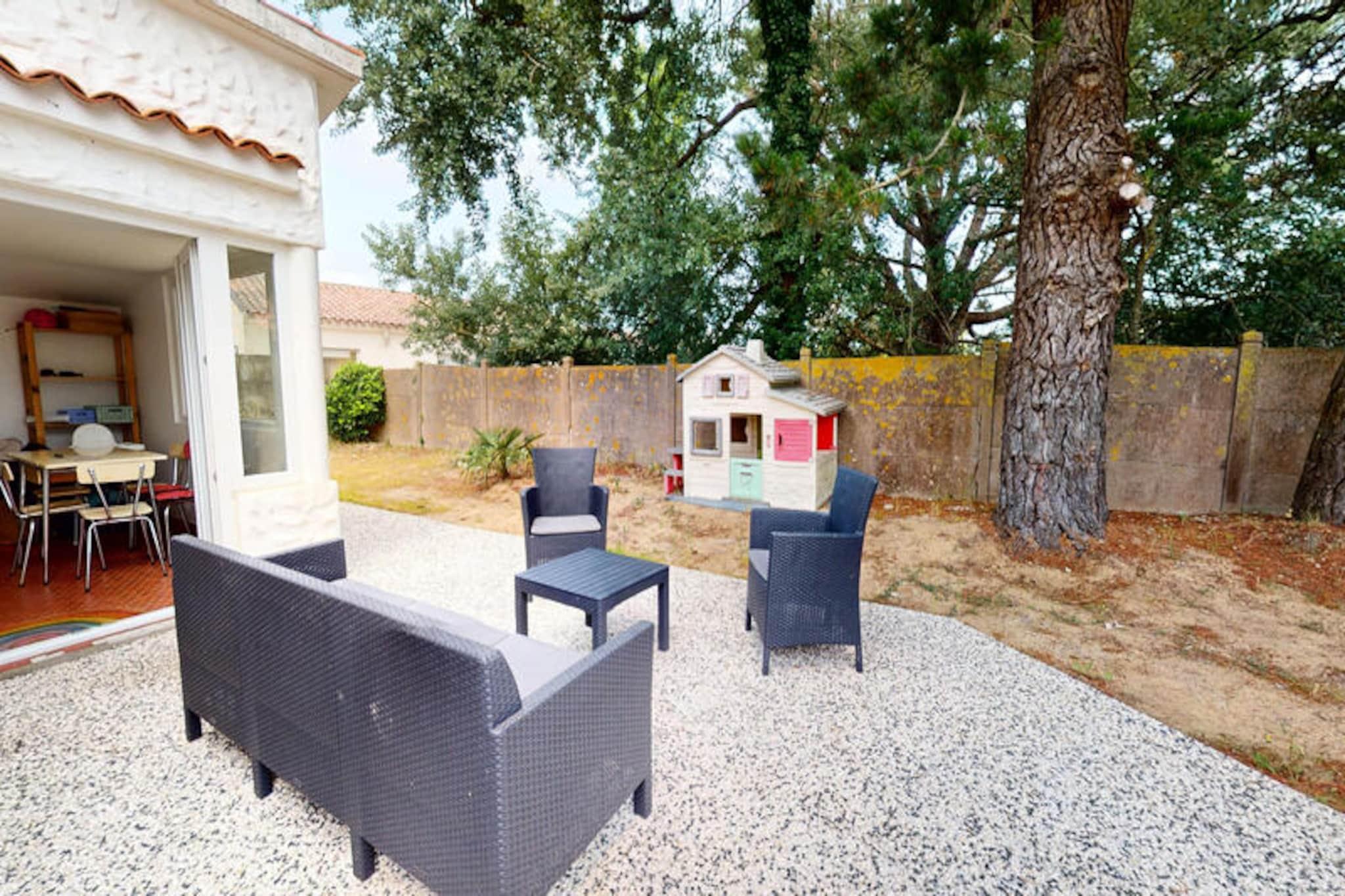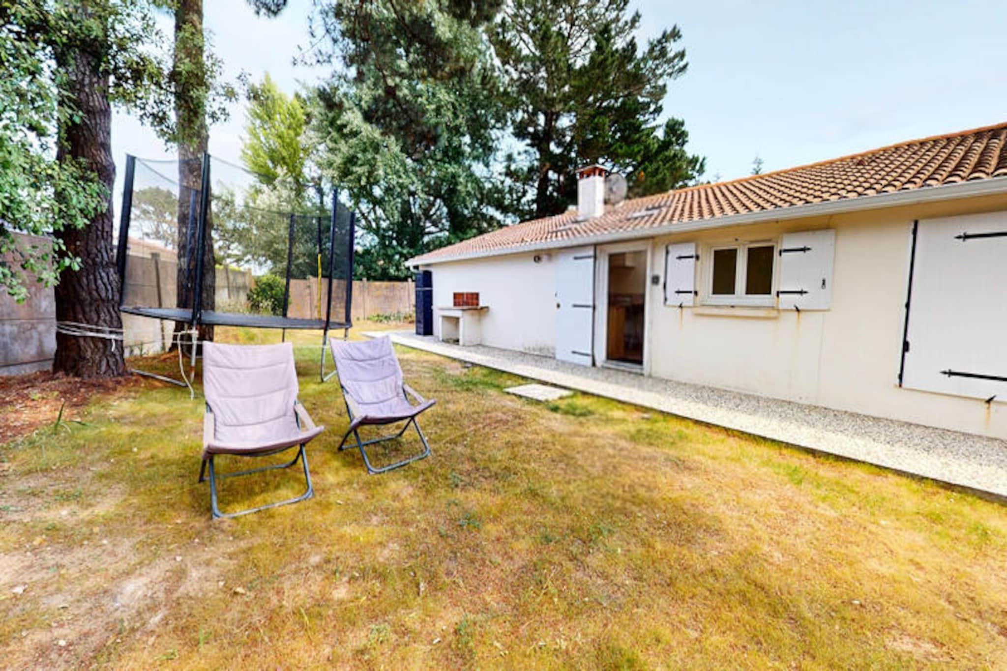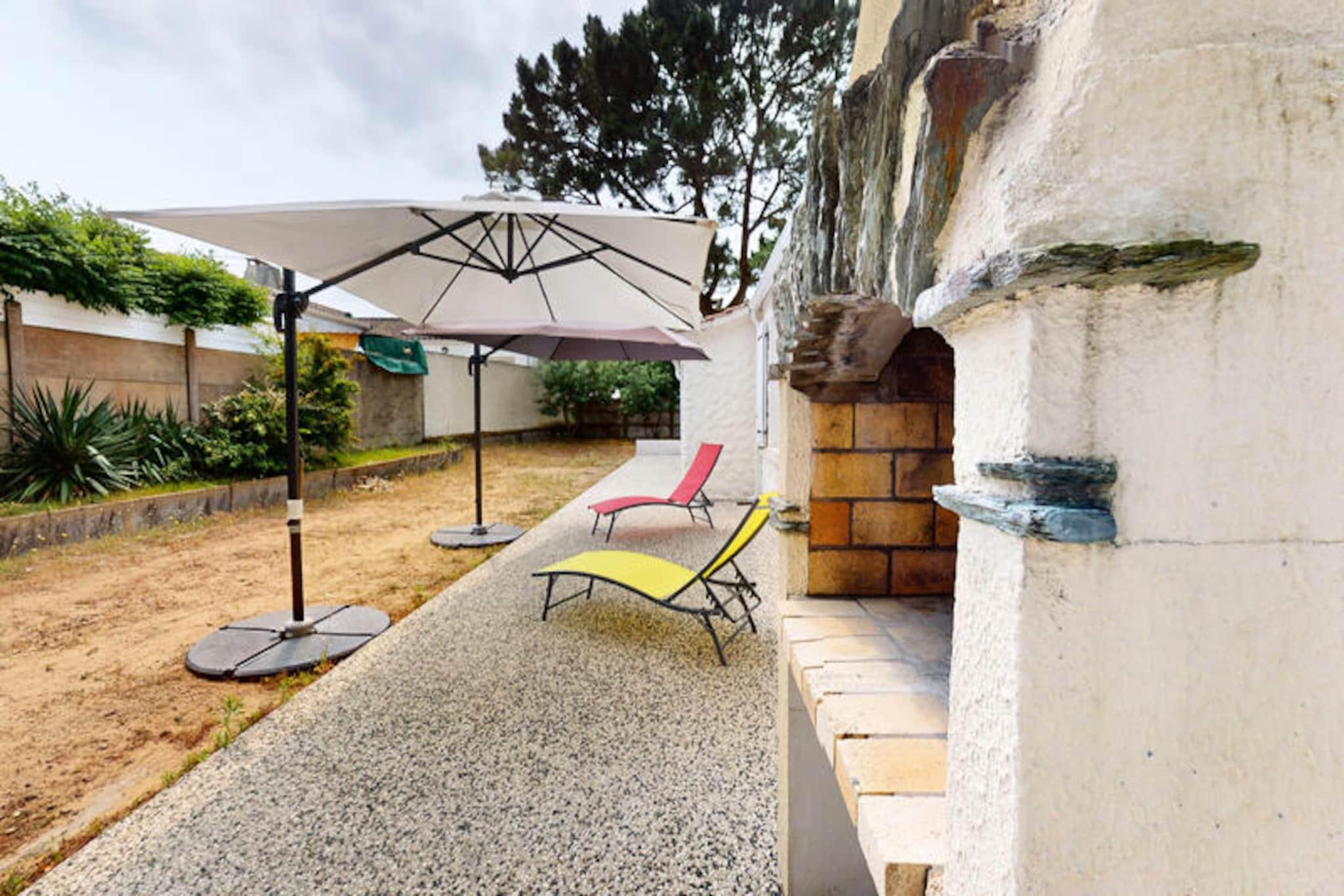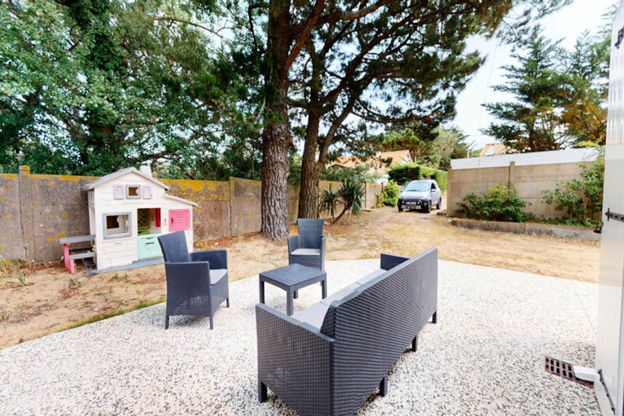I den rolige kystby Brétignolles-sur-Mer, kun 800 meter fra gyldne sandstrande, inviterer Pomme de Pins dig til at slappe af og genoprette forbindelsen til naturen. Dette charmerende feriehus er en oase af komfort og enkelhed, perfekt til familier, par eller venner, der søger en rolig flugt langs Vendée-kysten. Forestil dig at vågne op til lyden af ??havbrise, nyde morgenmaden i den lukkede have og tage på en dag med eventyr ved havet. \n\nIndenfor er huset omhyggeligt designet til at rumme op til fire gæster. Den hyggelige stue er et indbydende sted at slappe af efter en dag med udforskning af kysten, mens spisestuen med sit store bord sætter scenen for fælles måltider og latter. Det fuldt udstyrede køkken sikrer, at du nemt kan tilberede dine yndlingsretter, med ovn, komfur, køleskab, mikrobølgeovn og kaffemaskine. Sovepladserne omfatter et soveværelse med en komfortabel dobbeltseng og et andet soveværelse med to enkeltsenge, ideelt til børn eller ekstra gæster. Badeværelset har et badekar, perfekt til afslapning, og et separat toilet gør det endnu mere praktisk.\n\nTræd udenfor for at opdage den private, fuldt lukkede have - et sandt højdepunkt ved denne ejendom. Uanset om du spiser udendørs, lader børnene lege frit eller bare nyder solen, tilbyder dette udendørsområde fred og privatliv. Hjemmets beliggenhed i et roligt kvarter sikrer et afslappende ophold, mens dets nærhed til stranden, lokale butikker og cykelstier gør det nemt at udforske området. Surfentusiaster vil elske det nærliggende surfspot La Sauzaie, mens naturelskere kan nyde naturskønne vandreture omkring Jaunay-søen eller picnics i den fri natur.\n\nFor familievenlig underholdning ligger Parc des Dunes en kort køretur væk, og den charmerende havneby Saint-Gilles-Croix-de-Vie byder på dejlige markeder og kystcharme. En 25-minutters kørsel bringer dig til Les Sables-d'Olonne, kendt for sin store strand og livlige attraktioner, mens den verdensberømte forlystelsespark Puy du Fou kun ligger en time væk. Med sin blanding af komfort, bekvemmelighed og kystnære charme er Pomme de Pins den perfekte base for en uforglemmelig ferie.