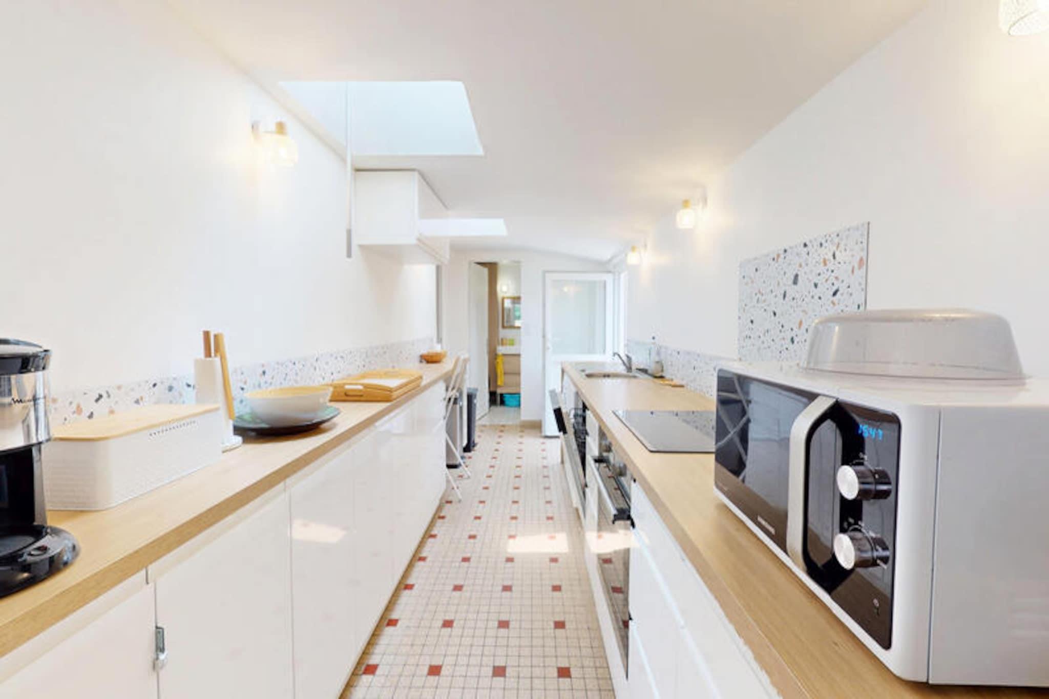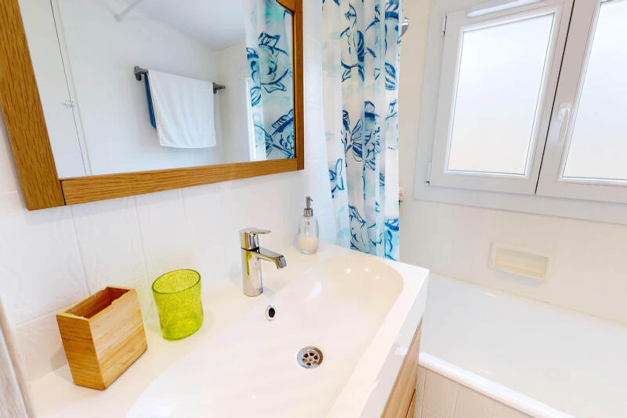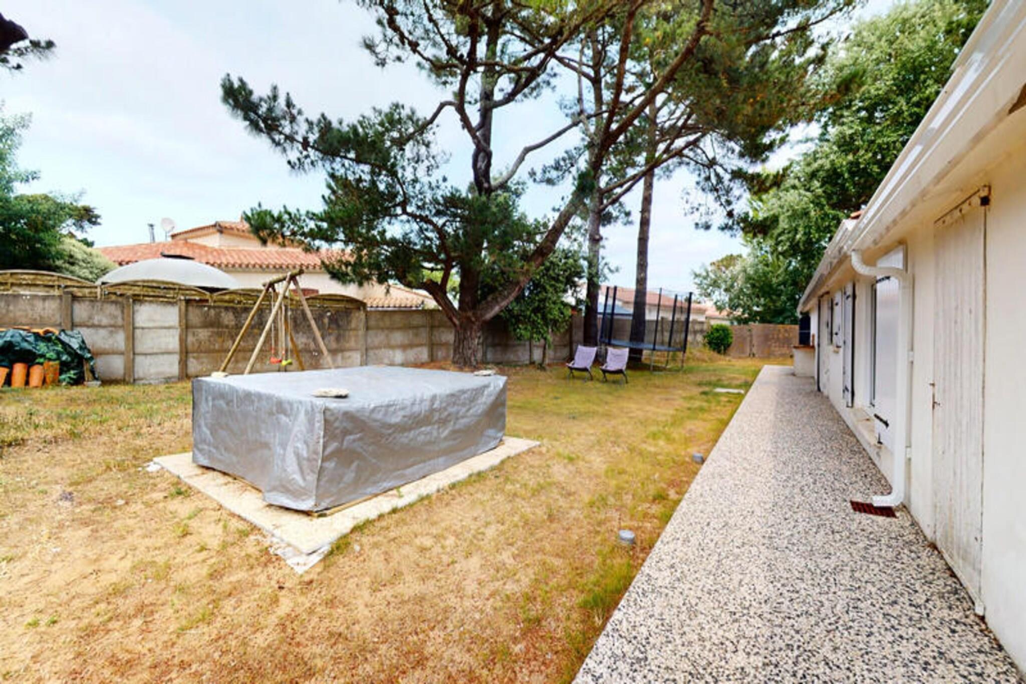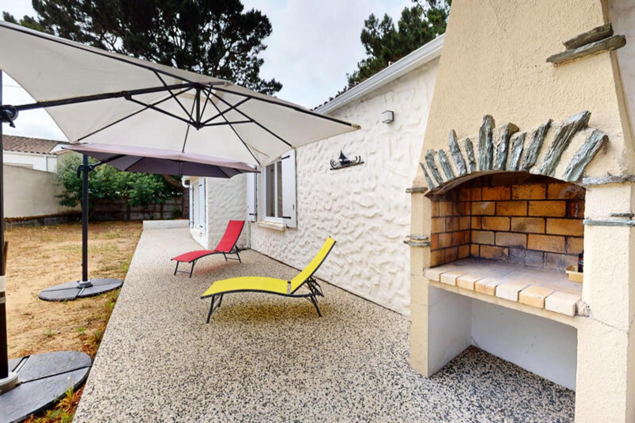 I den rolige kystby Brétignolles-sur-Mer, kun 800 meter fra gyldne sandstrande, inviterer Pomme de Pins dig til at slappe af og genoprette forbindelsen til naturen. Dette charmerende feriehus er en oase af komfort og enkelhed, perfekt til familier, par eller venner, der søger en rolig flugt langs Vendée-kysten. Forestil dig at vågne op til lyden af ??havbrise, nyde morgenmaden i den lukkede have og tage på en dag med eventyr ved havet. \n\nIndenfor er huset omhyggeligt designet til at rumme op til fire gæster. Den hyggelige stue er et indbydende sted at slappe af efter en dag med udforskning af kysten, mens spisestuen med sit store bord sætter scenen for fælles måltider og latter. Det fuldt udstyrede køkken sikrer, at du nemt kan tilberede dine yndlingsretter, med ovn, komfur, køleskab, mikrobølgeovn og kaffemaskine. Sovepladserne omfatter et soveværelse med en komfortabel dobbeltseng og et andet soveværelse med to enkeltsenge, ideelt til børn eller ekstra gæster. Badeværelset har et badekar, perfekt til afslapning, og et separat toilet gør det endnu mere praktisk.\n\nTræd udenfor for at opdage den private, fuldt lukkede have - et sandt højdepunkt ved denne ejendom. Uanset om du spiser udendørs, lader børnene lege frit eller bare nyder solen, tilbyder dette udendørsområde fred og privatliv. Hjemmets beliggenhed i et roligt kvarter sikrer et afslappende ophold, mens dets nærhed til stranden, lokale butikker og cykelstier gør det nemt at udforske området. Surfentusiaster vil elske det nærliggende surfspot La Sauzaie, mens naturelskere kan nyde naturskønne vandreture omkring Jaunay-søen eller picnics i den fri natur.\n\nFor familievenlig underholdning ligger Parc des Dunes en kort køretur væk, og den charmerende havneby Saint-Gilles-Croix-de-Vie byder på dejlige markeder og kystcharme. En 25-minutters kørsel bringer dig til Les Sables-d'Olonne, kendt for sin store strand og livlige attraktioner, mens den verdensberømte forlystelsespark Puy du Fou kun ligger en time væk. Med sin blanding af komfort, bekvemmelighed og kystnære charme er Pomme de Pins den perfekte base for en uforglemmelig ferie.