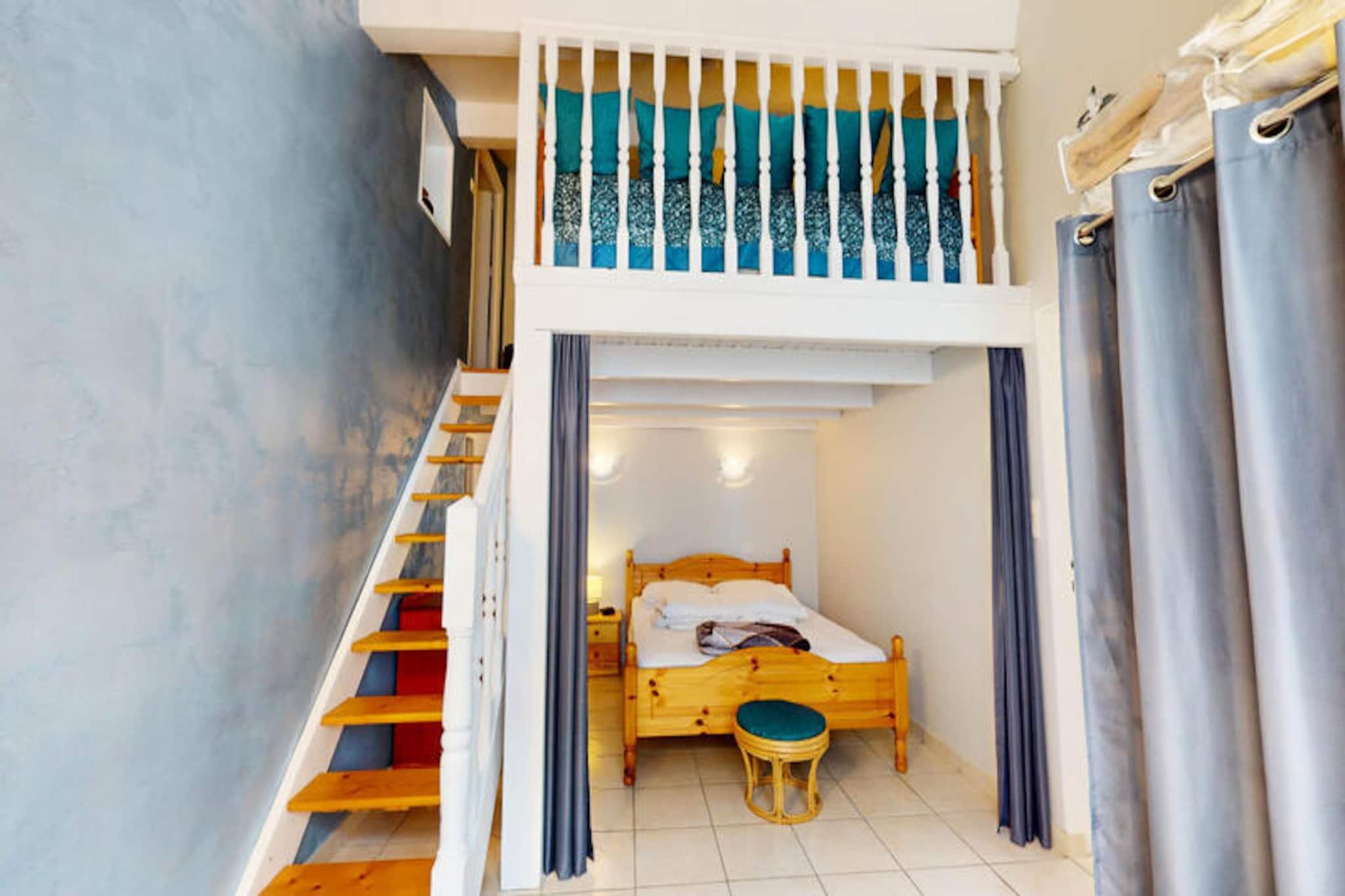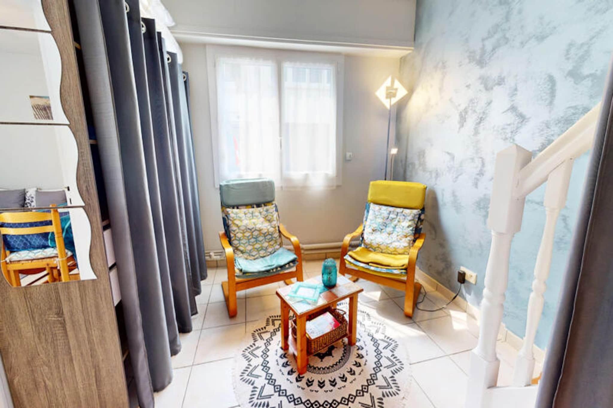 I den charmerende by Saint-Gilles-Croix-de-Vie, hvor bølgernes rytme møder den pulserende energi i lokalt liv, inviterer Le Goéland de la Vie dig til at opleve den perfekte kystferie. Gemt væk på en fredelig gade, ligger dette dejlige feriehus kun få skridt fra lystbådehavnen, sandstrande, travle markeder og hyggelige butikker, og tilbyder en harmonisk blanding af afslapning og bekvemmelighed. Uanset om du søger rolige morgener ved havet eller livlige aftener med at udforske byen, er denne ejendom din ideelle base. \n\nIndenfor er rækkehuset omhyggeligt designet til komfort og praktisk anvendelighed. Stueetagen byder dig velkommen med et fuldt udstyret køkken, perfekt til at tilberede frisk lokal fisk og skaldyr eller nyde en afslappet morgenmad, inden du tager afsted. Ved siden af ??køkkenet inviterer den hyggelige stue dig til at slappe af med en bog eller se dine yndlingsprogrammer. Soveområdet har en dobbeltseng og en charmerende krog til rolige øjeblikke. Ovenpå udstråler et andet opholdsrum en finurlig charme, komplet med lyskæder, en sofa og et fjernsyn, der fører til et rummeligt soveværelse med fire enkeltsenge - ideelt til familier eller vennegrupper. \n\nTræd ud på den private terrasse, hvor havemøbler og en grill danner rammen for udendørs spisning eller afslappende sommeraftener. Med to badeværelser, herunder et bekvemt placeret i nærheden af ??garagen, og et separat toilet, sikrer hjemmet komfort for alle gæster. \n\nSaint-Gilles-Croix-de-Vie tilbyder et væld af aktiviteter, lige fra cykling langs Vendée Corniche til at udforske Île d'Yeu eller nyde de pulserende natmarkeder. En kort køretur tager dig til Les Sables-d'Olonne eller den berømte Puy du Fou. Uanset om du er her for eventyr eller afslapning, lover Le Goéland de la Vie et uforglemmeligt ophold på Vendée-kysten.