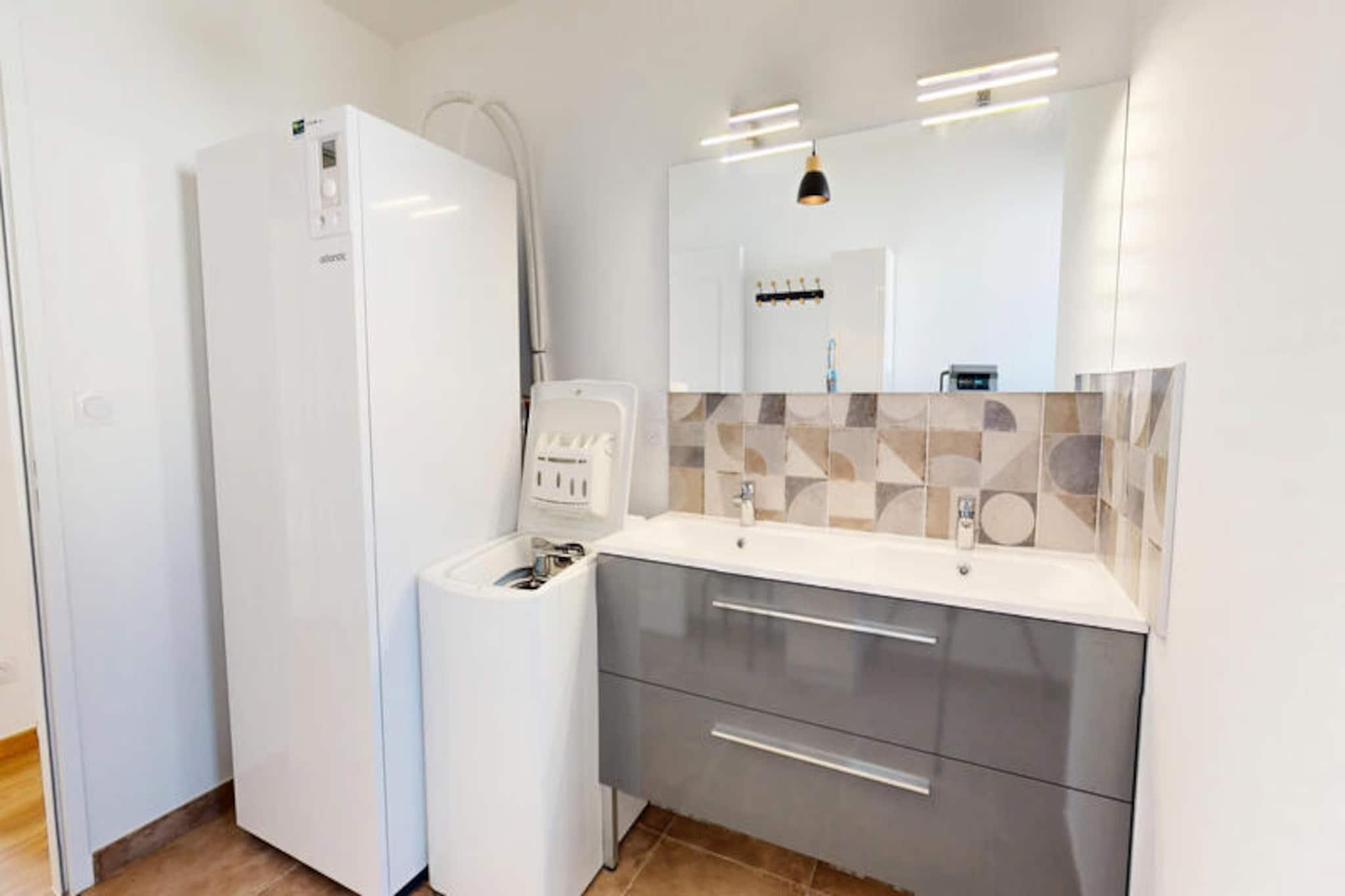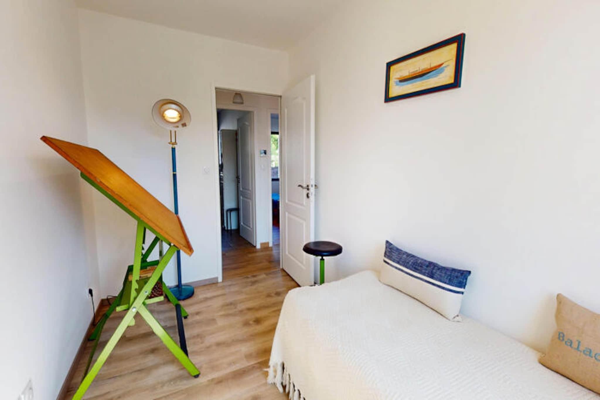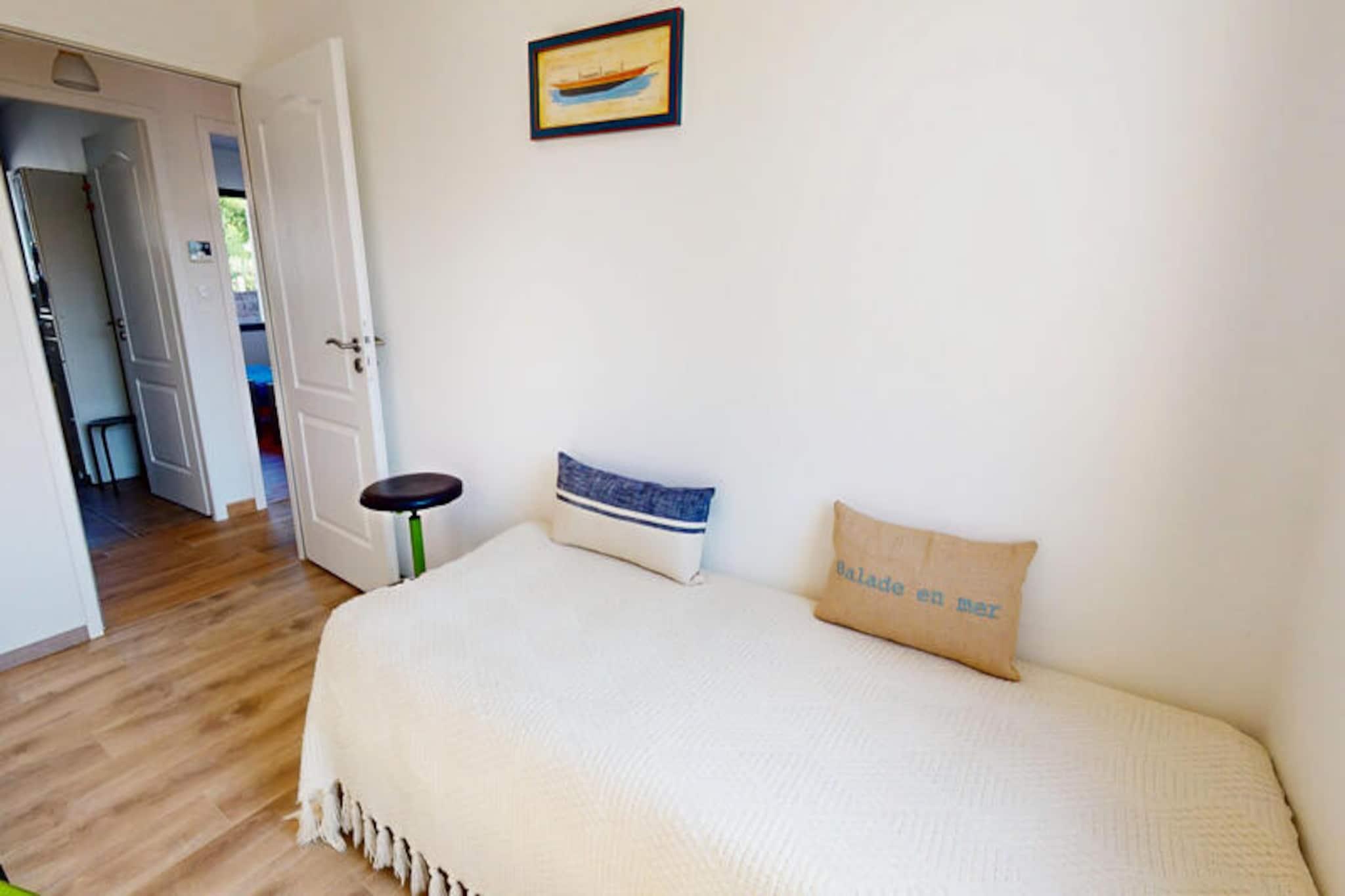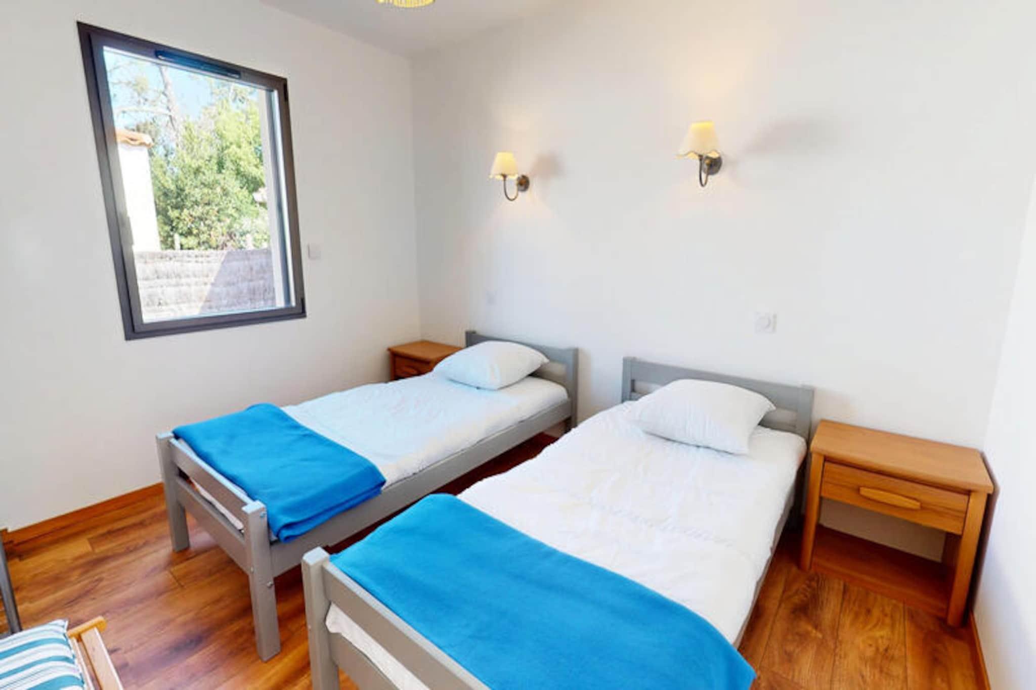 På den solbeskinnede Vendée-kyst tilbyder Casa Natura en harmonisk blanding af moderne komfort og naturlig ro. Dette indbydende hjem i Saint-Hilaire-de-Riez er perfekt til familier eller vennegrupper, der søger en afslappende ferie ved havet. Huset er omhyggeligt designet med et moderne præg, hvilket skaber en varm og imødekommende atmosfære under dit ophold.\n\nEjendommen har tre hyggelige soveværelser: et med to enkeltsenge, et andet med en dobbeltseng og et tredje med en enkeltseng, hvilket sikrer fleksible sovepladser til op til fem gæster. Den rummelige opholdsstue omfatter en komfortabel stue med tv, en spisestue og et stilfuldt siddeområde med høje borde og skamler i nærheden af ??det fuldt udstyrede køkken. Udenfor venter en stor terrasse med en elektrisk markise, liggestole og et havebord og stole, perfekt til at nyde måltider under åben himmel eller blot nyde kystsolen. En sikker garage er også tilgængelig for din bekvemmelighed.\n\nCasa Naturas beliggenhed er ideel til at udforske det bedste af Saint-Hilaire-de-Riez og omegn. Gå en tur langs de nærliggende sandstrande, cykl gennem maleriske fyrreskove, eller besøg de travle lokale markeder. For familiesjov ligger forlystelsesparken Atlantic Toboggan og Dino's Park kun en kort køretur væk. Vandsportsentusiaster vil elske Sion vandsportscenter, mens den charmerende havn i Saint-Gilles-Croix-de-Vie tilbyder et dejligt sted for en afslappet dagstur. Gå ikke glip af chancen for at udforske den fortryllende ø Noirmoutier, en sand perle i regionen.\n\nUanset om du søger eventyr eller ro, er Casa Natura den perfekte base for en uforglemmelig kystferie. Med sine moderne faciliteter og førsteklasses beliggenhed er det et paradis, hvor dyrebare minder skabes.