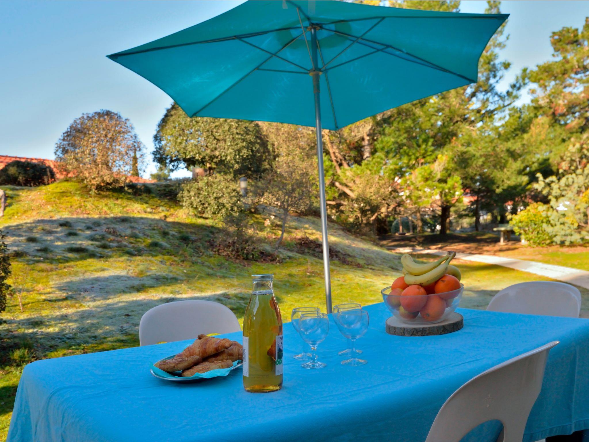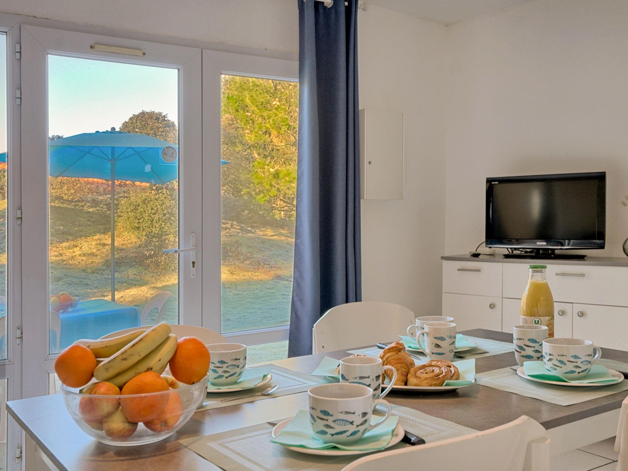 "Hameau Océan", 3-room terraced house 40 m2. Renovated in 2024, practical furnishings: living/dining room with 1 sofabed (90 cm, length 190 cm), dining table, TV and international TV channels. Exit to the terrace. 1 room with 1 french bed (140 cm, length 190 cm). 1 room with 1 x 2 bunk beds (90 cm, length 190 cm). Open kitchen (dishwasher, 3 ceramic glass hob hotplates, toaster, kettle, microwave, electric coffee machine). Bath/WC. Electric heating. Terrace. Terrace furniture, electric barbecue, deck chairs (2). Facilities: children's high chair, baby cot. Internet (WiFi, free). Please note: maximum 2 pets/ dogs allowed. Smoke alarm. Offer by a commercial proprietor according to Art. 155, IV, CGI