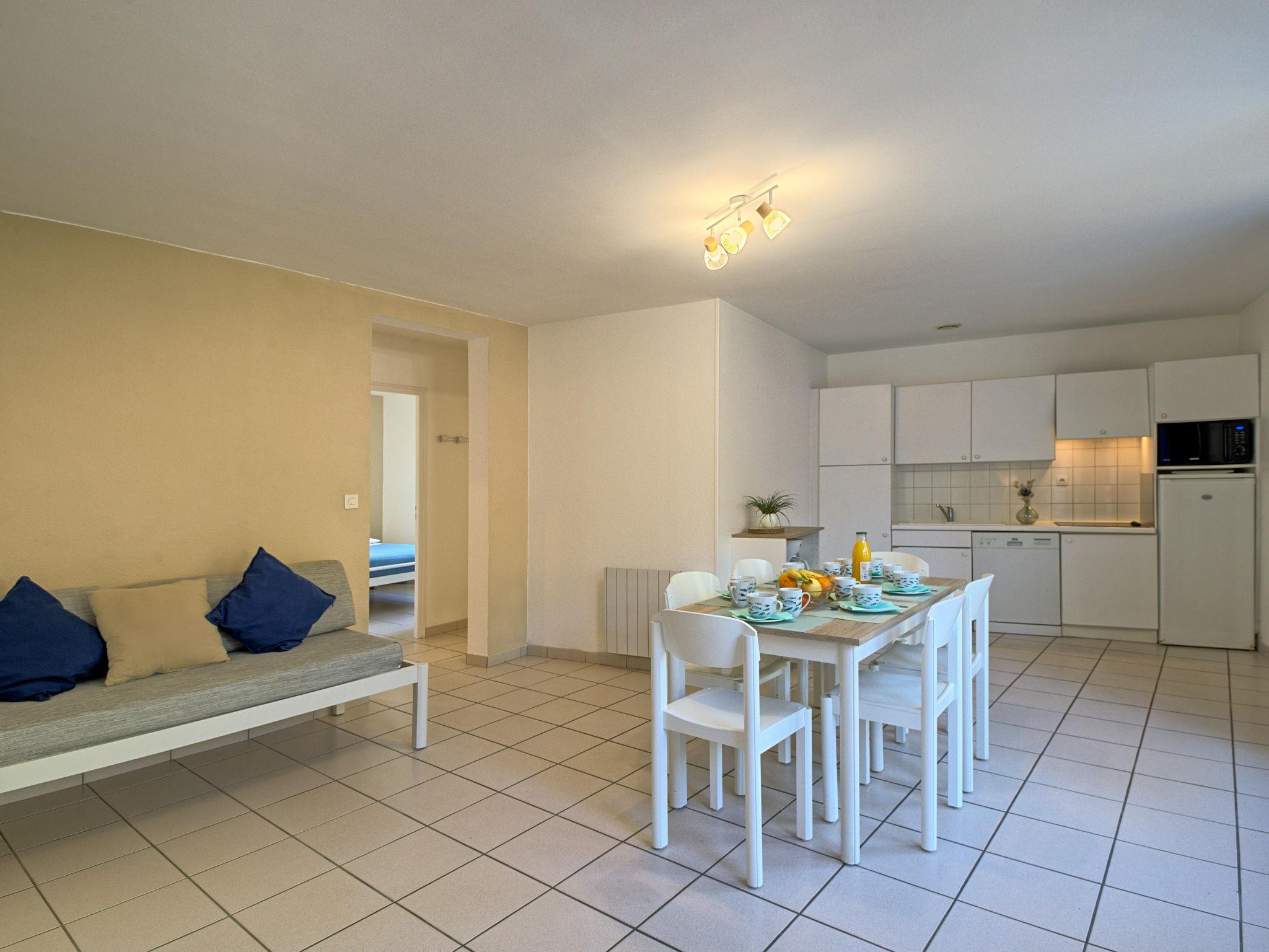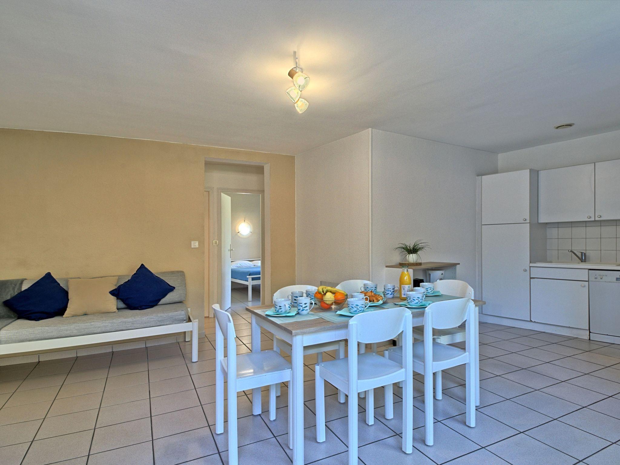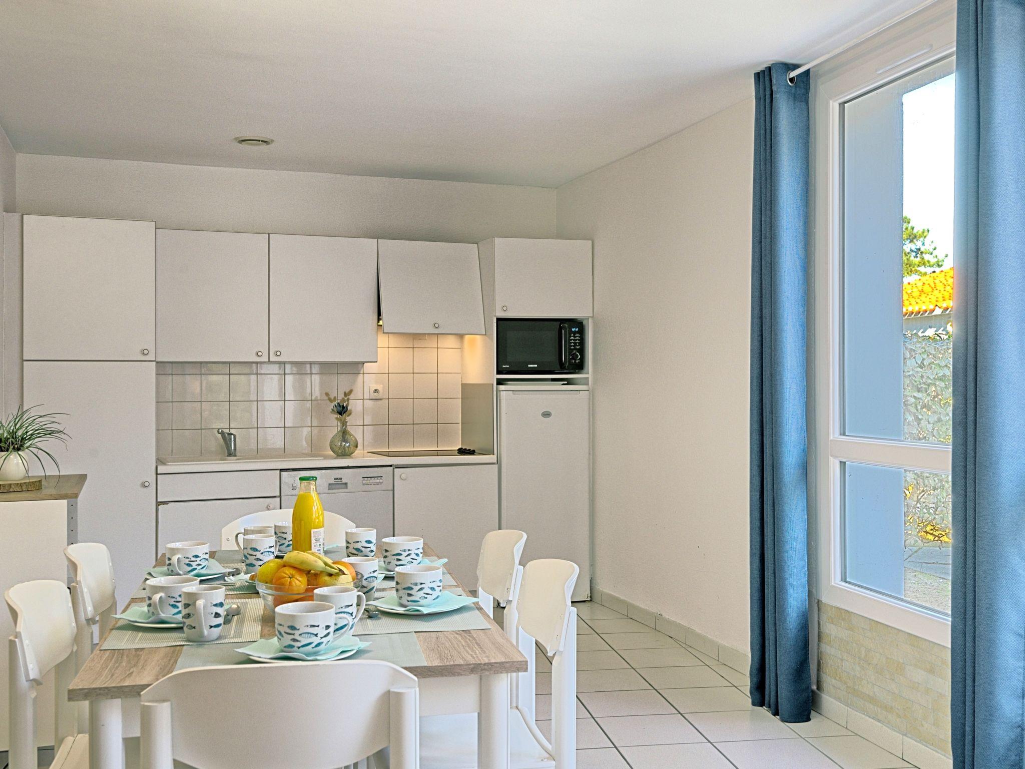 "Hameau Océan", 3-room terraced house 53 m2. Renovated in 2024, practical furnishings: living/dining room with 1 sofabed (90 cm, length 190 cm), dining table, TV and international TV channels. Exit to the terrace. 1 room with 1 french bed (140 cm, length 190 cm). 1 room with 2 x 2 bunk beds (90 cm, length 190 cm). Open kitchen (dishwasher, 3 ceramic glass hob hotplates, toaster, kettle, microwave, freezer, electric coffee machine). Bathroom, sep. WC. Electric heating. Terrace. Terrace furniture, electric barbecue, deck chairs (2). Facilities: children's high chair, baby cot. Internet (WiFi, free). Please note: maximum 2 pets/ dogs allowed. Smoke alarm. Bed layout is flexible. There are more sleeping options available than the maximum number of people allowed which may, however, not be exceeded. Offer by a commercial proprietor according to Art. 155, IV, CGI