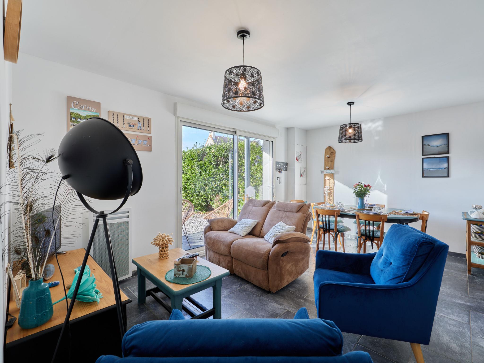 Cosy, comfortable single-family house "Lésaro". 400 m from the sea, 400 m from the beach. Private: property 300 m2 (fenced), garden lawn. In the house: hot tub. Grocery 2 km, supermarket 3 km, restaurant 1 km, bar 1 km, bakery 2 km, bus stop 1 km. Sports harbour 5 km, golf course (18 hole) 1 km, sailing school 4 km, riding stable 400 m. Nearby attractions: Cherbourg 40 km, Portbail 5 km, Carteret 3 km, Agon coutainville 47 m, Granville 78 m, Air de jeux 200 m. Hiking paths: Cap de carteret, Vieille église 5 km. Please note: car recommended. Entertainment in the season.