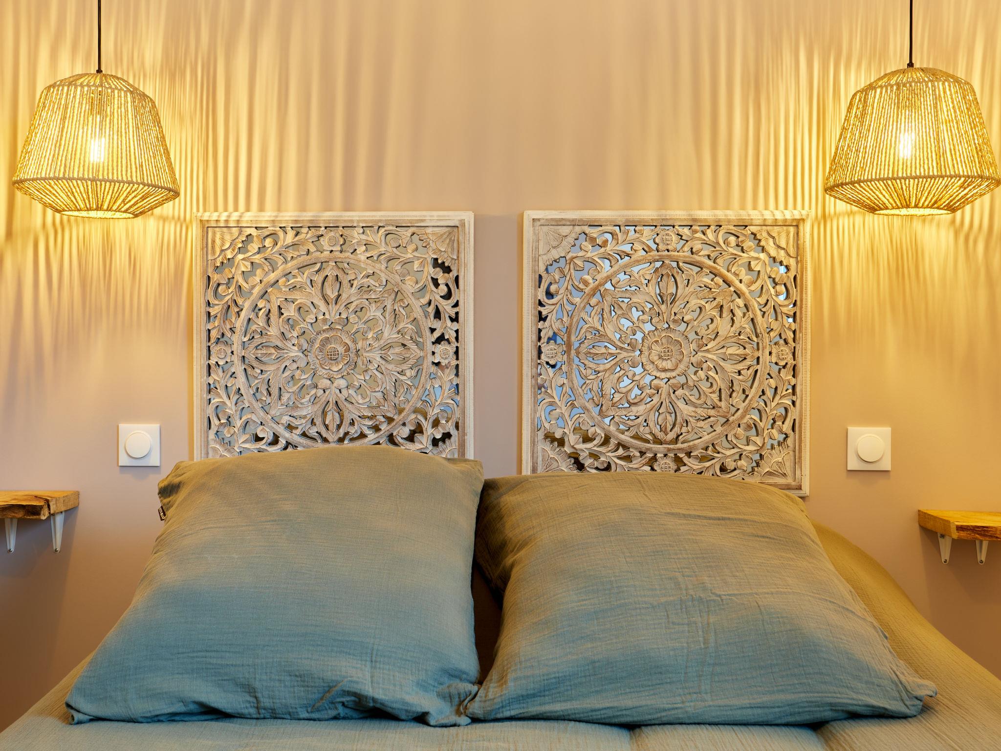 4-room house 70 m2. Comfortable and modern furnishings: living/dining room, south facing position and west facing position with TV (flat screen), air conditioning. Exit to the terrace. 2 rooms, each room with 1 french bed (1 x 140 cm, length 190 cm). 1 room with 1 french bed (140 cm, length 190 cm), TV and flat screen with separate WC. Open kitchen (1 induction hot plates, 4 gas rings, toaster, kettle, microwave). Shower/WC. Air-conditioning. Terrace 40 m2. Terrace furniture, barbecue, deck chairs (6). Facilities: washing machine, dryer, children's high chair, baby cot, logs (free). Parking (2 cars). Please note: maximum 2 pets/ dogs allowed. Smoke alarm. Offer by a private individual according to Art. 155, IV of CGI.