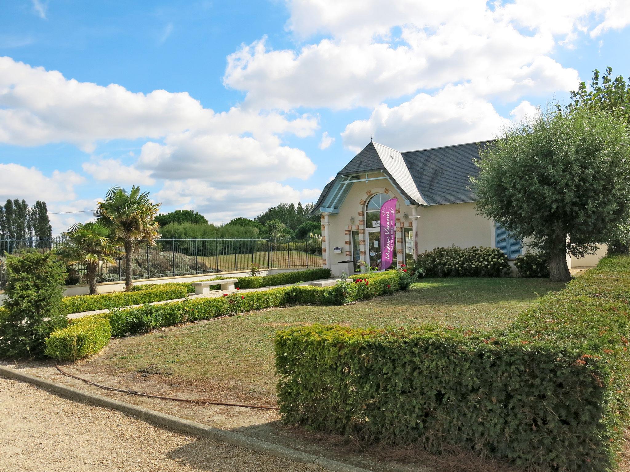 Beautiful, cosy resort "Domaine de Vertmarines". 98 houses in the resort. 2 km from the centre of St. Jean-de-Monts, on the outskirts, 50 km from the centre of Les Sables d'Olonne, 3.5 km from the sea. For shared use: property 6 ha (fenced) with plants and trees. Private: garden 350 m2 (not fenced) with meadow, swimming pool (8 x 4 m, seasonal availability: 15.May. - 15.Sep.). In the complex: reception, WiFi. Bread roll service (extra). Shop 2 km, sandy beach "Les Demoiselles" 3.5 km. Please note: the photograph shows a typical example. The holiday properties may differ in living space, floorplan, equipment and furnishing. Wifi (free of charge) only at the reception.