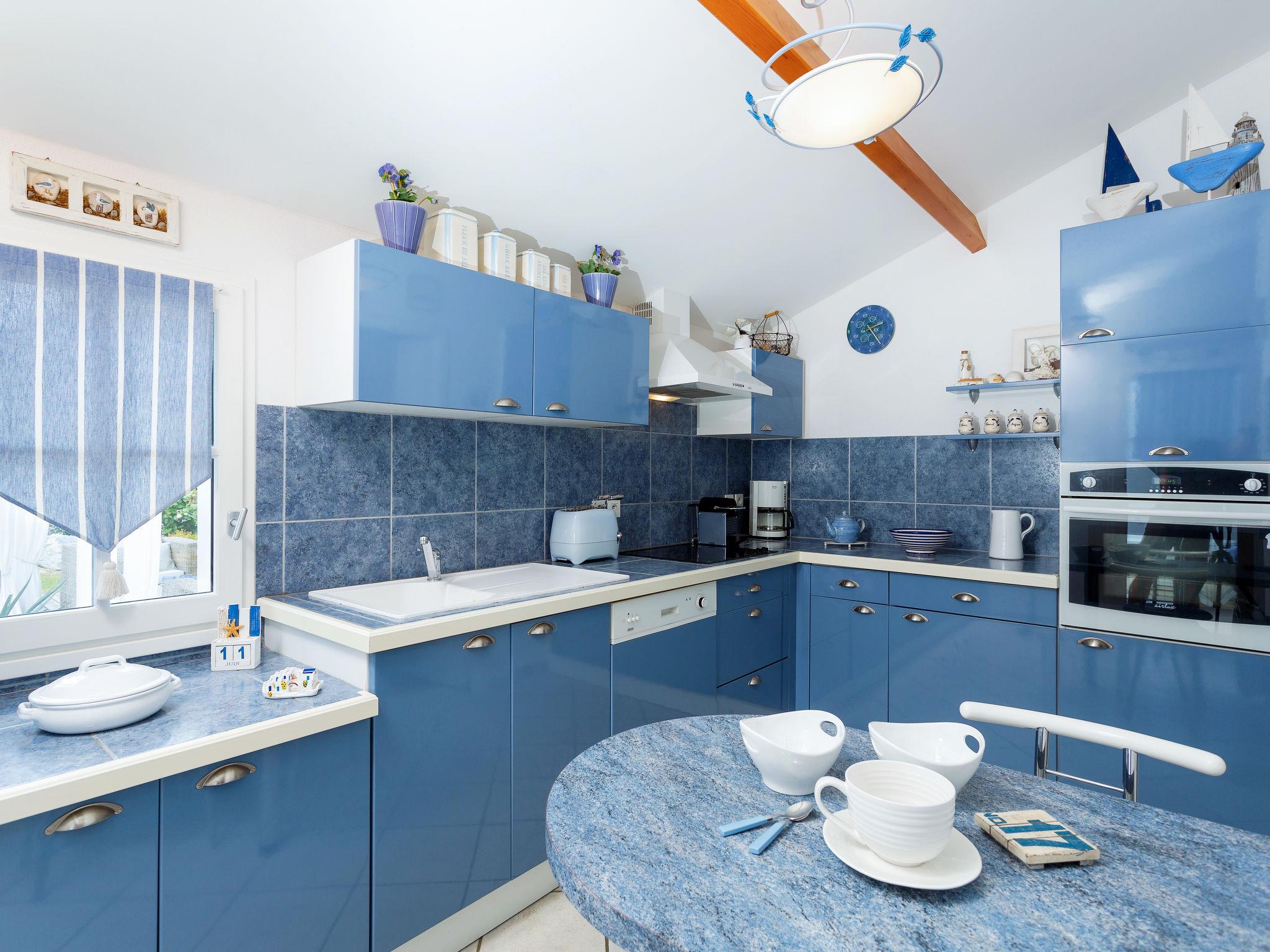 "Domaine de Vertmarines", 4-room house 85 to 98 m2 on 2 levels. Bright, beautiful furnishings: large living/dining room with panoramic window with dining table and TV can be hired. Exit to the terrace. 1 room with 1 french bed. 1 room with 2 sleeping facilities. Open kitchen (oven, dishwasher, 4 ceramic glass hob hotplates, toaster, kettle, microwave, electric coffee machine). Bathroom, sep. WC. Upper floor: 1 room with 2 sleeping facilities and shower. Electric heating. Parquet floors. Terrace. Terrace furniture. View of the garden. Facilities: washing machine. Parking, garage. Please note: non-smoking house. Maximum 2 pets/ dogs allowed.