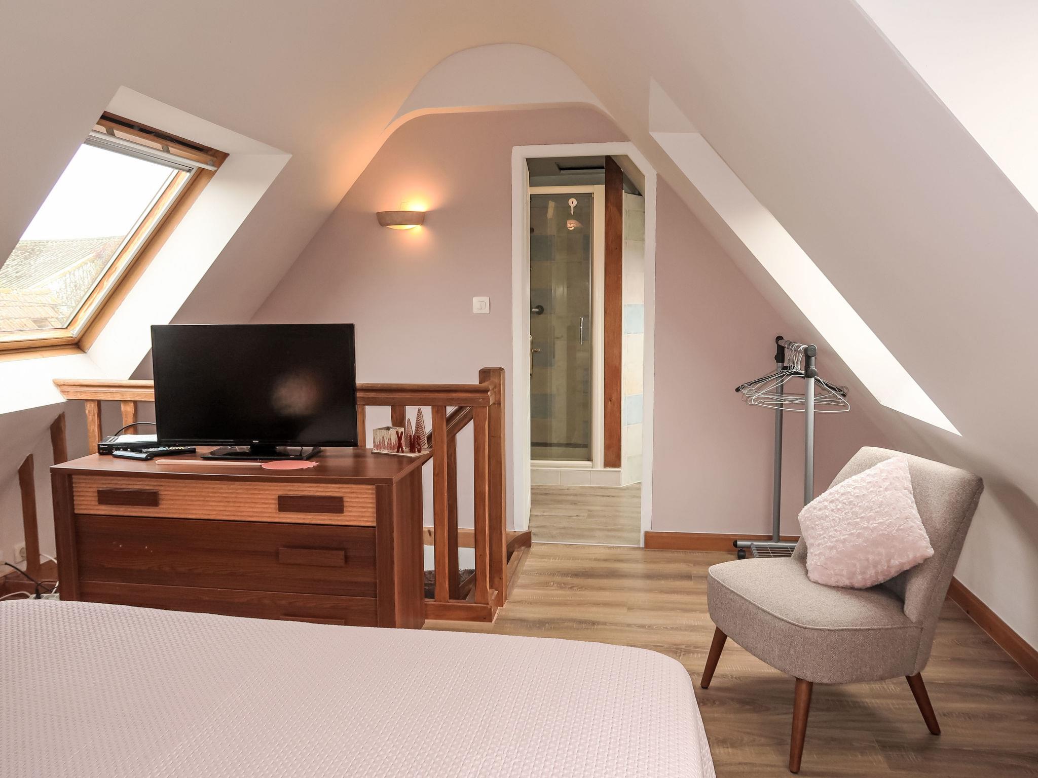"L'Hirondelle", 2-room house 30 m2 on 2 levels. Bright, cosy furnishings: living/dining room with dining table, satellite TV, hi-fi system and DVD. Exit to the garden. Open kitchen (oven, dishwasher, 4 ceramic glass hob hotplates, toaster, kettle, microwave, electric coffee machine). Upper floor: 1 open room with sloping ceilings with 1 french bed (160 cm, length 200 cm), shower/WC and electric heating. Wooden floors. Patio. Terrace furniture, barbecue (portable). Facilities: washing machine, iron, children's high chair, baby cot. Internet (WiFi, free). Please note: non-smoking house. Maximum 1 pet/ dog allowed. Smoke alarm.