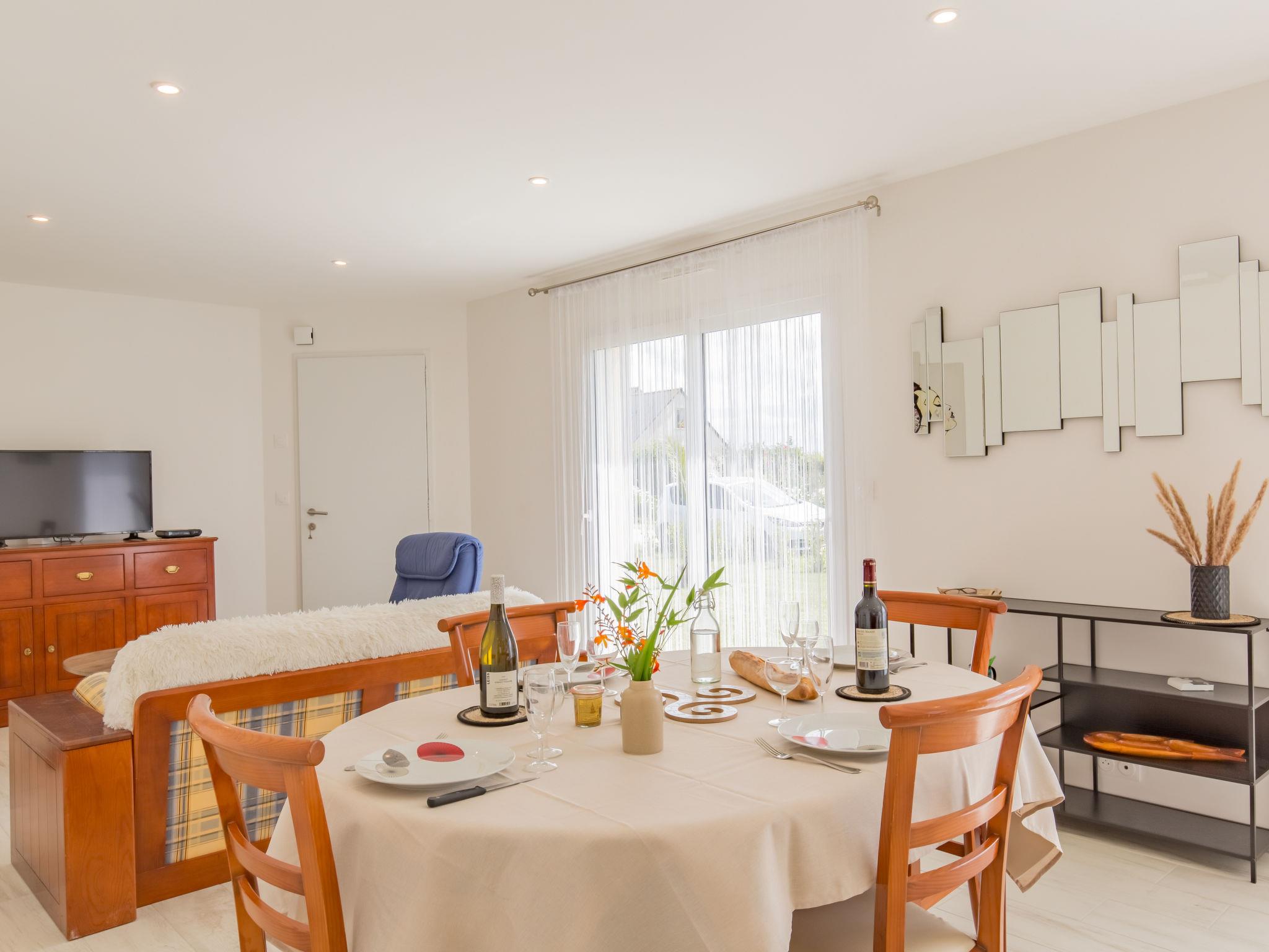 "Kervennou", 4-room house 92 m2. Spacious and bright, beautiful and cosy furnishings: large living/dining room 50 m2 with dining table, TV and flat screen. Exit to the garden. 3 rooms, each room with 1 french bed (140 cm, length 190 cm). Open kitchen (oven, dishwasher, 4 gas rings, toaster, kettle, microwave, electric coffee machine). Shower, sep. WC, double hand-basin. Electric heating, underfloor heating. Terrace, south facing position. Terrace furniture, barbecue (portable), deck chairs (2). Facilities: washing machine, dryer. Internet (WiFi, free). Please note: non-smoking house. Smoke alarm. Offer by a private individual according to Art. 155, IV of CGI.