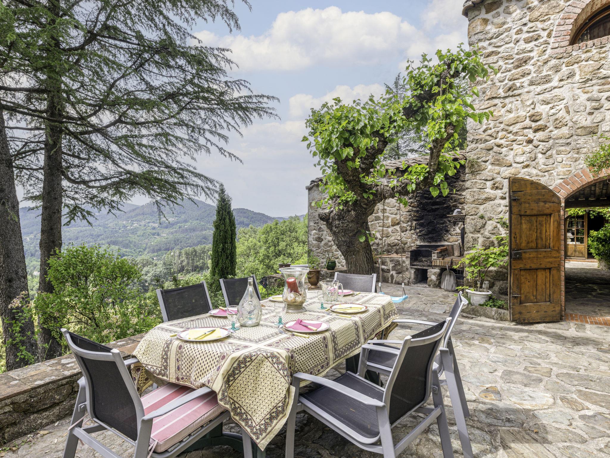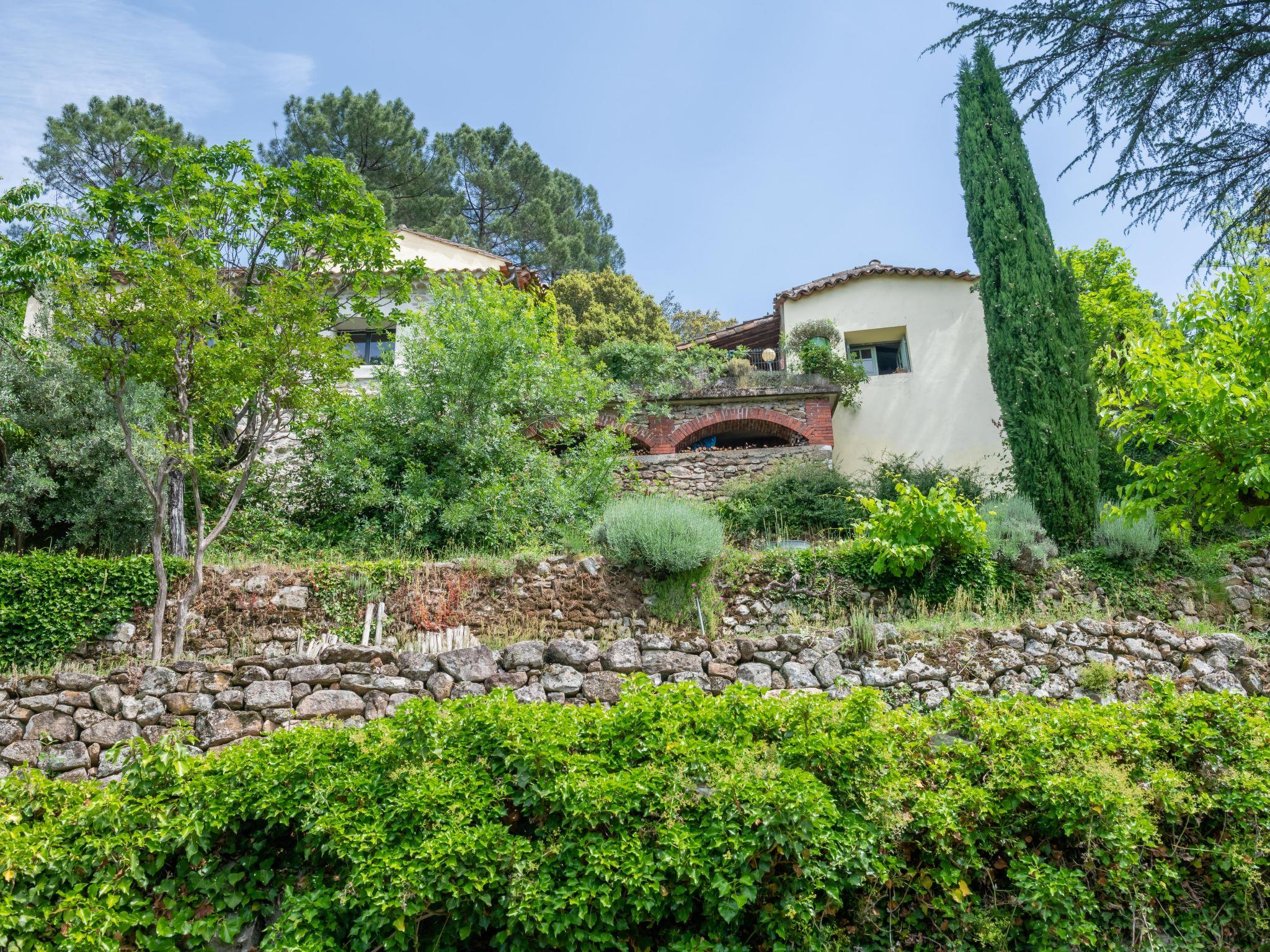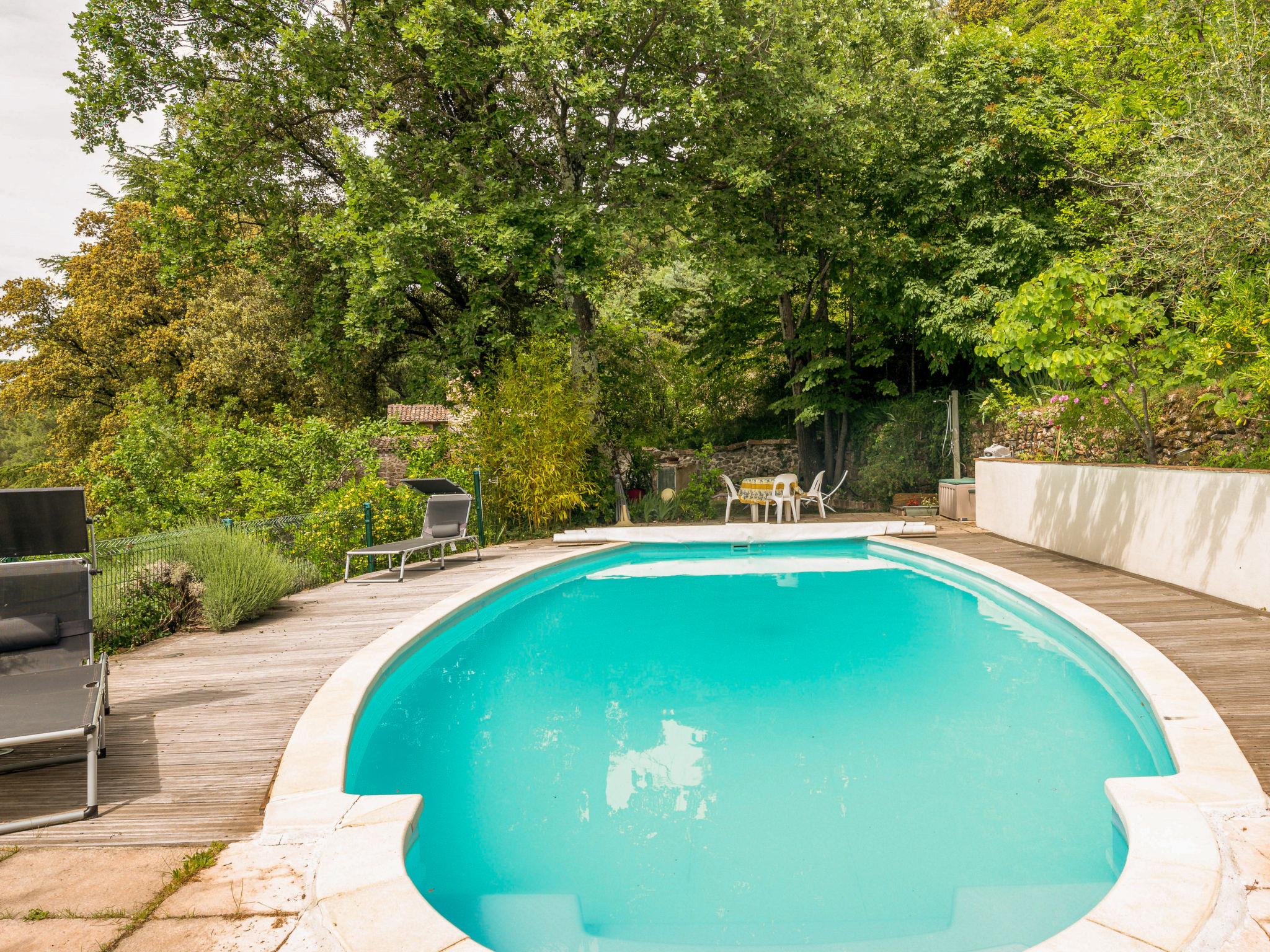 Cosy country house "Les Ondes". Outside the resort, 1.5 km from the centre, in a secluded position. Private: property 3 ha with trees, natural garden, swimming pool (9 x 4 m, depth 100 - 180 cm, seasonal availability: 01.Jun. - 30.Sep.) with internal staircase. Table tennis. In the house: WiFi. Bus stop "Mazel" 600 m, railway station 1 km. Nearby attractions: Anduze 15 km, Ales 28 km, Arènes de Nimes 60 km. Hiking paths: Les Cevennes. Please note: car recommended. Atypical character house, accessible by a stone staircase. Layout as follows: in the main building, a bedroom, bathroom, living room, dining room, kitchen. Then 1 bedroom with independent bathroom with private entrance from the terrace. Finally a 25 mq studio including a double sofa bed, kitchen area, shower wc, with independent entrance. view on garden and swimming pool. The owner occupies the terraced house.