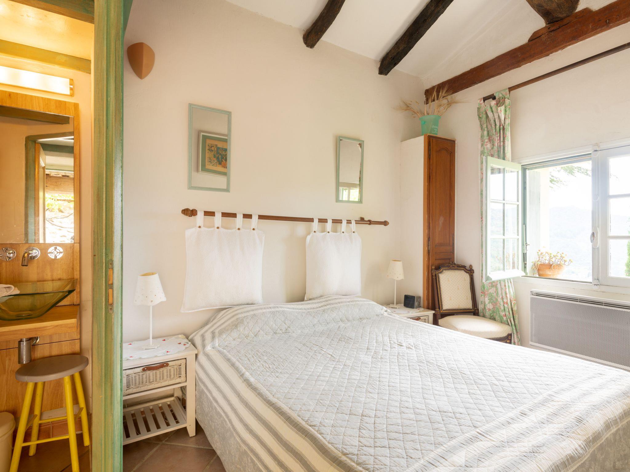 4-room house 90 m2. Comfortable and beautiful furnishings: living/dining room with open-hearth fireplace and TV. 1 room with 1 double bed (140 cm, length 190 cm), bath/WC. 1 room with 1 double bed (160 cm, length 190 cm), shower/WC. Exit to the terrace. Kitchen (oven, dishwasher, 3 induction hot plates, toaster, kettle, microwave, freezer, electric coffee machine). Upper floor: 25 m2, Studio, window onto the courtyard with 2 beds (90 cm, length 190 cm), kitchen corner and shower/WC. Terrace 30 m2, roofed terrace 30 m2, south facing position and west facing position. Terrace furniture, barbecue, deck chairs. Very beautiful panoramic view of the mountains, the valley and the countryside. Facilities: washing machine, children's high chair, baby cot. Internet (WiFi, free). Parking (4 cars). Please note: smoke alarm. FR6785.100.1