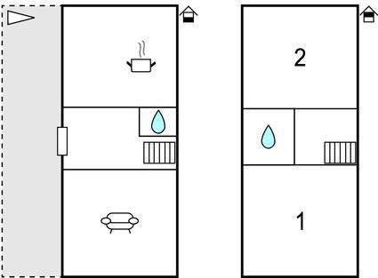 Soveværelse (nr. 1) - 1 Soveplads. (Enkeltseng(e)). 2 Sovepladser. (Dobbeltseng(e)).
