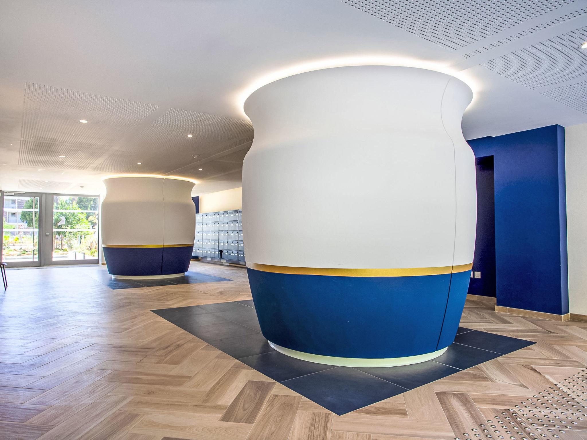New luxury residence with rooftop swimming pool and panoramic sea view beautiful residence "Seaside View", 7 storeys, built in 2025. In a central, busy position in the residential district, 200 m from the sea, 200 m from the beach, south facing position. For shared use: swimming pool angular (seasonal availability: 01.Jun.). Shower/WC in the pool area. In the house: lift. Shopping centre 750 m, restaurant 800 m, pedestrian zone 950 m, bus stop "la passerelle" 500 m, railway station "Gare st laurent du var" 500 m, sandy beach "Plage des flots Bleu" 800 m. Sports harbour 400 m. Nearby attractions: sports nautiques 400 m, centre commercial cap 3000 750 m.
