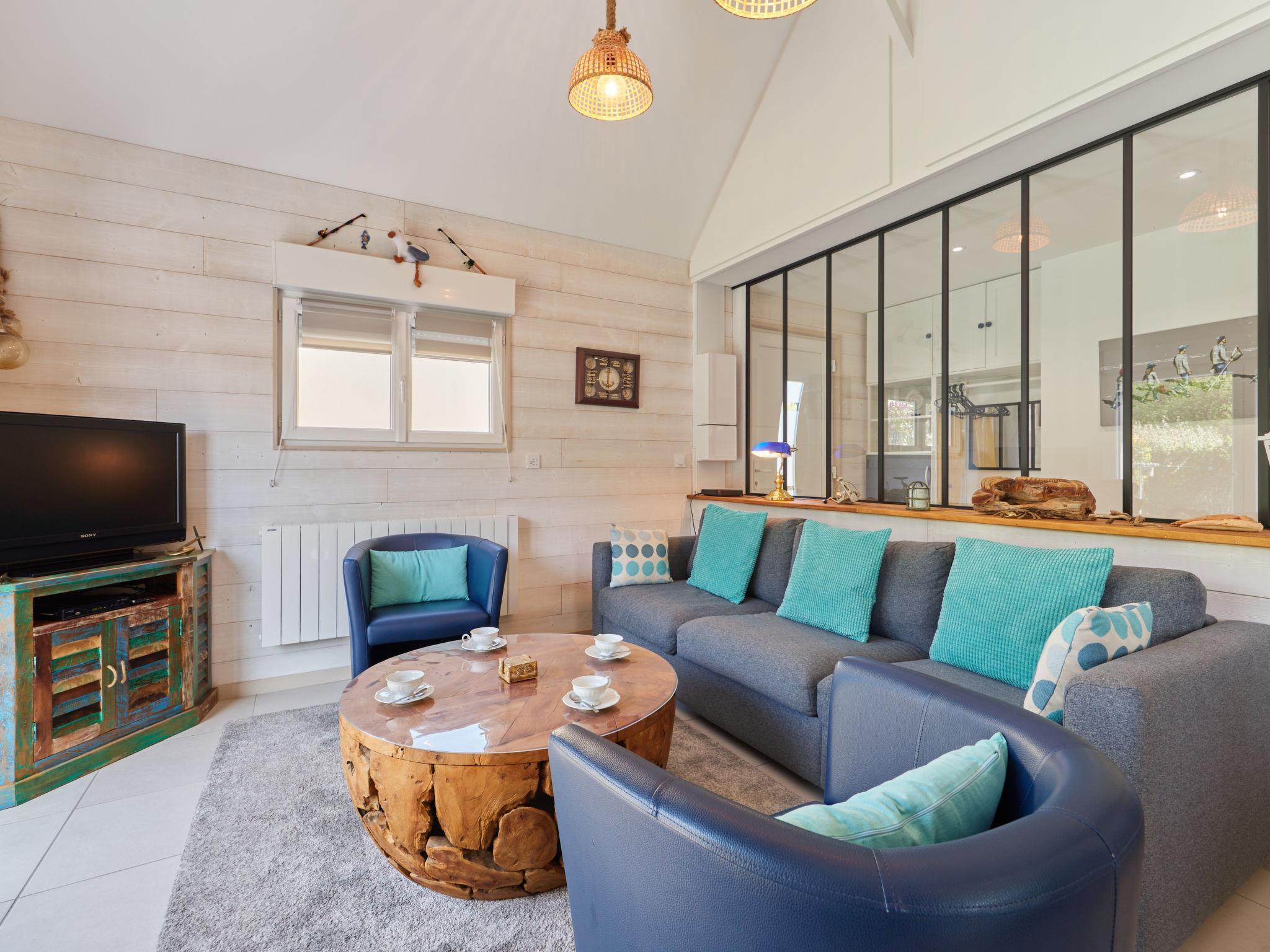 "Chez Boubou", 3-room house 80 m2. Beautiful and modern furnishings: living/dining room with dining table and TV (flat screen). Exit to the garden, to the terrace. 1 room with 1 french bed (160 cm, length 200 cm), TV (flat screen). 1 room with 2 beds (90 cm, length 190 cm), TV (flat screen). Open kitchen (oven, dishwasher, 4 induction hot plates, toaster, kettle, microwave, electric coffee machine). Shower/WC. Large terrace 20 m2, south facing position and west facing position. Terrace furniture, barbecue, deck chairs (4). Facilities: washing machine. Internet (WiFi, free). Parking (fenced 1 car). Please note: smoke alarm. Offer by a private individual according to Art. 155, IV of CGI.