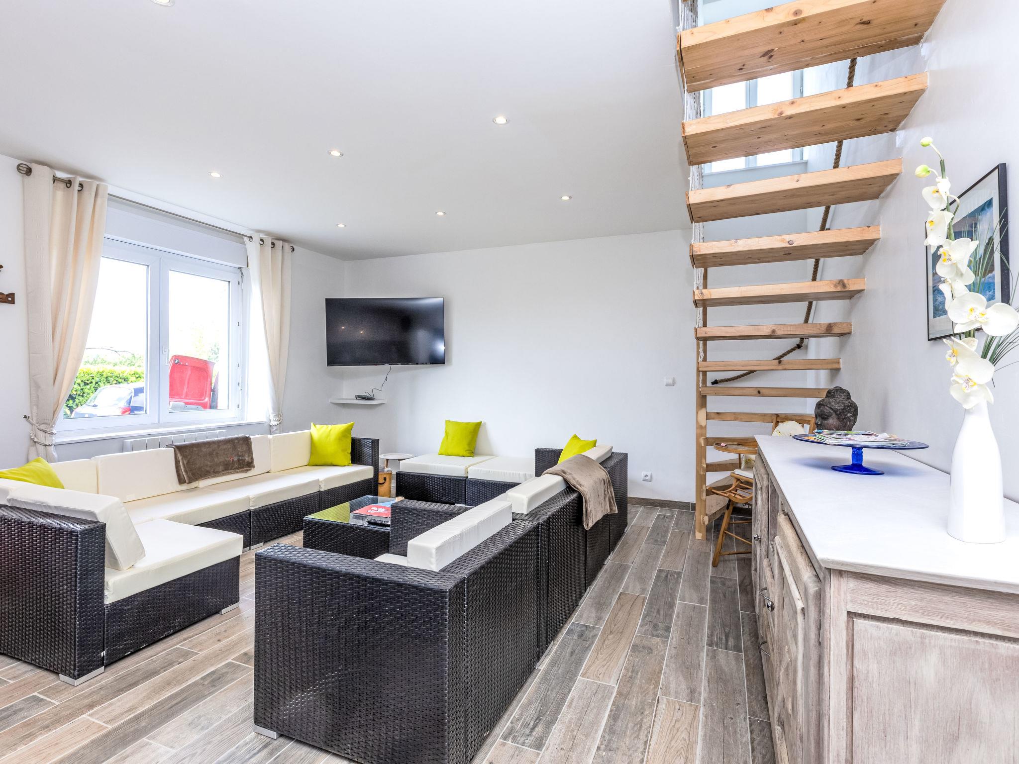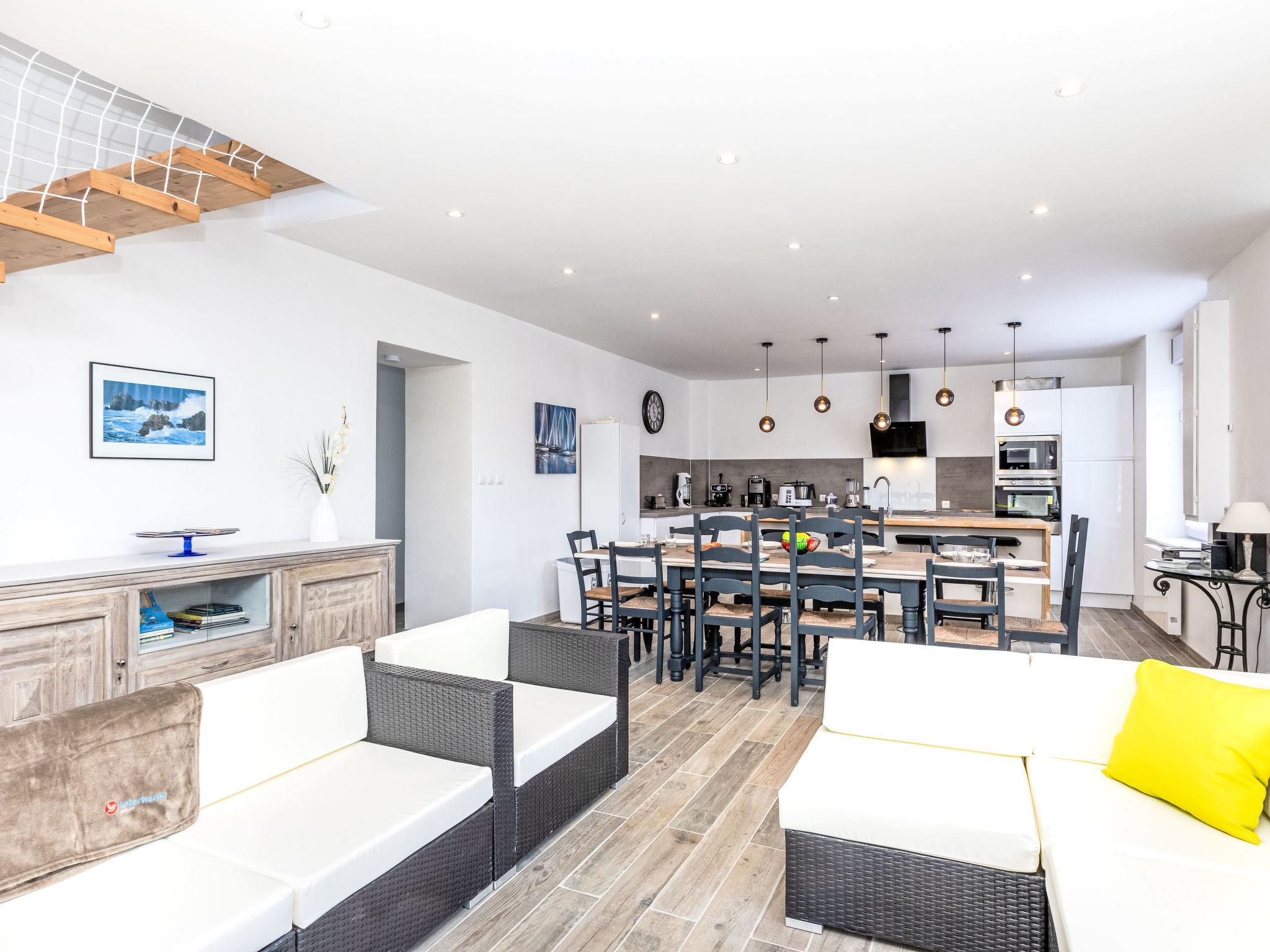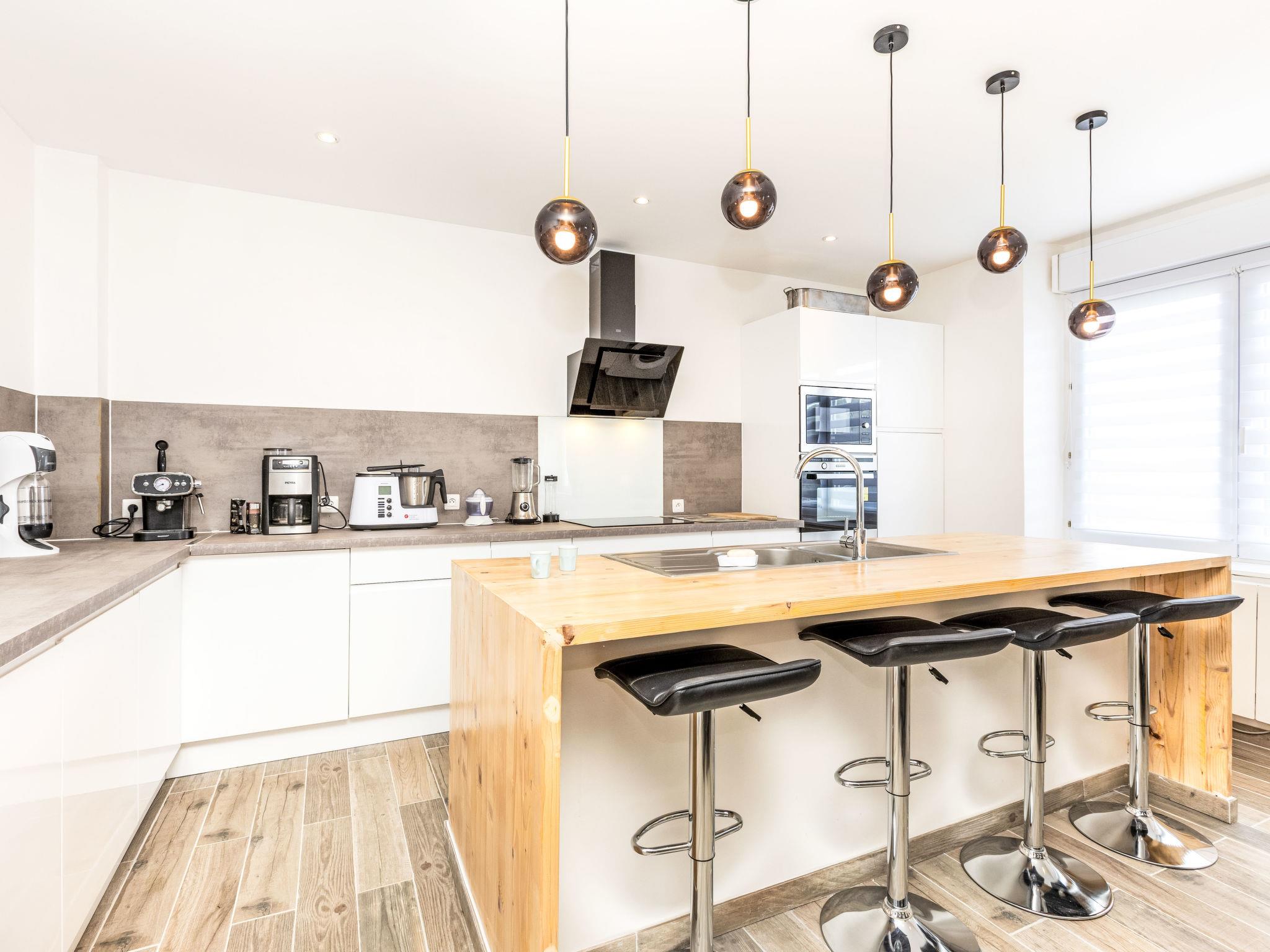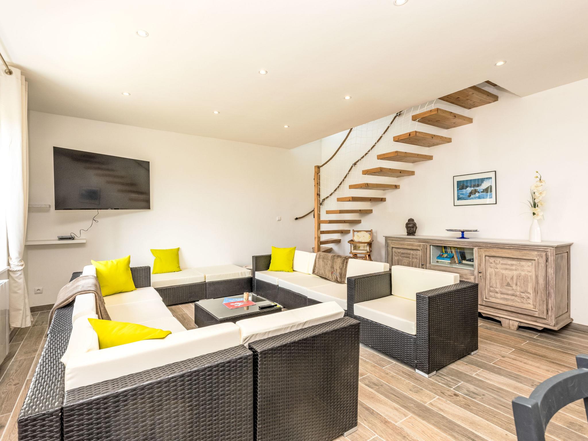 6-room house 106 m2 on 2 levels. Comfortable and tasteful furnishings: large living/dining room with TV (flat screen). 2 rooms, each room with 1 french bed (1 x 140 cm, length 190 cm). Exit to the garden. Large, open kitchen (oven, dishwasher, 4 induction hot plates, toaster, kettle, microwave, electric coffee machine, cooking island). Shower, sep. WC. Electric heating. Heating available only from 15.10. to 15.04. Upper floor: 3 rooms, each room with 1 french bed (1 x 140 cm, length 190 cm). Shower/WC. Terrace 30 m2, south facing position, large garden. Terrace furniture, barbecue, deck chairs. Facilities: washing machine, dryer, children's high chair, baby cot, hair dryer. Internet (WiFi, free). Garage on the property. Please note: suitable for families. Smoke alarm. Offer by a private individual according to Art. 155, IV of CGI.