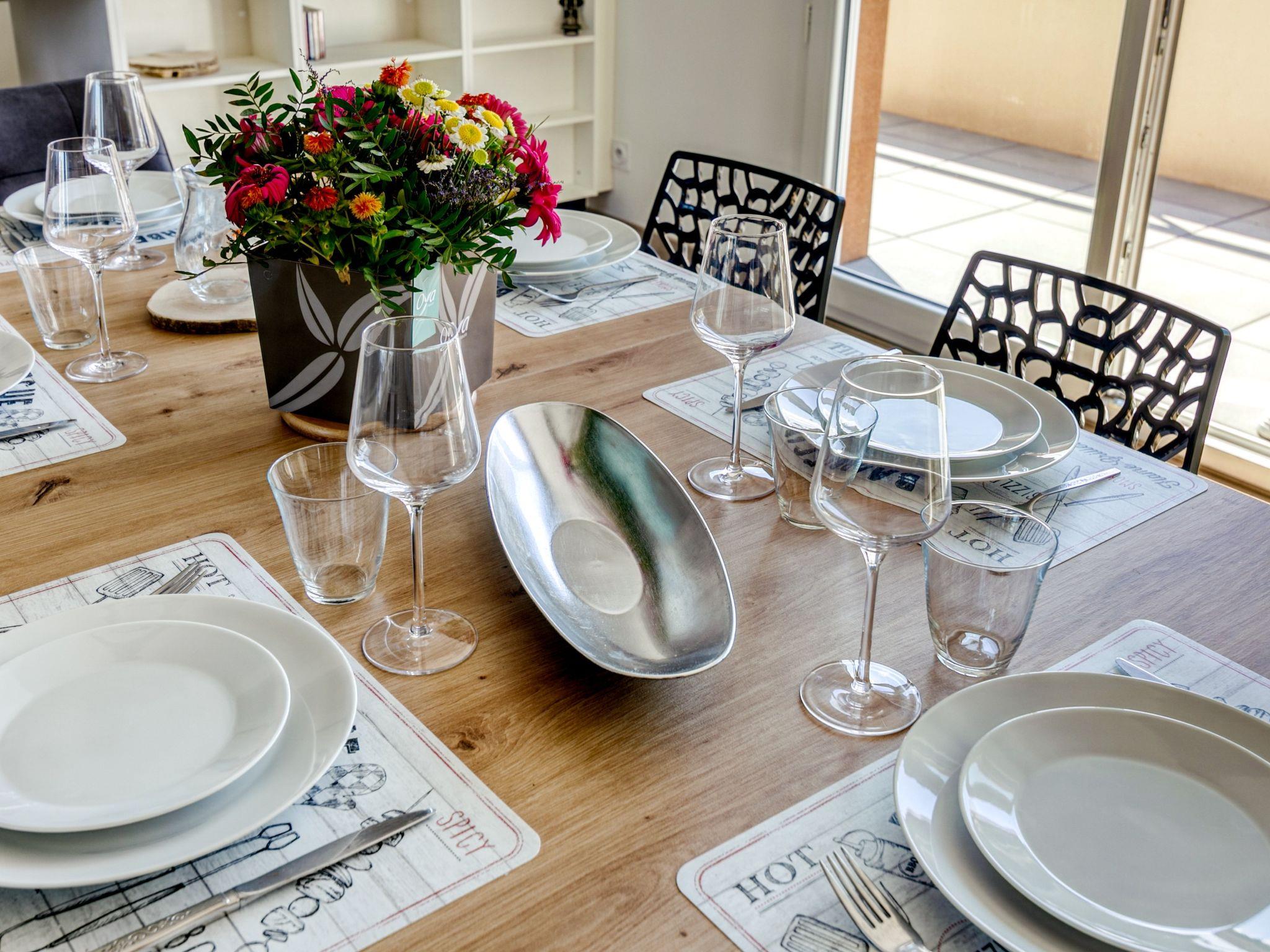 "Hermine", 4-room apartment 150 m2 on 4th floor. Spacious and bright, modern and luxurious furnishings: large living/dining room 50 m2 with TV, digital TV and international TV channels (flat screen). Exit to the terrace. 1 room with 1 french bed (1 x 140 cm, length 190 cm). 1 room with 2 beds (80 cm, length 200 cm). 1 room with Dressing room with 1 french bed (1 x 160 cm, length 200 cm), bath/shower/WC and double hand-basin. Exit to the terrace. Large, open kitchen (oven, dishwasher, 2 induction hot plates, 2 gas rings, toaster, kettle, microwave, freezer, electric coffee machine). 2 showers/WC. Electric heating. 2 large terraces 100 m2. Terrace furniture, covered balcony. Very beautiful view of the sea. Facilities: washing machine, dryer, iron. Internet (WiFi, free). Parking space n 27 (roofed). Please note: non-smokers only. Smoke alarm. 352880036095F