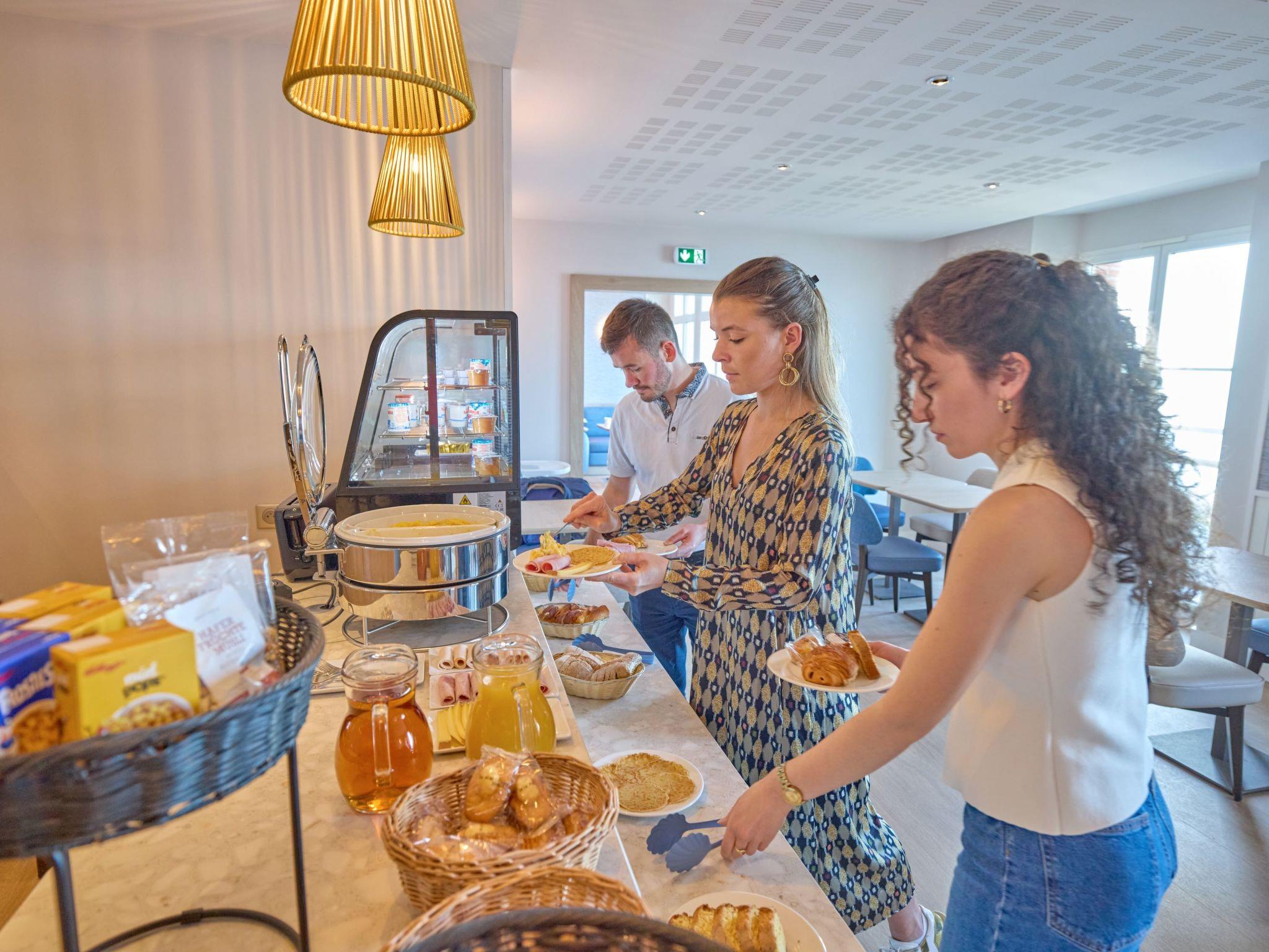 Very beautiful aparthotel "Reine Marine", 4 storeys. 67 apartments in the residence. 3 km from the centre of Saint Malo, 30 m from the sea, direct access to the beach. For shared use: indoor pool heated (13 x 8 m, seasonal availability: 01.Jan. - 31.Dec.). Terrace. In the complex: reception, bar, steam room, lift, storage room for bicycles, washing machine, tumble dryer (for shared use, extra), bicycle rental. Bread roll service. Parking. E-charging station. Shop 400 m, bus stop 250 m, sandy beach "Plage de Minihic" 30 m. Sailing school 1 km, tennis 2 km. Nearby attractions: Cancale 12 km, Dinard 13 km, Dinan 36 km, Mont Saint Michel 58 km, Rennes 70 km. Hiking paths: GR34. Please note: the photograph shows a typical example.