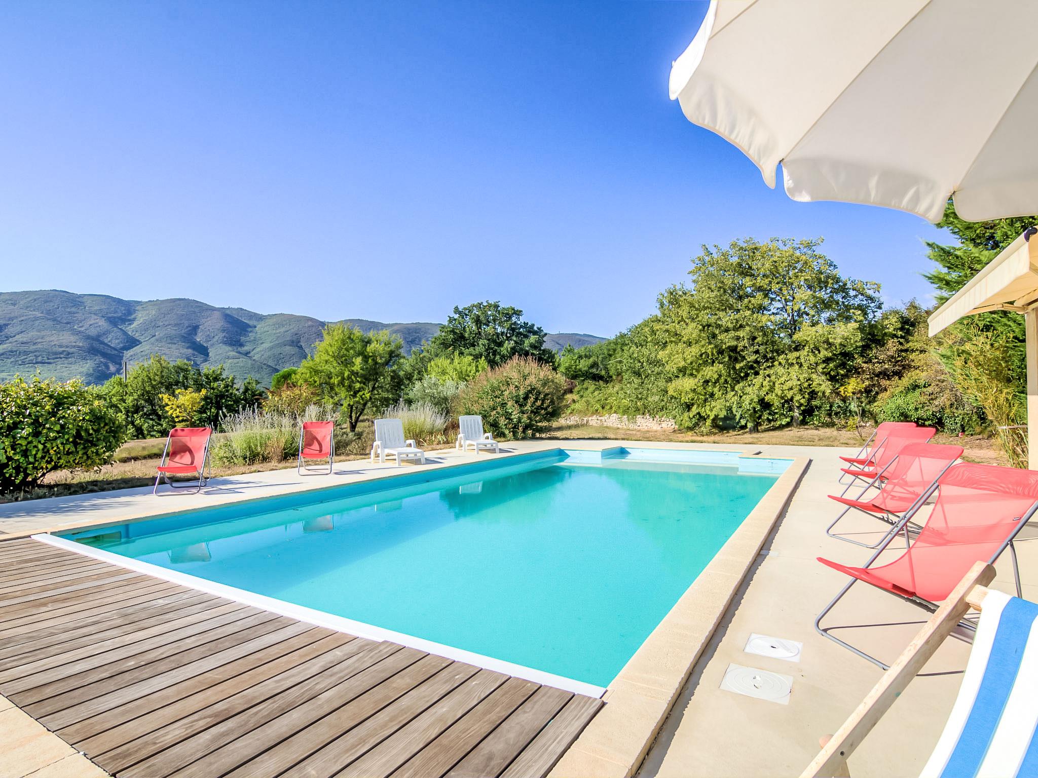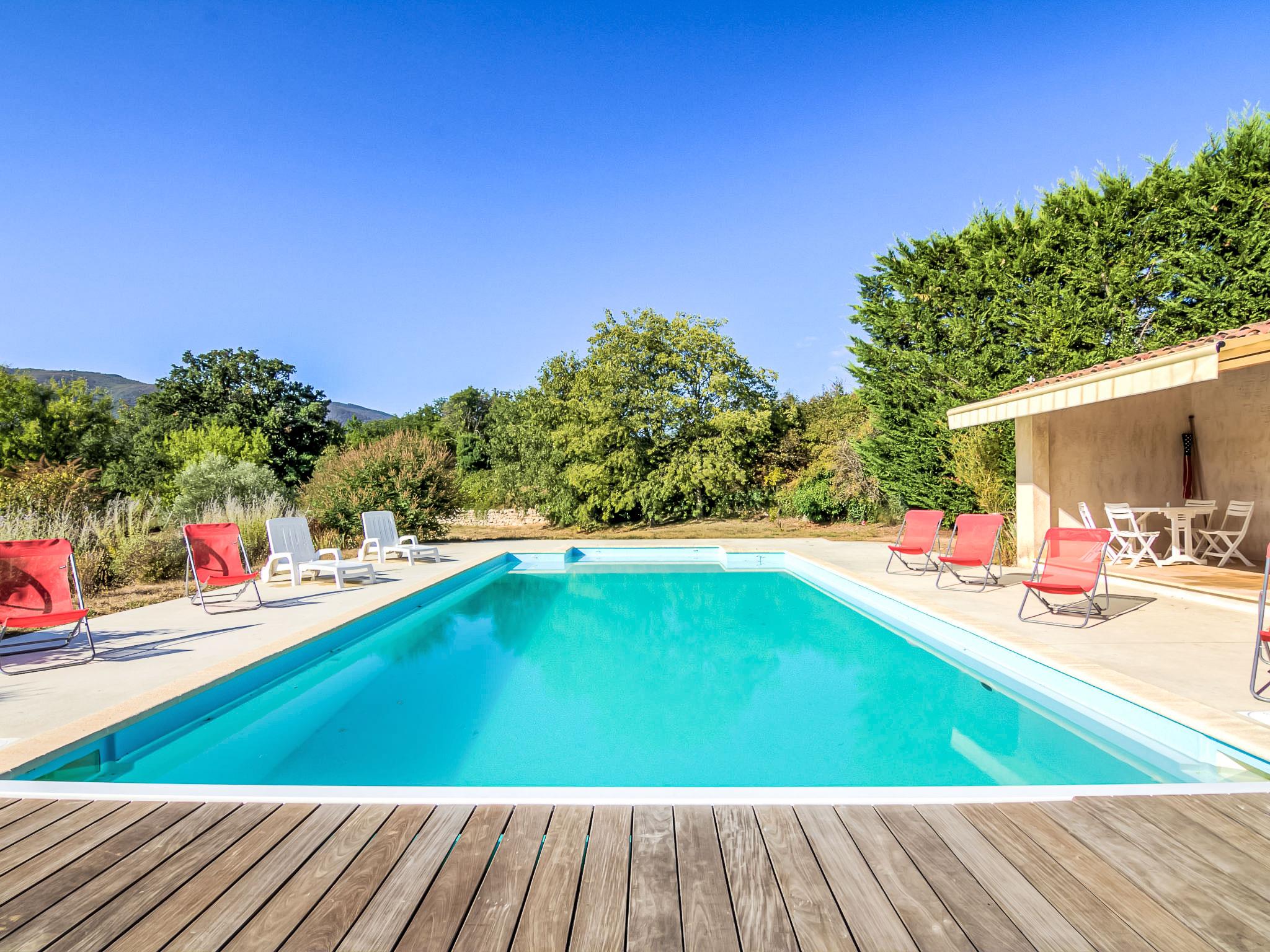 St Martin Castillon: Single-family house "Les Cotes". Outside the resort, in a secluded position. Private: property 7'200 m2, swimming pool (5 x 10 m, depth 40 - 170 cm, seasonal availability: 01.Jun. - 28.Sep.) with internal staircase. WC in the pool area, barbecue, roofed, parking on the premises. Shop 1 km, grocery 1.5 km, restaurant 1 km, bus stop "Centre" 1 km. Please note: car recommended. Swimming pool, floodlit, enclosed by a plastic sturdy electric fence.