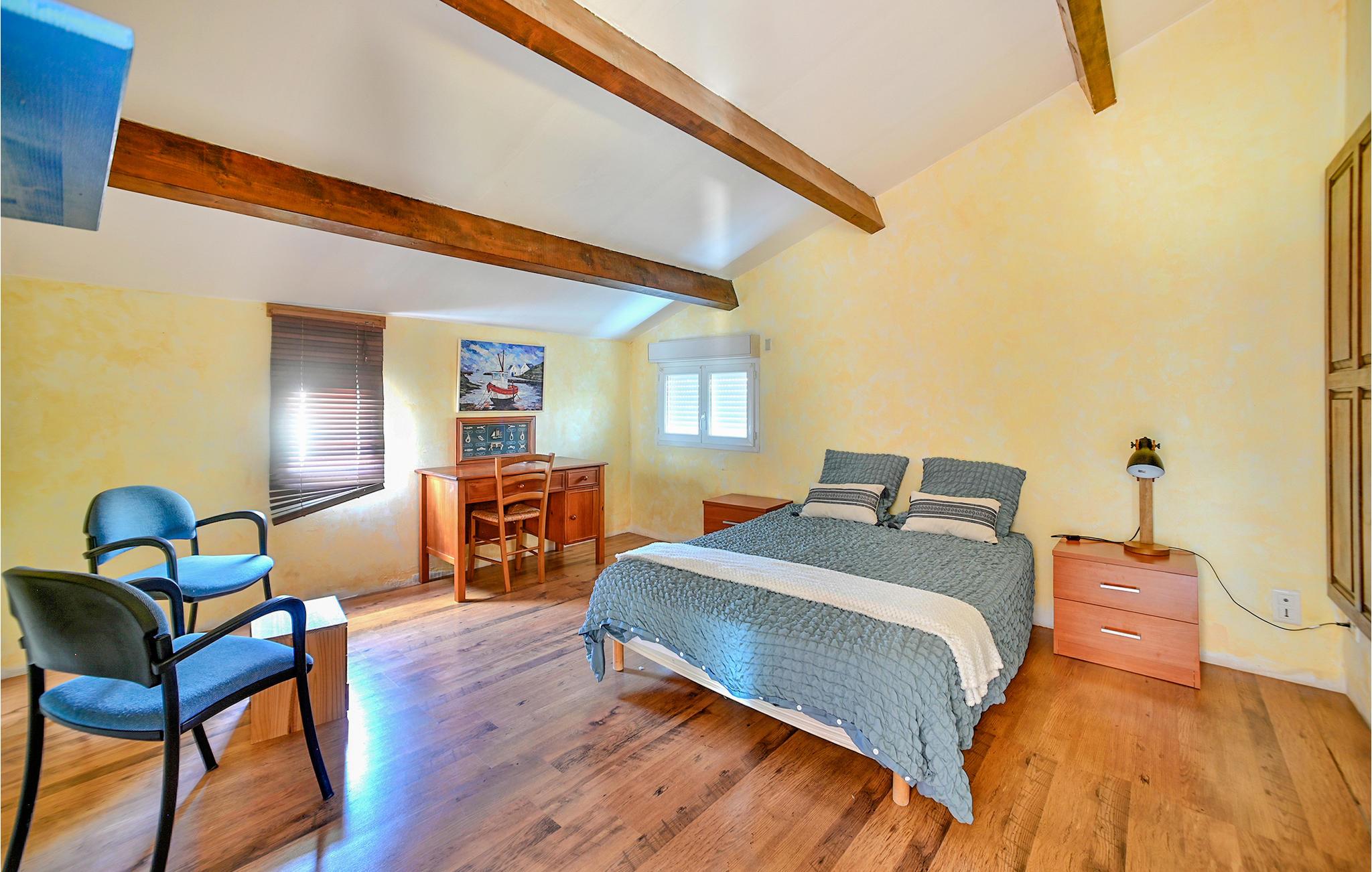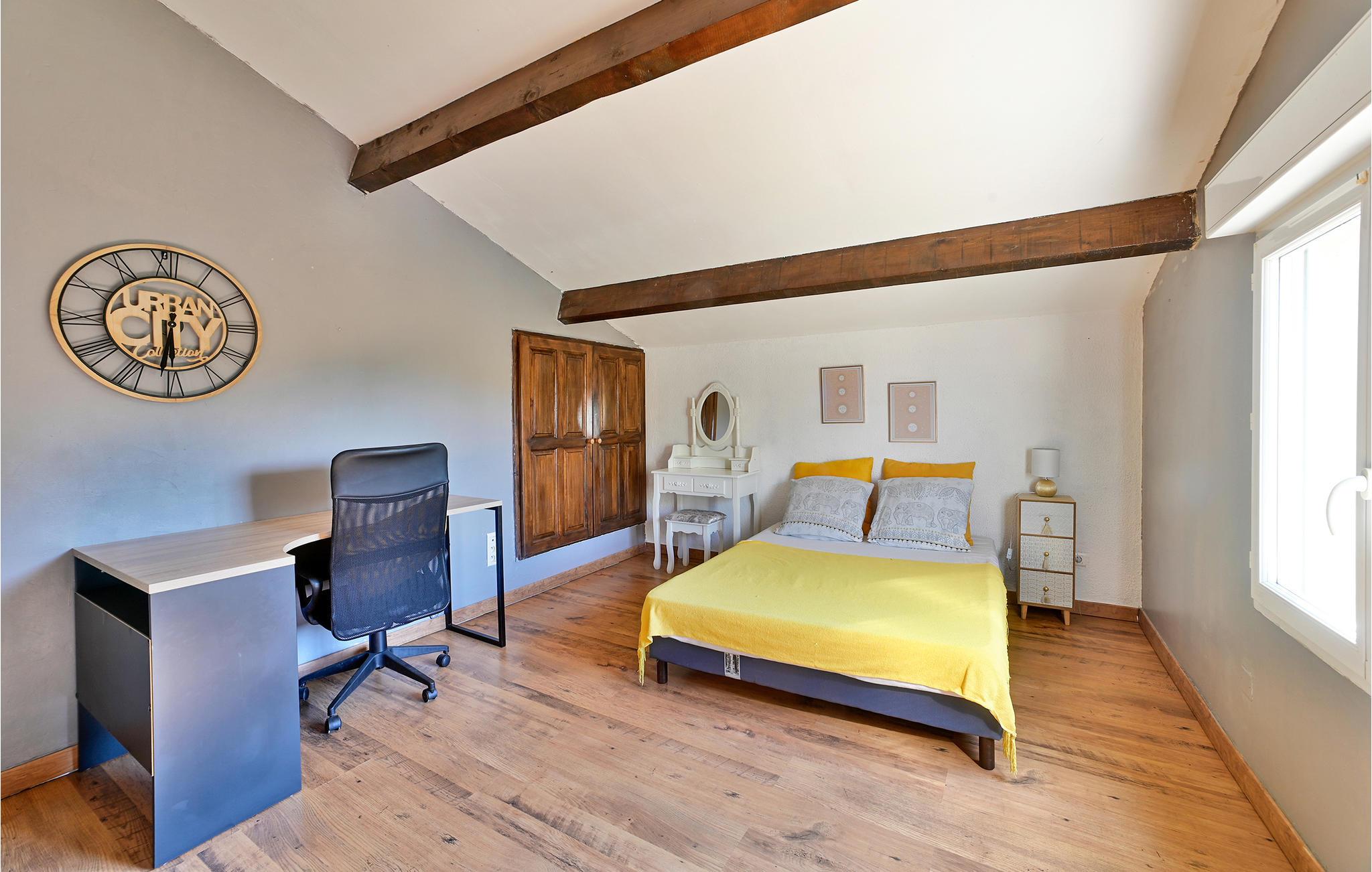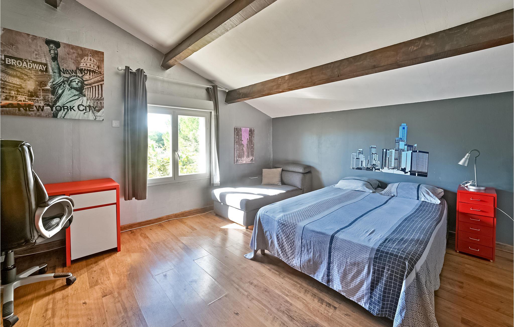 Velkommen til dette rummelige hus, der tilbyder hele familien masser af plads og lægger op til at nyde dagene i de hyggelige lokaler. Det store køkken med køkkenø giver jer gode rammer til at lave mad sammen og fremtrylle lækre retter. I mellemtiden kan børnene tegne eller spille spil ved spisebordet, før alle går ud på terrassen for at spise eller bade i poolen. Så snart I ankommer, vil I sætte pris på parkeringspladsen samt den smukt anlagte have med træer, boulebanen og gyngen, hvis I har børn.