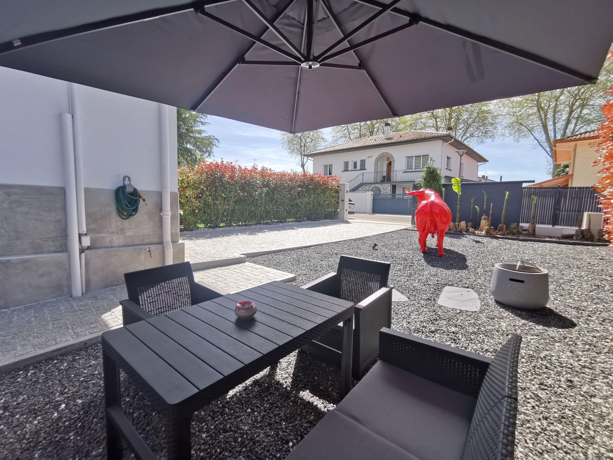 With a surface area of approximately 49 m², the accommodation comprises the following rooms: a fully-equipped kitchen with cooker, fridge with freezer, oven, microwave, washing machine, dishwasher, coffee maker, toaster, and dining area that can accommodate 4 people for a meal, flat-screen smart TV (TNT, Netflix, youtubes etc.) The bedroom with a 160cm bed opens onto the fully-equipped bathroom, with sink, shower, bathtub with 26 balneotherapy and light therapy jets for total relaxation, and toilet. free wifi