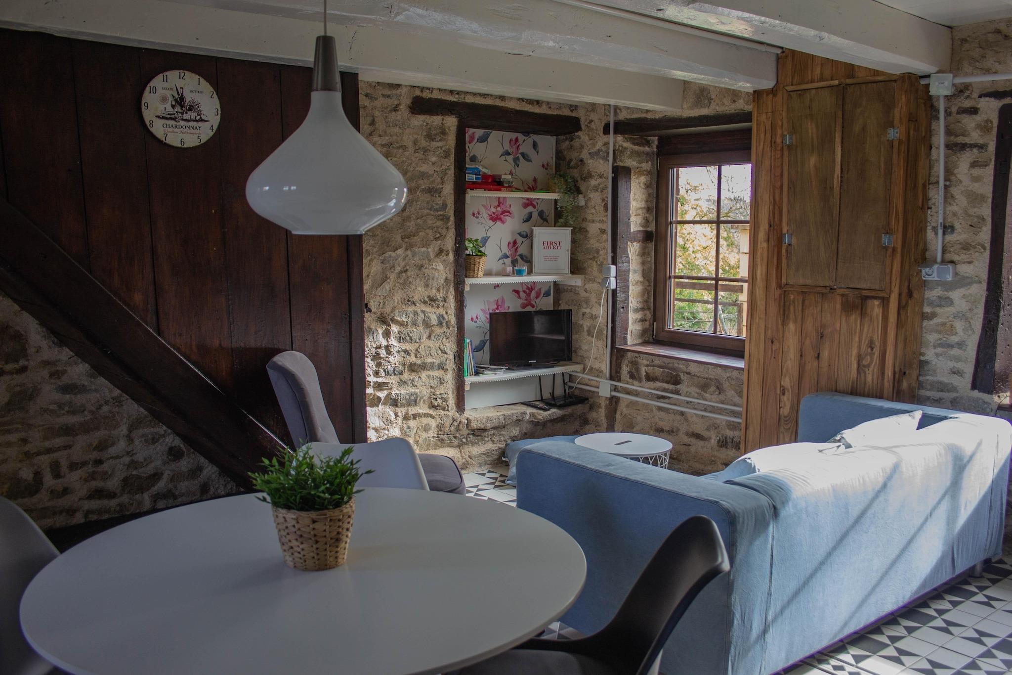 Denne vidunderlige bolig i Frankrigs grønne hjerte, Auvergne, er udstyret med alle bekvemmeligheder. Med fred, plads, natur og en smuk udsigt over bakkerne i Combraille og Creuse, kan du nyde en uforglemmelig ferie her med familie eller venner. Hunde er også meget velkomne (maks. 3 store hunde anbefales)! Boligen kan højst rumme 3 voksne eller 2 voksne og 2 børn Huset ligger i departementet Puy-de-Dôme. Du kan nyde at gå, og du vil finde forskellige maleriske steder, såsom Charron, Bussières og Roche-d'Agoux. Den forreste del af denne tidligere "fermette" (gård) udlejes af husejerne. Det er det sidste hus i en lille landsby på en blind vej Anden sal er tilgængelig via soveværelset på første sal og den hyggelige bolig er indrettet med et særligt attraktivt interiør Der er legetøj til hundene og de kan lege trygt i den lukkede private have Den private swimmingpool tilbyder vidunderlig afkøling i sommerdagene!