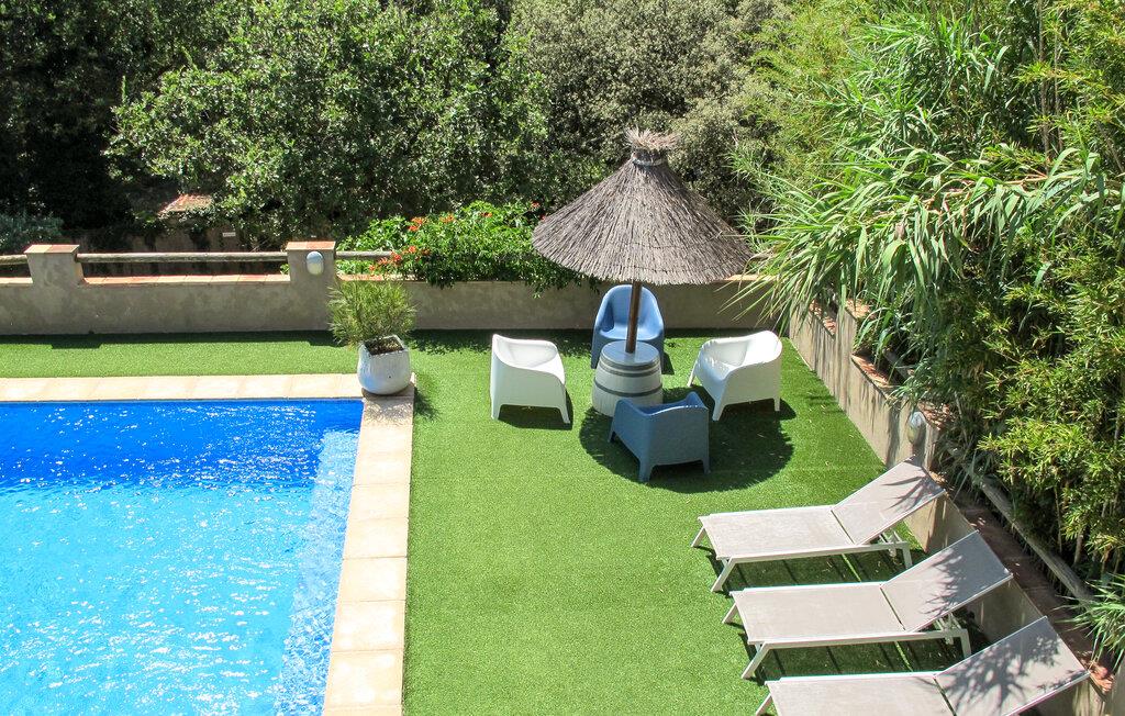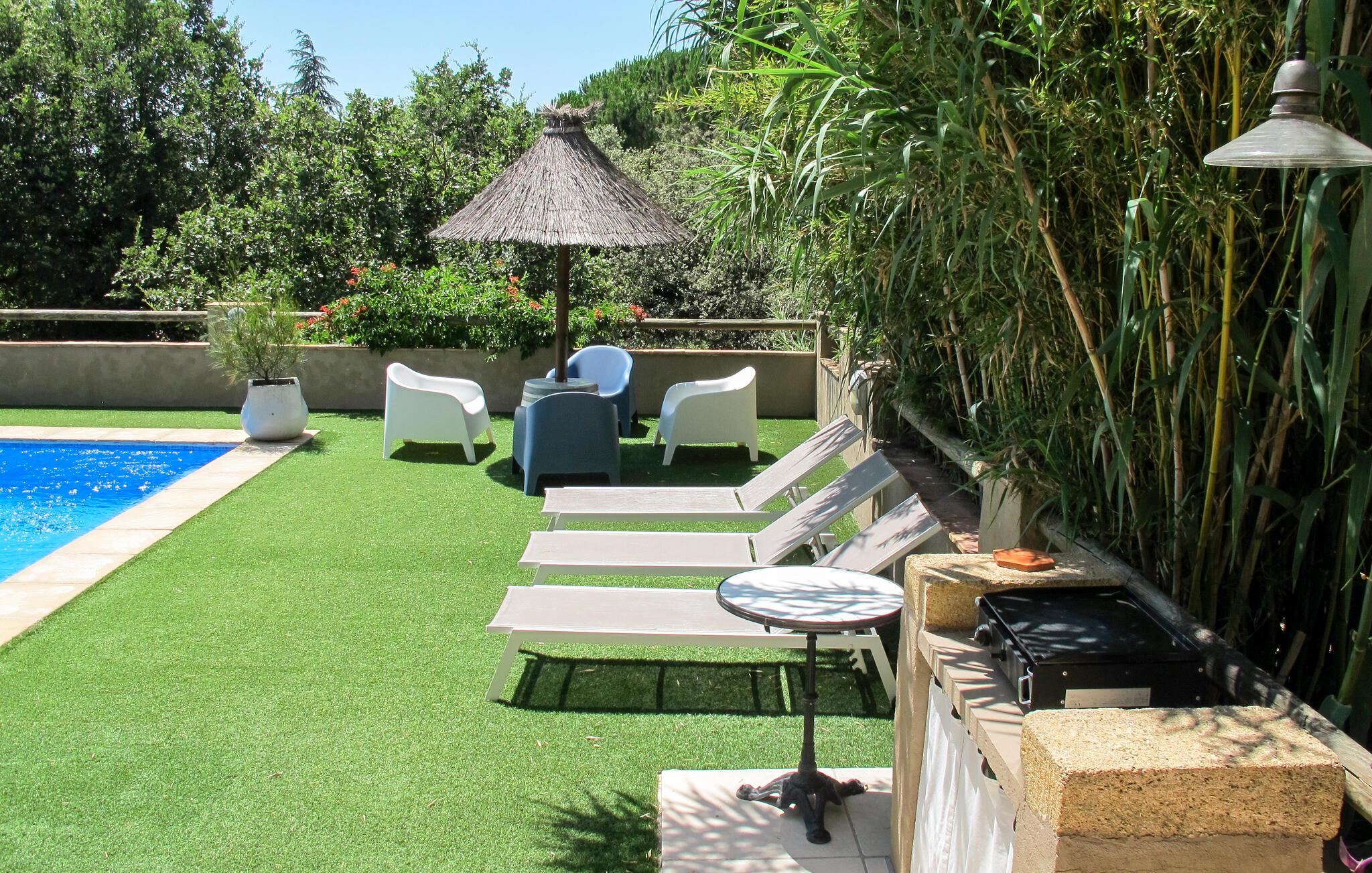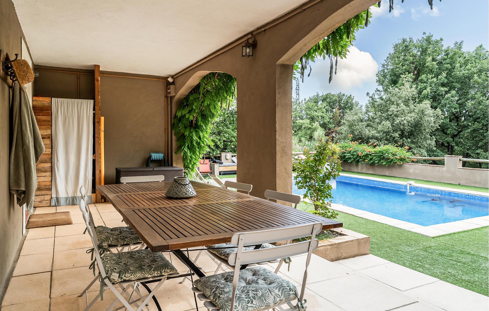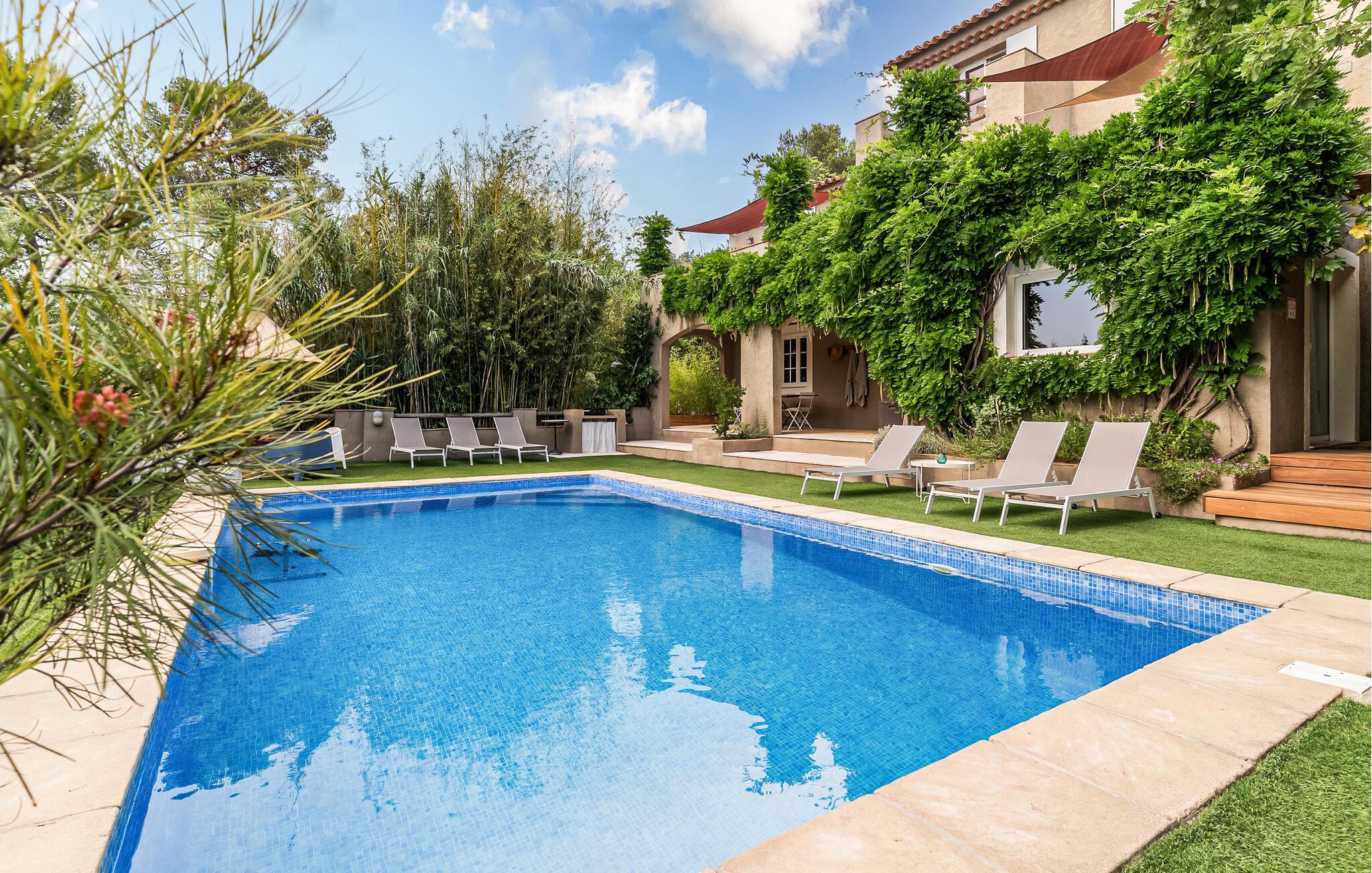 Med en rummelig saltpool, en solterrasse med liggestole og en overdækket terrasse med plancha inviterer ejendommen til at tilbringe afslappende dage udendørs. En petanquebane, en trampolin og en svævebane sørger for underholdning - perfekt for unge og gamle. Den hyggelige opholdsstue i stueetagen og et ekstra studie tilbyder nok plads til familien eller venner.