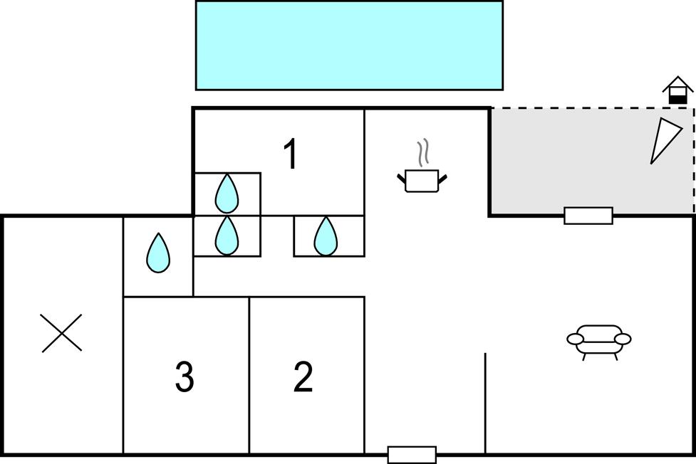 Køkkenet har v/k vand