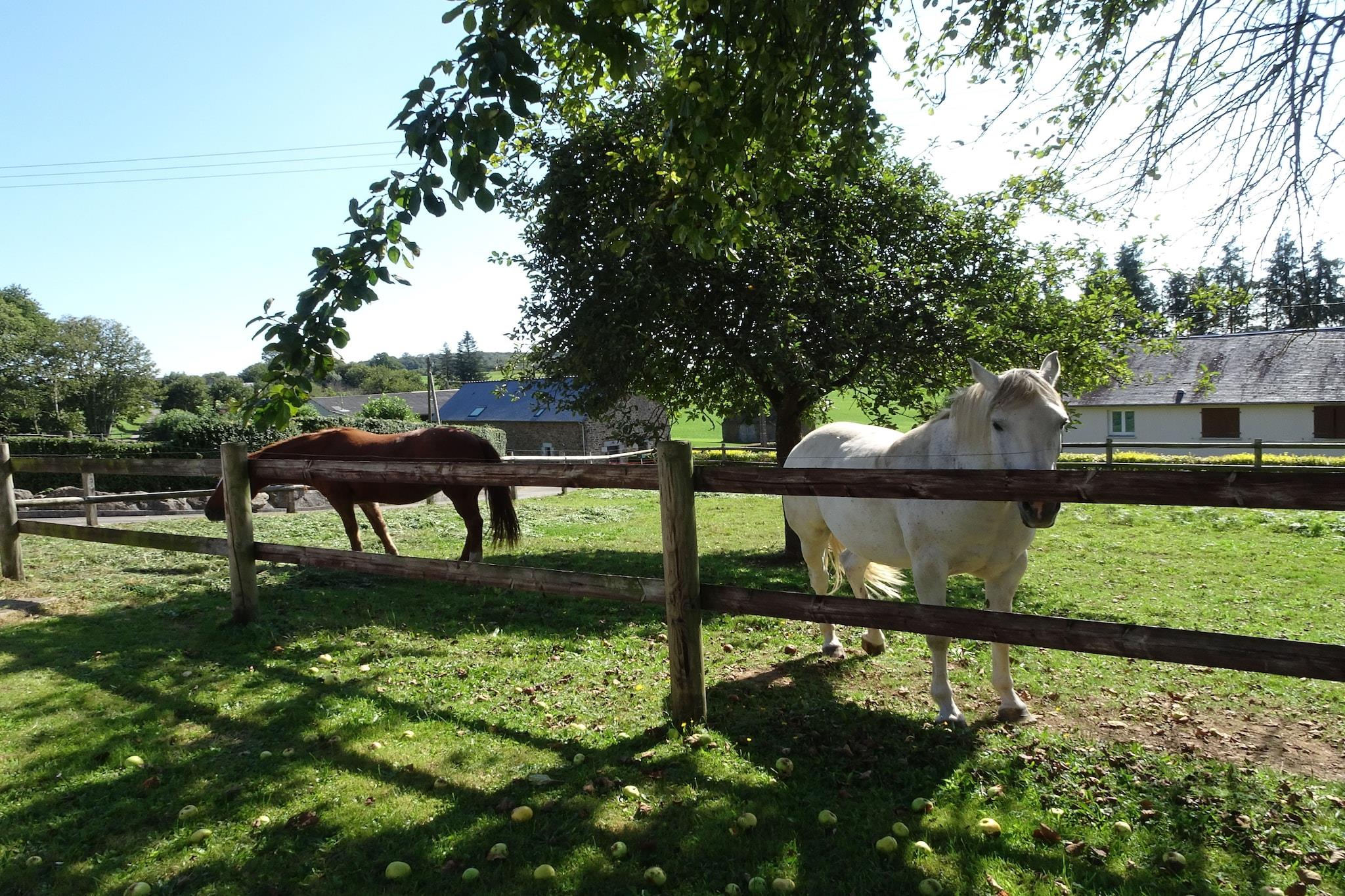 Charmerende, fuldstændig renoveret landejendom nær Mont St. Michel, beliggende i en rolig landsby. Dejlig fred og ro på landet omgivet af dejlige dyr, der hører til ejendommen: heste, æsler, ponyer. På terrassen er der grill og havemøbler, ideelt til solrige dage eller kølige aftener. Rummeligt og hyggeligt interiør med stenvægge og åbne bjælkelofter. Sommerhuset er funktionelt og meget velholdt. Den smukke, lyse stue-spisestue, den ombyggede mezzanin samt fire soveværelser og 2 badeværelser byder på masser af plads til en stor familie eller lille gruppe. Talrige vandrestier gennem skove og enge, som også er tilgængelige for cykler, omgiver feriehuset. Udlejer udlejer også cykler til dagsture mod et gebyr, der betales lokalt.