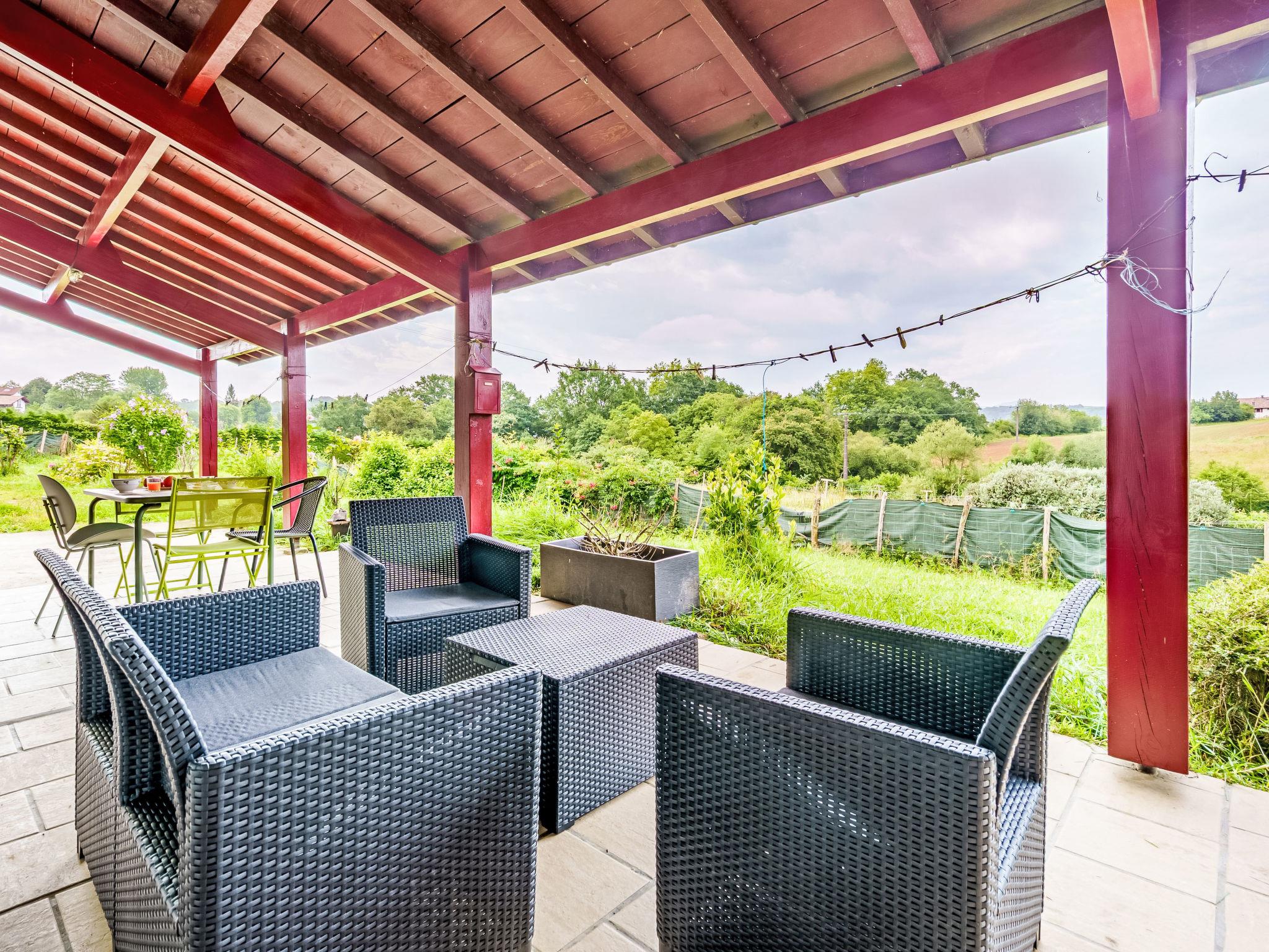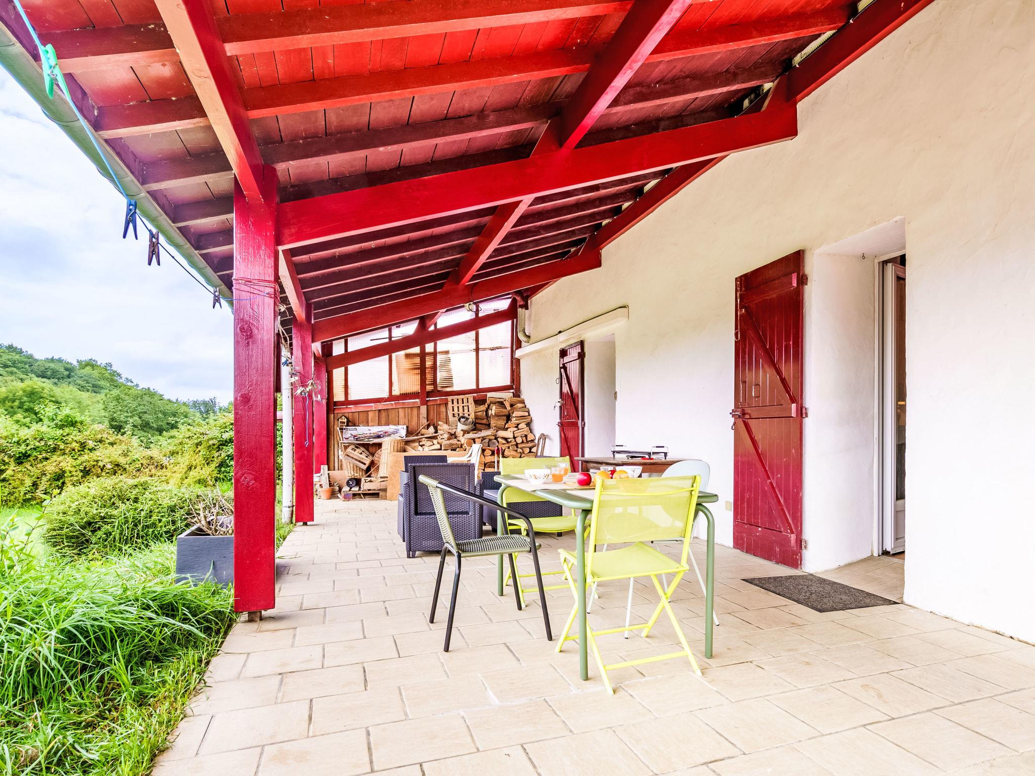 "Iratzea", 2-room apartment 100 m2, on the ground floor. Simple furnishings: living/dining room with 1 double sofabed (140 cm, length 190 cm), TV (flat screen). Exit to the terrace. 1 room with 1 french bed (140 cm, length 190 cm). Large, open kitchen (4 ceramic glass hob hotplates, toaster, kettle, microwave, electric coffee machine) with dining table. Shower/WC, sep. WC. Air-conditioning. Large terrace 40 m2. Terrace furniture, electric barbecue. View of the valley. Facilities: washing machine, hair dryer. Internet (WiFi, extra). Parking (fenced). Please note: 1 small pet/ dog allowed. Smoke alarm. Offer by a private individual according to Art. 155, IV of CGI.