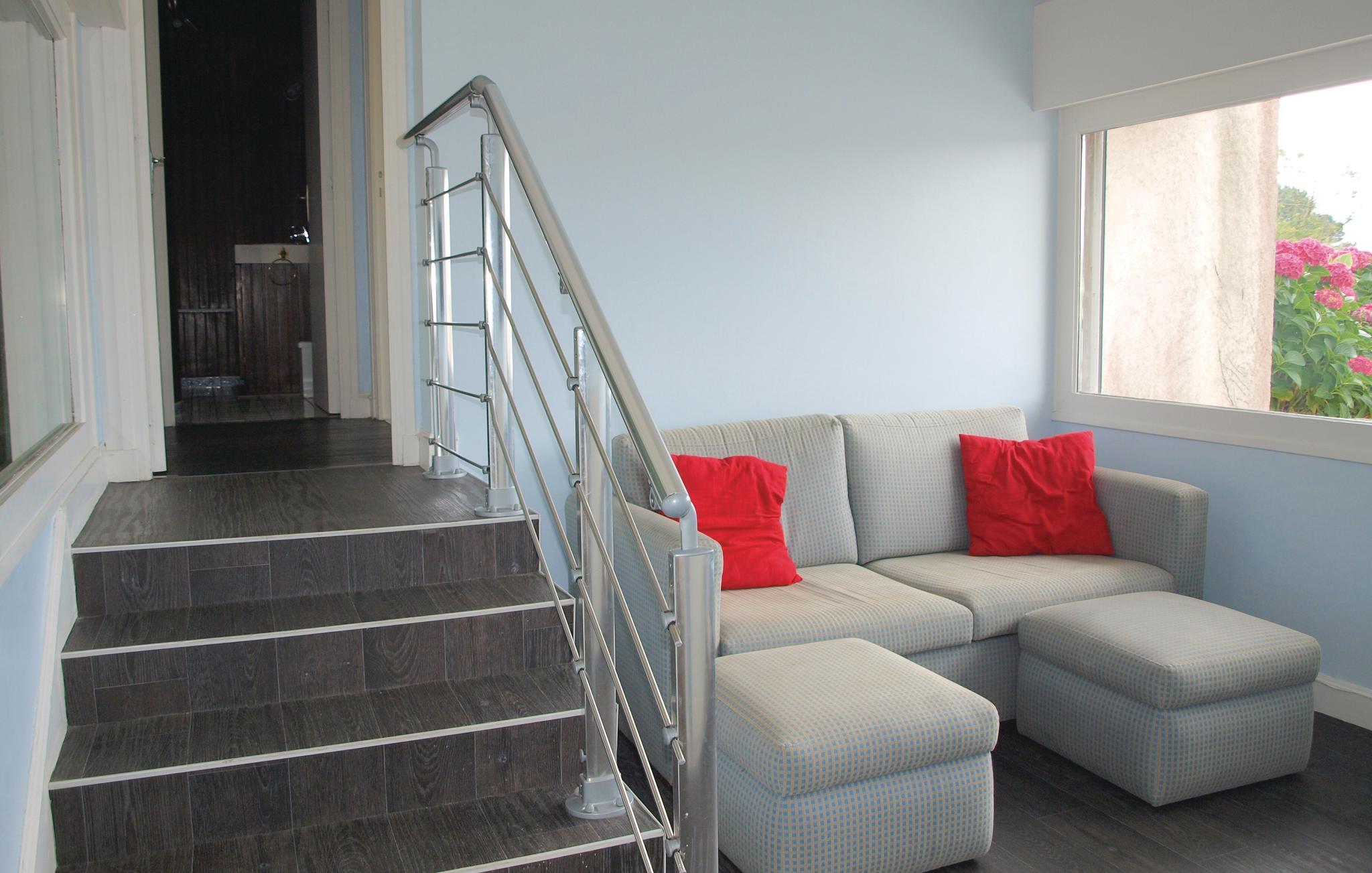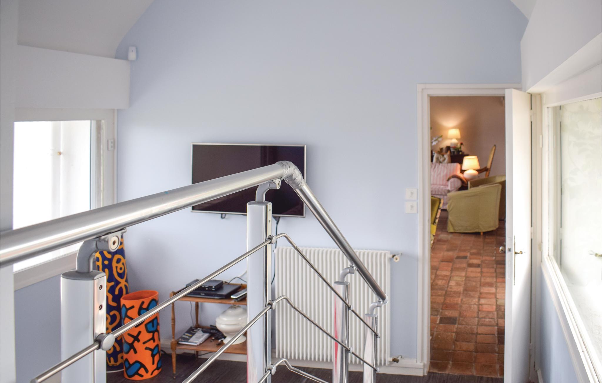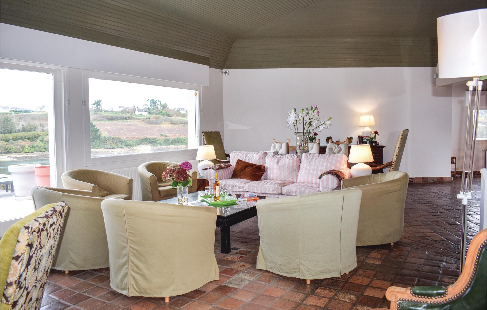 Takket være sin privilegerede beliggenhed og store panoramavinduer kan I nyde en fantastisk udsigt over det rolige vand i Aber Benoît fra dette lyse og rummelige hus. Pisk lækre retter op i det moderne køkken og tag plads i den hyggelige spiseplads. Glæd jer til hyggelige aftener ved brændeovnen i den store stue og afslut dagen med en hyggelig spilleaften eller et glas vin.