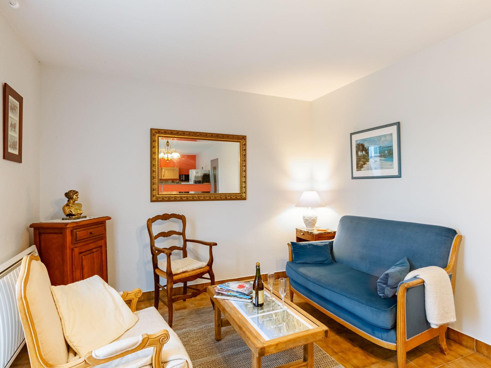 "Les Dunes", 3-room house 60 m2 on 2 levels, south-west facing position. Tasteful furnishings: living/dining room with dining table, digital TV, international TV channels and radio. Exit to the garden, to the terrace. Open kitchen (3 induction hot plates, toaster, kettle, microwave, electric coffee machine). Exit to the terrace. Shower/WC. Electric heating. Upper floor: 1 room with 1 french bed (140 cm, length 190 cm). 1 room with 1 bed (90 cm, length 190 cm), 1 sofabed (120 cm, length 190 cm). Terrace 24 m2, south facing position and west facing position. Terrace furniture, barbecue (portable), deck chairs (3). Facilities: washing machine, iron, children's high chair. Internet (WiFi, free). Please note: non-smoking house. Smoke alarm.