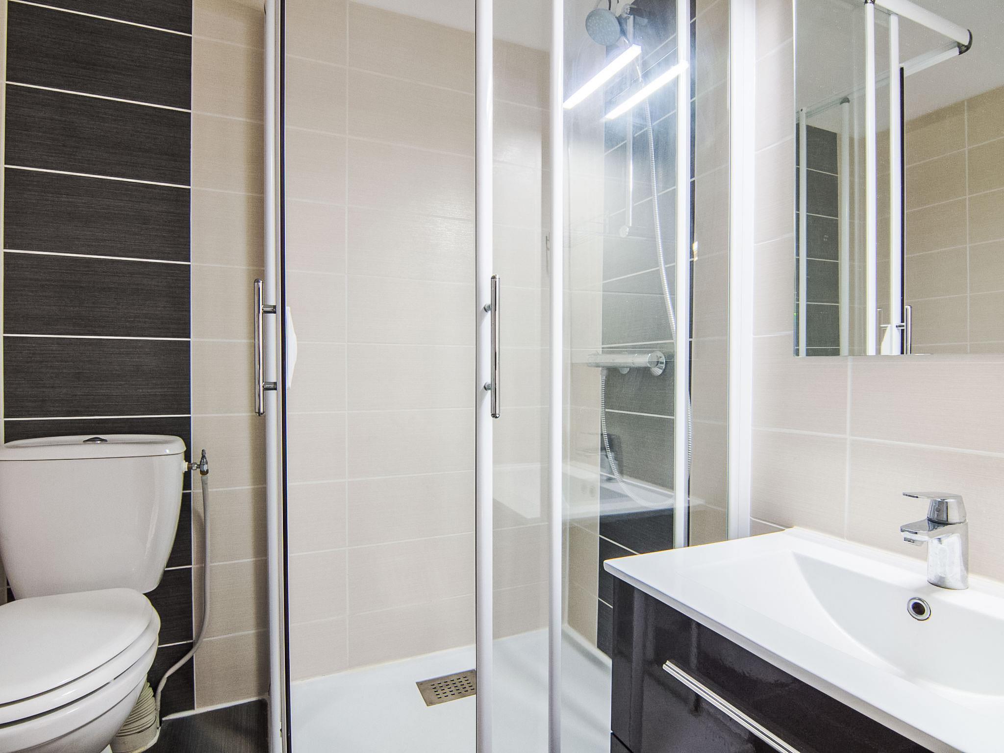 1-room studio 32 m2 on 2 levels on 1st floor. Practical furnishings: living/dining room with 1 double sofabed (1 x 140 cm, length 190 cm), TV (flat screen). Exit to the terrace. Kitchenette (2 hot plates, mini-oven, dishwasher, kettle, microwave, electric coffee machine). Sep. WC. Electric heating. Upper floor: gallery with rooflight with 1 bed (90 cm, length 190 cm), 1 french bed (1 x 140 cm, length 190 cm). Shower/WC. Terrace 7 m2. Terrace furniture. Facilities: washing machine. Internet (WiFi, extra). Please note: apartment street side. Smoke alarm. Instead of an enclosed bedroom, some sleeping areas are located in an open-plan area (gallery, alcove, etc.).