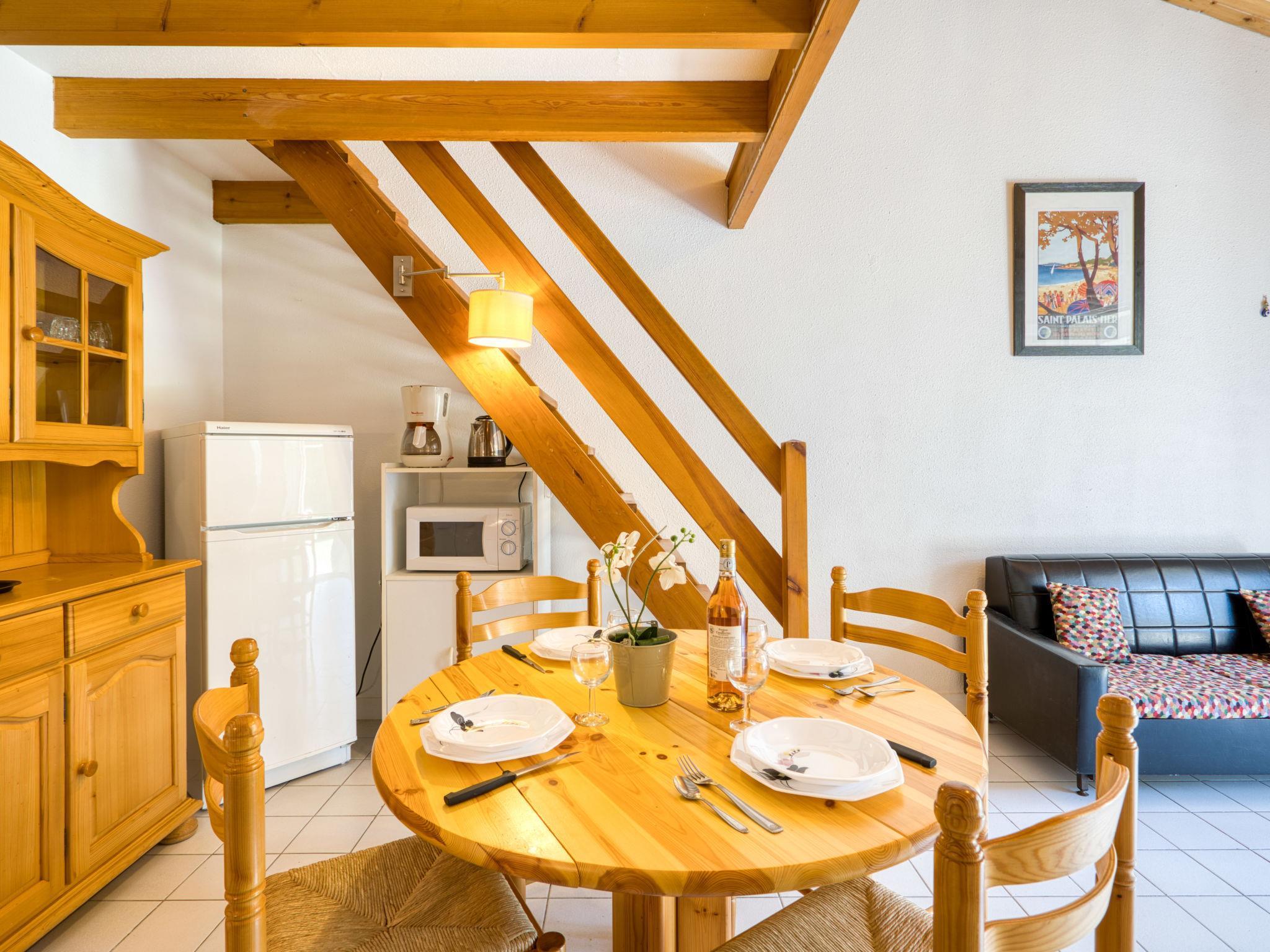 2-room maisonette 35 m2, on the ground floor, south facing position. Living room with TV (flat screen). Exit to the terrace, to the patio. 1 room with 1 french bed (1 x 140 cm, length 190 cm). Kitchenette (2 induction hot plates, toaster, kettle, microwave, freezer, electric coffee machine). Bathroom, sep. WC. Electric heating. Upper floor: gallery with 1 x 2 bunk beds (90 cm, length 190 cm), 1 french bed (1 x 140 cm, length 190 cm). Terrace 10 m2, patio 10 m2. Terrace furniture. Facilities: Internet (WiFi, extra). Parking space n 37. Please note: apartment street side. Smoke alarm. Offer by a private individual according to Art. 155, IV of CGI.