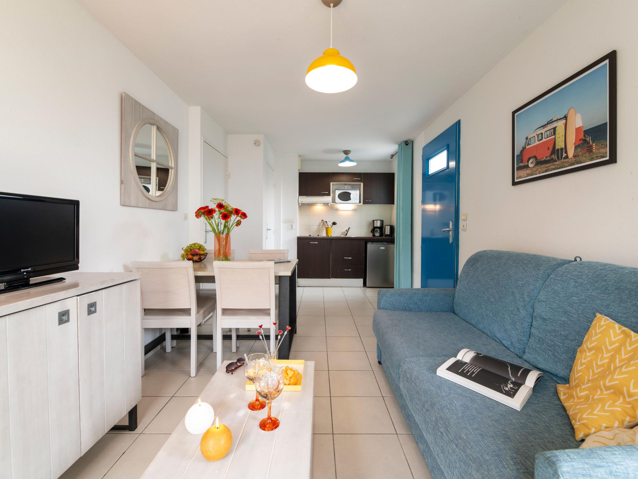 Resort "Les Carrelets". 7 houses in the resort. 71 apartments in the residence. 2.5 km from the centre of Saint Palais-sur-Mer, 700 m from the sea. For shared use: property, swimming pool heated (9 x 4 m, depth 75 - 130 cm, seasonal availability: 15.Apr. - 15.Sep.). Hot tub, boccia, children's playground. In the complex: reception, sauna (extra). Hot tub, washing machine, tumble dryer (for shared use, extra). Parking (limited number of spaces). Shop 100 m, supermarket 2.5 km, bus stop "Auture" 280 m, sandy beach 1 km, rocky beach 700 m. Please note: the photograph shows a typical example. The holiday properties may differ in living space, floorplan, equipment and furnishing.