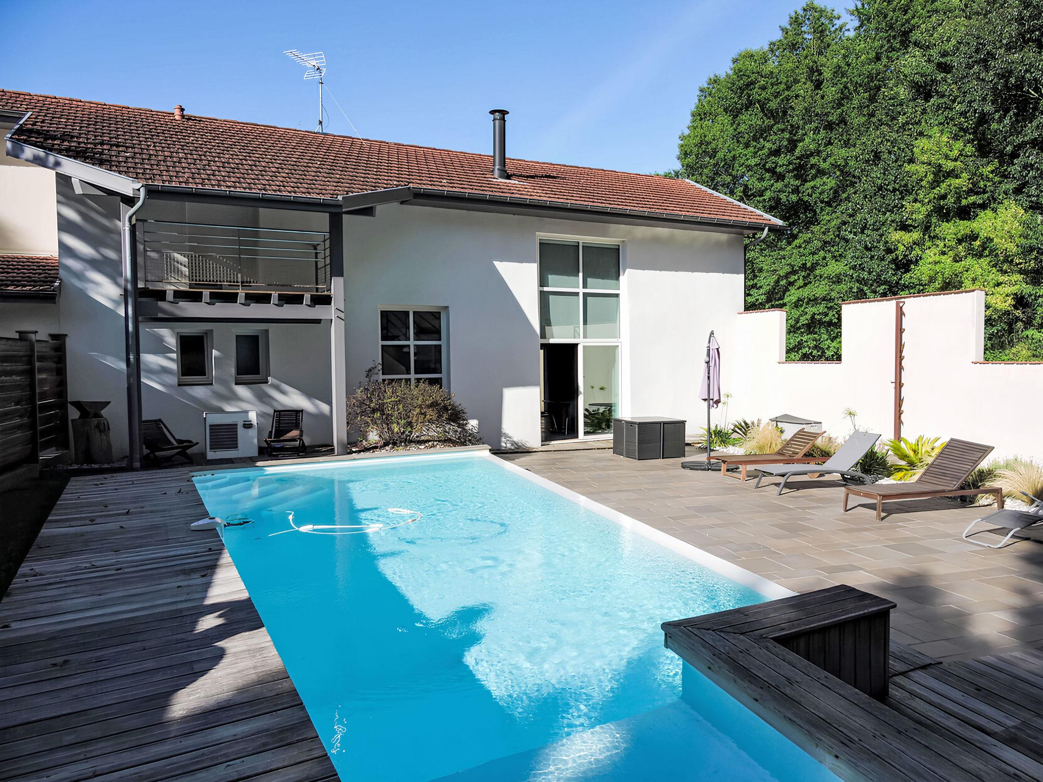 Saint Pandelon 43 km from Hossegor: Single-family house "LA FORGE", renovated in 2010. In the resort, 45 km from the sea, on a main road. Private: property 310 m2 (fenced), garden 30 m2 (fenced) lawn 60 m2, swimming pool (seasonal availability: 01.Apr. and 01.Oct.) with internal staircase. Outdoor shower, terrace (225 m2), garden furniture, barbecue. Motor access to 10 m from the house. Parking at the house. Shop 2 km, grocery 2 km, supermarket 2 km, restaurant 2 km, bus stop 200 m, indoor swimming pool 2 km. Golf course (18 hole) 45 km, tennis 2.5 km. Please note: car recommended.