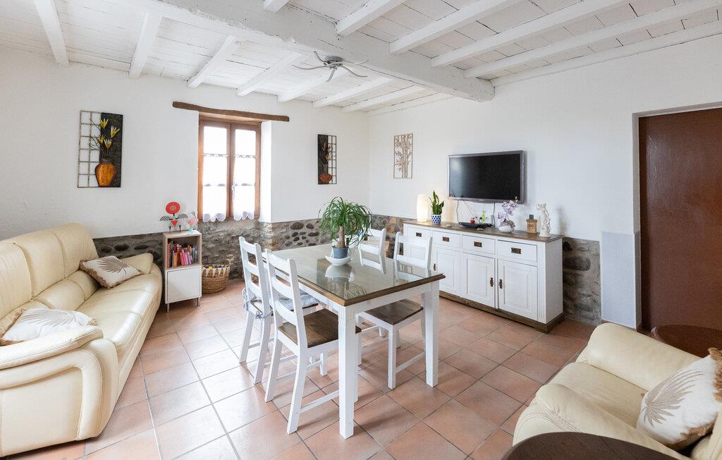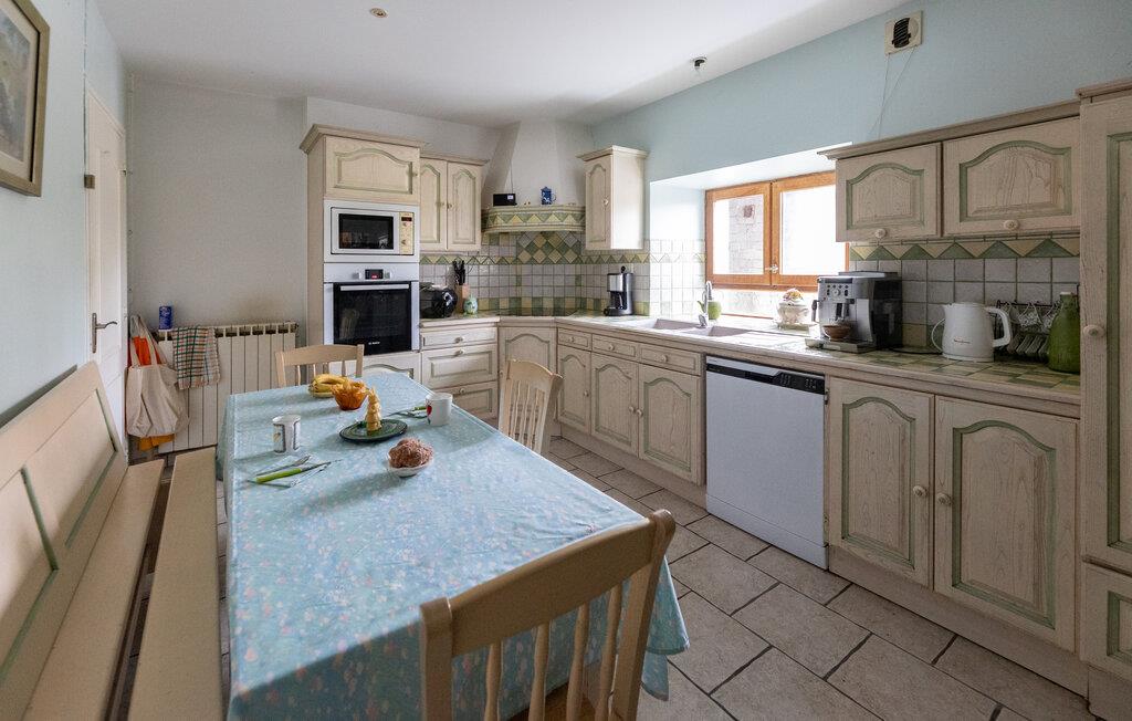 Kom ind og lad jer overraske af de mange faciliteter, som dette rummelige og nænsomt restaurerede feriehus har i vente til jer. Lav mad sammen i det rummelige køkken og nyd dagens måltider enten i den rustikke spiseplads eller i den lyse stue. Slap af med en bog foran pilleovnen eller hold en spilleaften i sofaen.