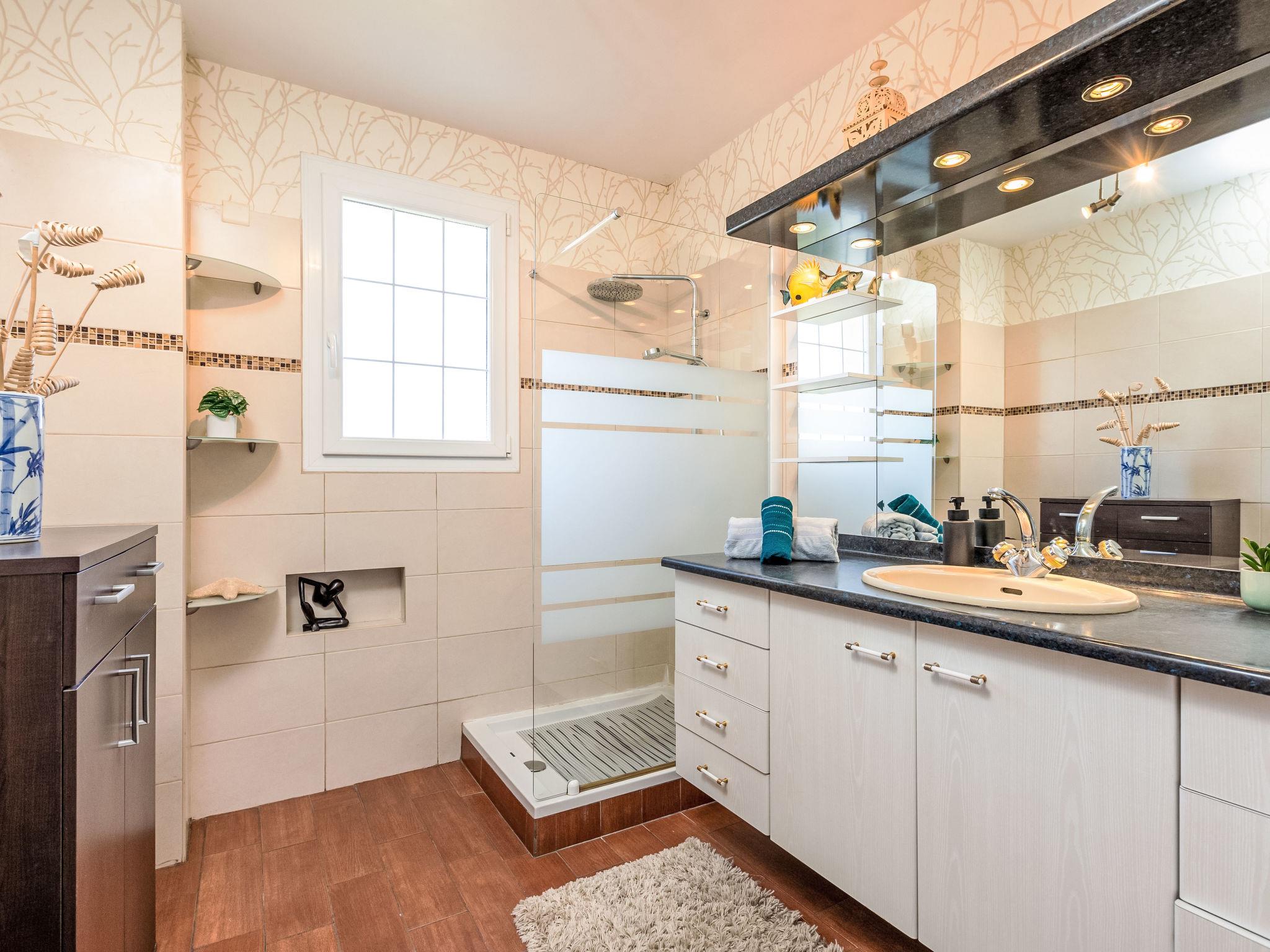 5-room house 160 m2 on 2 levels. Simple and comfortable furnishings: living/dining room with open-hearth fireplace (only for decoration), TV (flat screen). Exit to the veranda. 1 room with 1 french bed (1 x 140 cm, length 190 cm). Kitchen (oven, dishwasher, 3 induction hot plates, toaster, kettle, microwave, freezer, electric coffee machine). Exit to the veranda. Shower, sep. WC. Electric heating. Upper floor: 1 room with 2 beds (90 cm, length 190 cm). 2 rooms, each room with 1 french bed (1 x 140 cm, length 190 cm). Shower/WC. Terrace 15 m2, south facing position and west facing position. Terrace furniture, barbecue. Facilities: washing machine, hair dryer. Internet (WiFi, free). Please note: non-smoking house. Smoke alarm. Offer by a private individual according to Art. 155, IV of CGI.