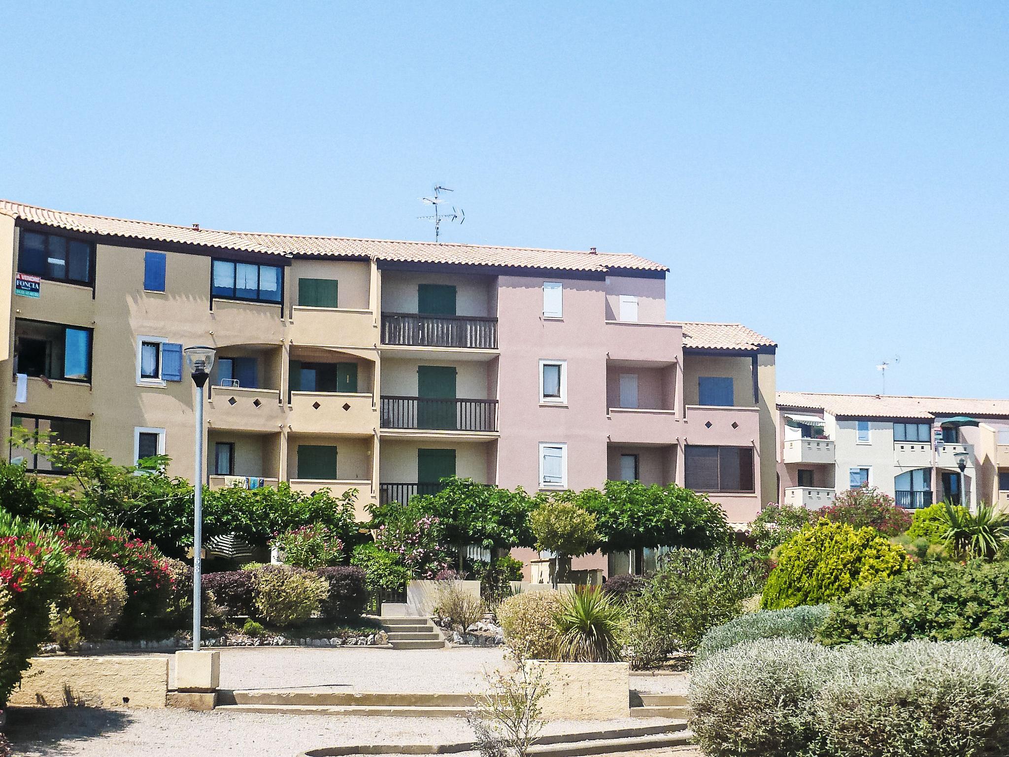 Residence "Les Terrasses de la Méditerranée". Above Saint Pierre La Mer, 1 km from the sea, 1 km from the beach. For shared use: swimming pool (20 x 10 m, depth 120 - 120 cm, seasonal availability: 15.Jun. - 15.Sep.). Tennis. Shop 1 km, restaurant 1 km, bar 1 km, bus stop 200 m, diving center 2 km. Sports harbour 2 km, riding stable 3 km. Nearby attractions: Réserve Africaine de sigean 36 km, Cité de Carcassonne 78 km, Espace balnéoludique de Gruissan 11 km. Please note: the keys‘ handover takes place by the agency Interhome in Narbonne Plage, 3 km. The photograph shows a typical example. Additional accommodations can be booked.