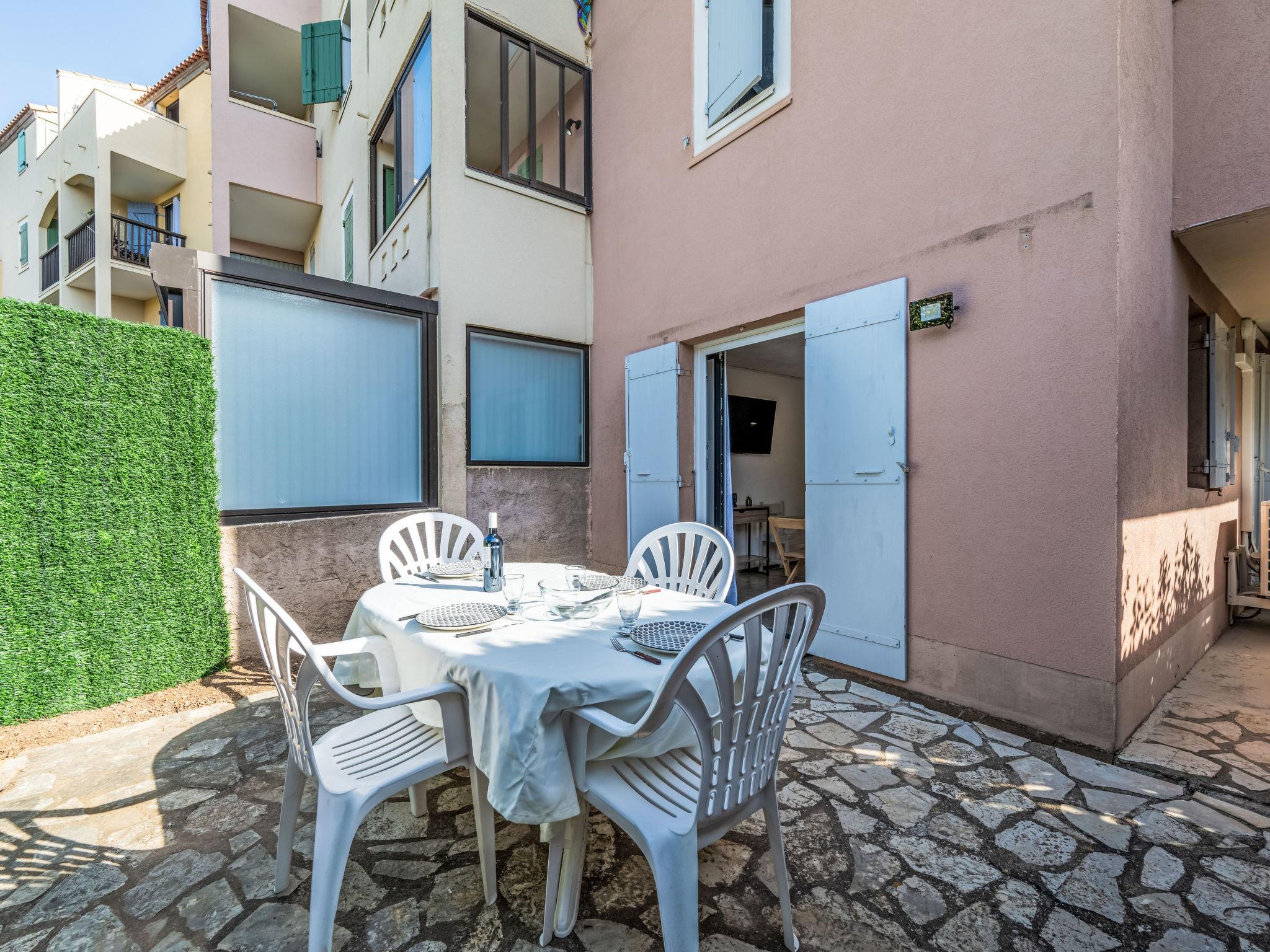 2-room apartment 33 m2, on the ground floor. Renovated in 2024, beautiful furnishings: living/dining room with TV (flat screen). Exit to the terrace. 1 room with 1 double sofabed (140 cm). Sleeping alcove with 1 french bed (140 cm). Kitchenette (oven, 2 induction hot plates, microwave, electric coffee machine, Capsules for coffee machine (DOLCE GUSTO) extra). Shower/WC. Air-conditioning. Terrace 12 m2. Terrace furniture. Facilities: washing machine. Internet (WiFi, free). Parking. Please note: smoke alarm. Please note: terrace close to the road. Offer by a private individual according to Art. 155, IV of CGI. FR6637.400.13