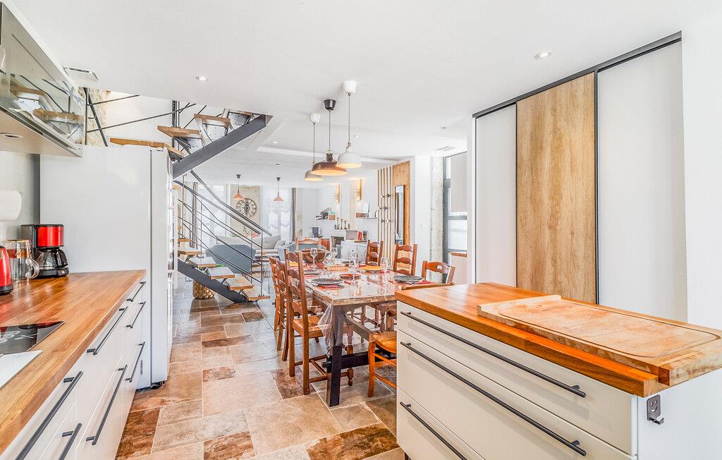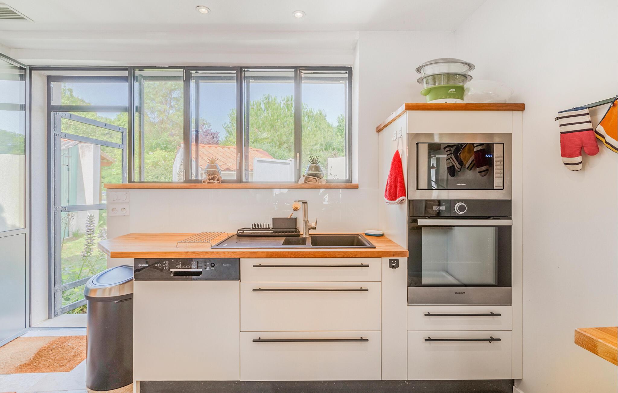 Dette indbydende feriehus har en attraktiv beliggenhed med nem adgang til en lang række attraktioner på Atlanterhavskysten. Find jer godt til rette i de tiltalende, lyse rum, som er smagfuldt og originalt indrettet. Det åbne køkken giver jer gode rammer til madlavningen, og om aftenen kan I læne jer godt tilbage i det komfortable opholdsområde.