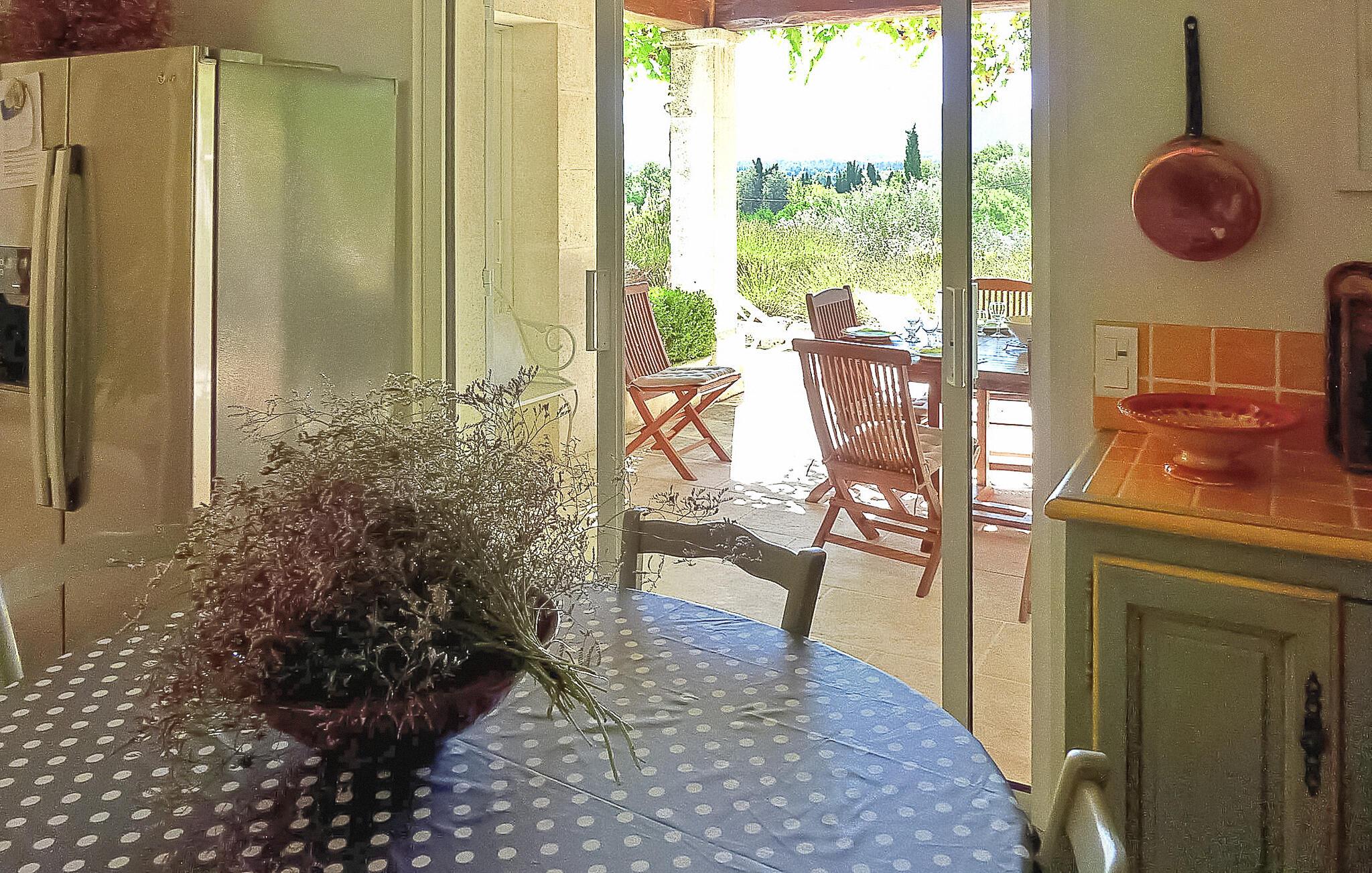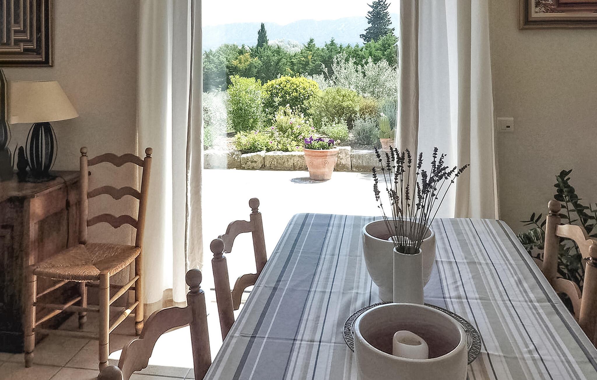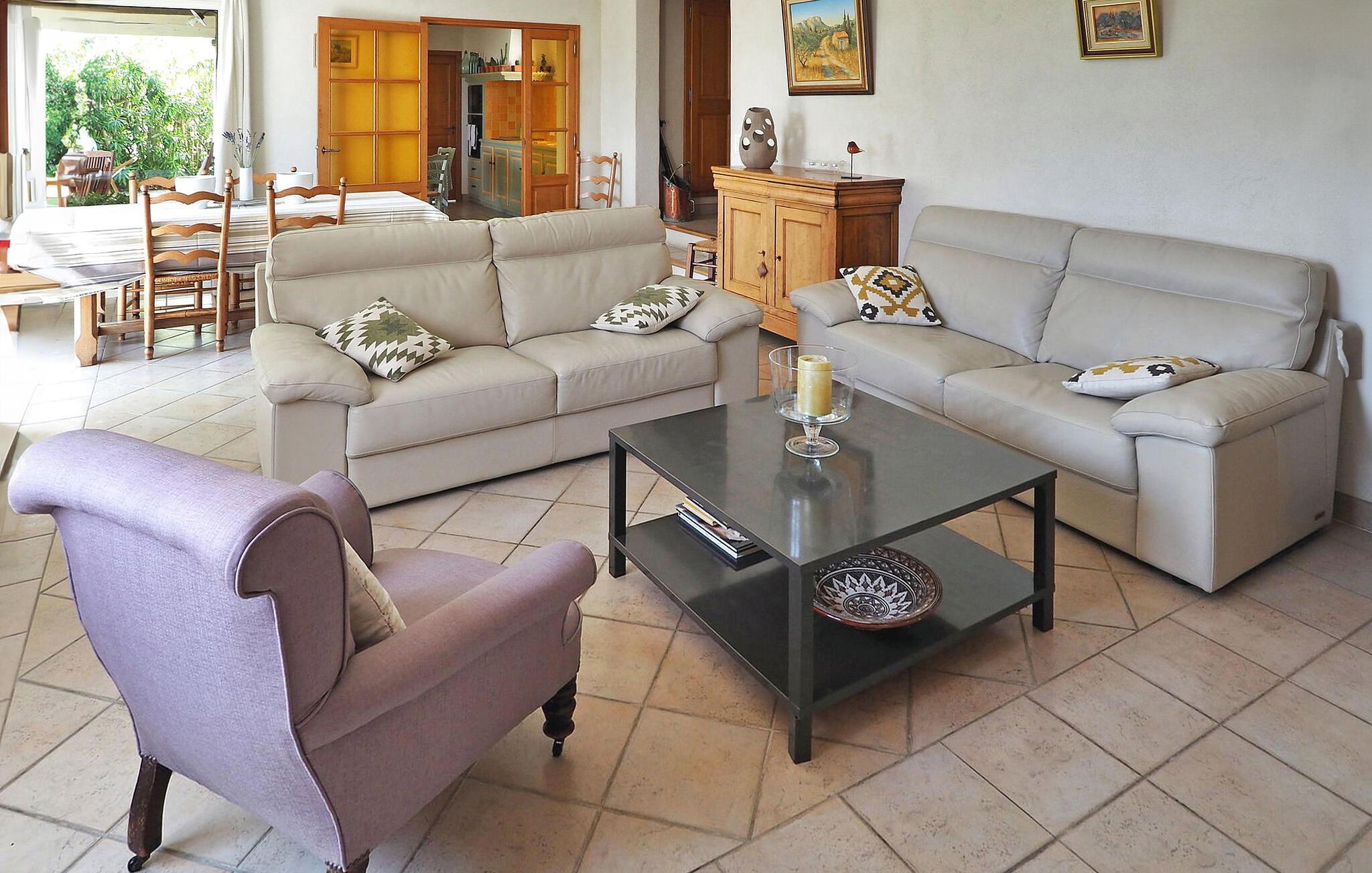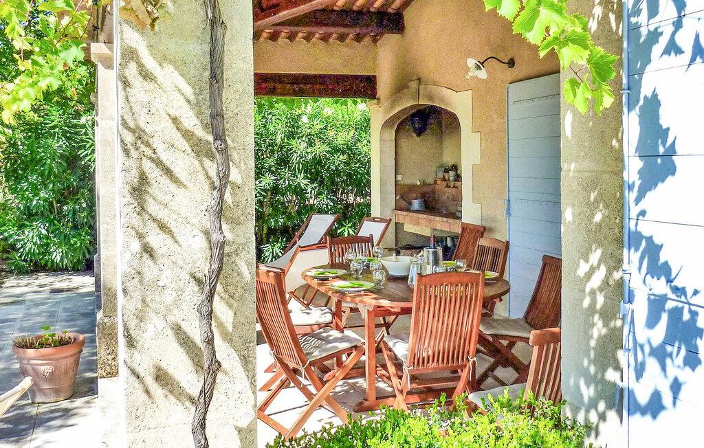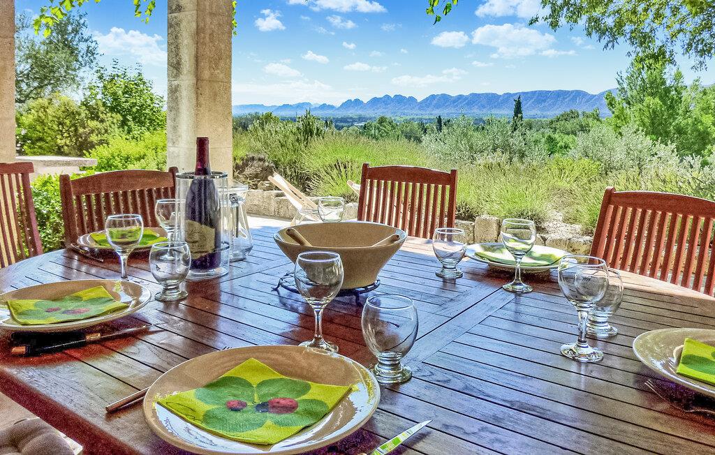 Denne charmerende villa i Saint Rémy de Provence kan prale af rolige omgivelser på en rummelig grund med en opvarmet pool og en fantastisk udsigt over Alpilles. Funktionerne i haveniveau inkluderer et køkken, der åbner ud til en overdækket terrasse, mens spisestuen/stuen (med brugbar pejs) også giver adgang til den overdækkede terrasse for at favne indendørs/udendørs ophold. I stueetagen er der et soveværelse med aircondition, eget badeværelse og en sovesofa egnet til et lille barn. De resterende to soveværelser og badeværelse med aircondition er på første sal. Udenfor er ejendommens vidtstrakte jord prydet med talrige træer. Den overdækkede terrasse byder på grillplads og alfresco spisning med havemøbler. Den private og lukkede opvarmede pool måler 13m x 6m. Huset ligger i ideelle omgivelser lige uden for landsbyen og har en smuk udsigt over Alpilles og et meget roligt miljø. Du skal bruge en bil for at komme til landsbyens centrum af Saint Rémy de Provence med alle butikker (bageri, købmand, supermarked, restauranter). Det er et ideelt udgangspunkt for at opdage Provence; Avignon, Arles og Baux de Provence. Nyd din ferie i en villa i Bouches-du-Rhône i Provence.