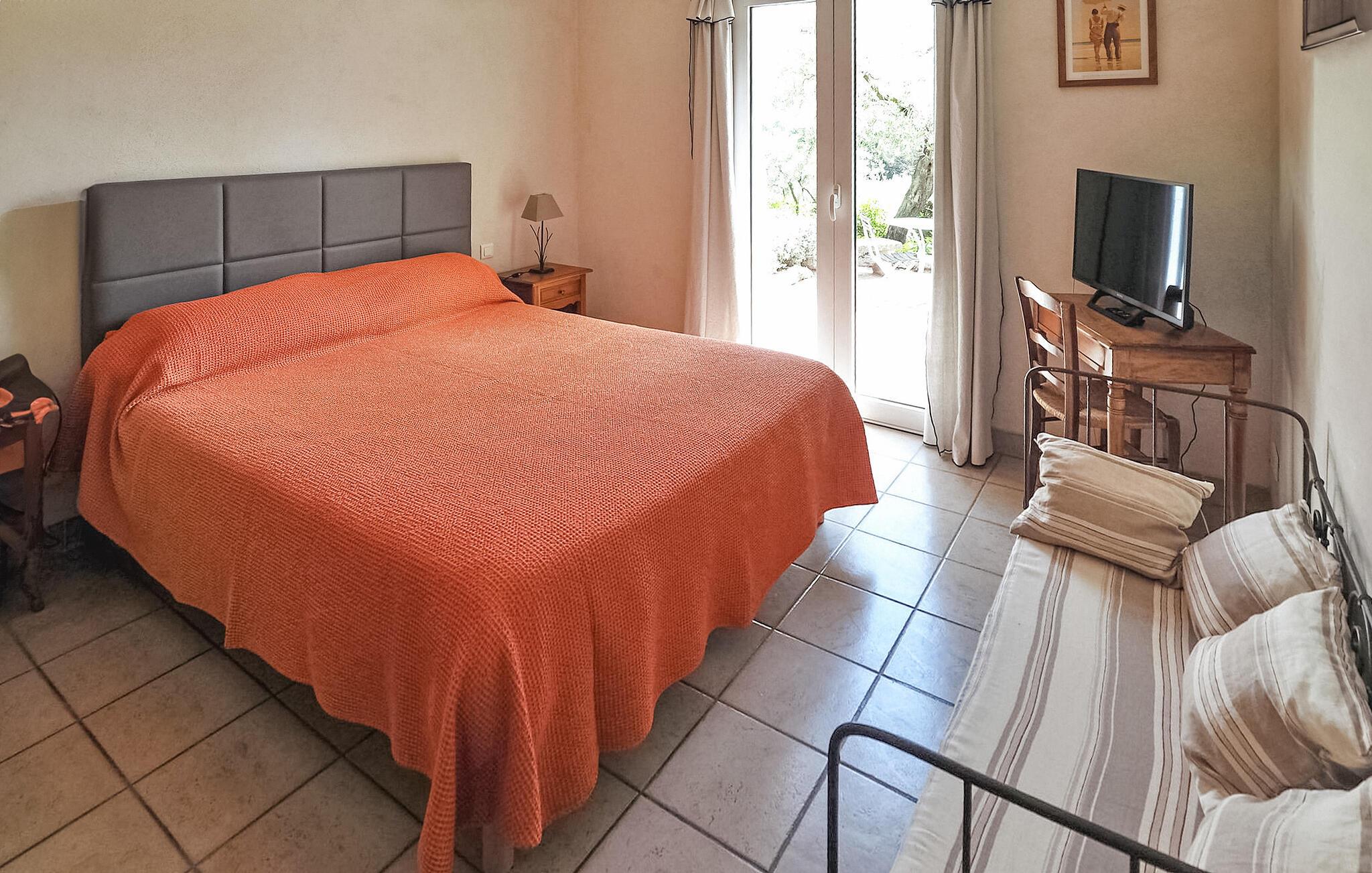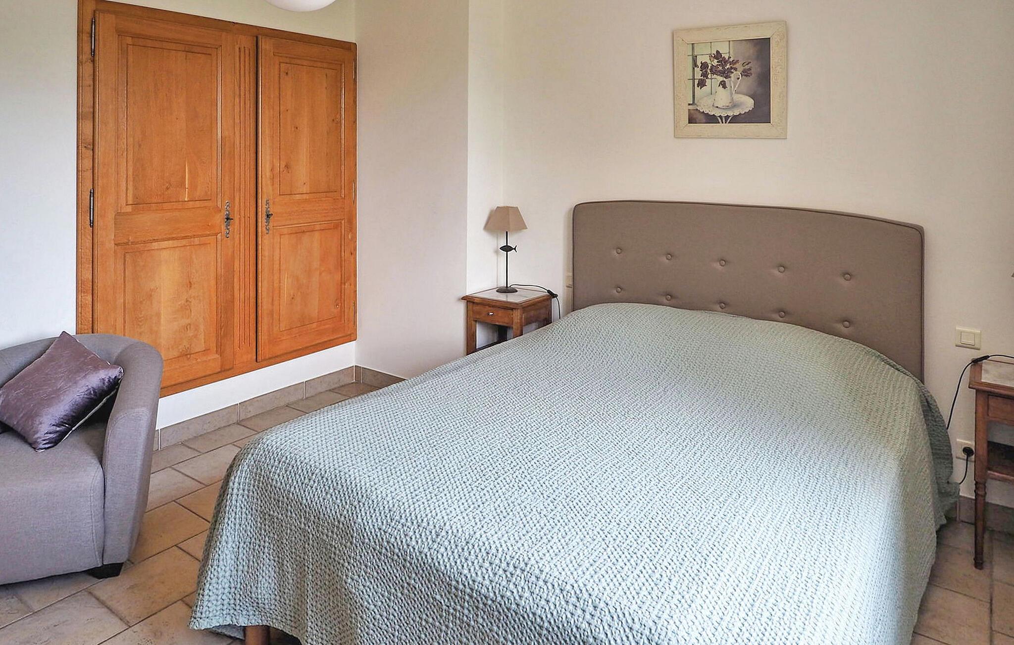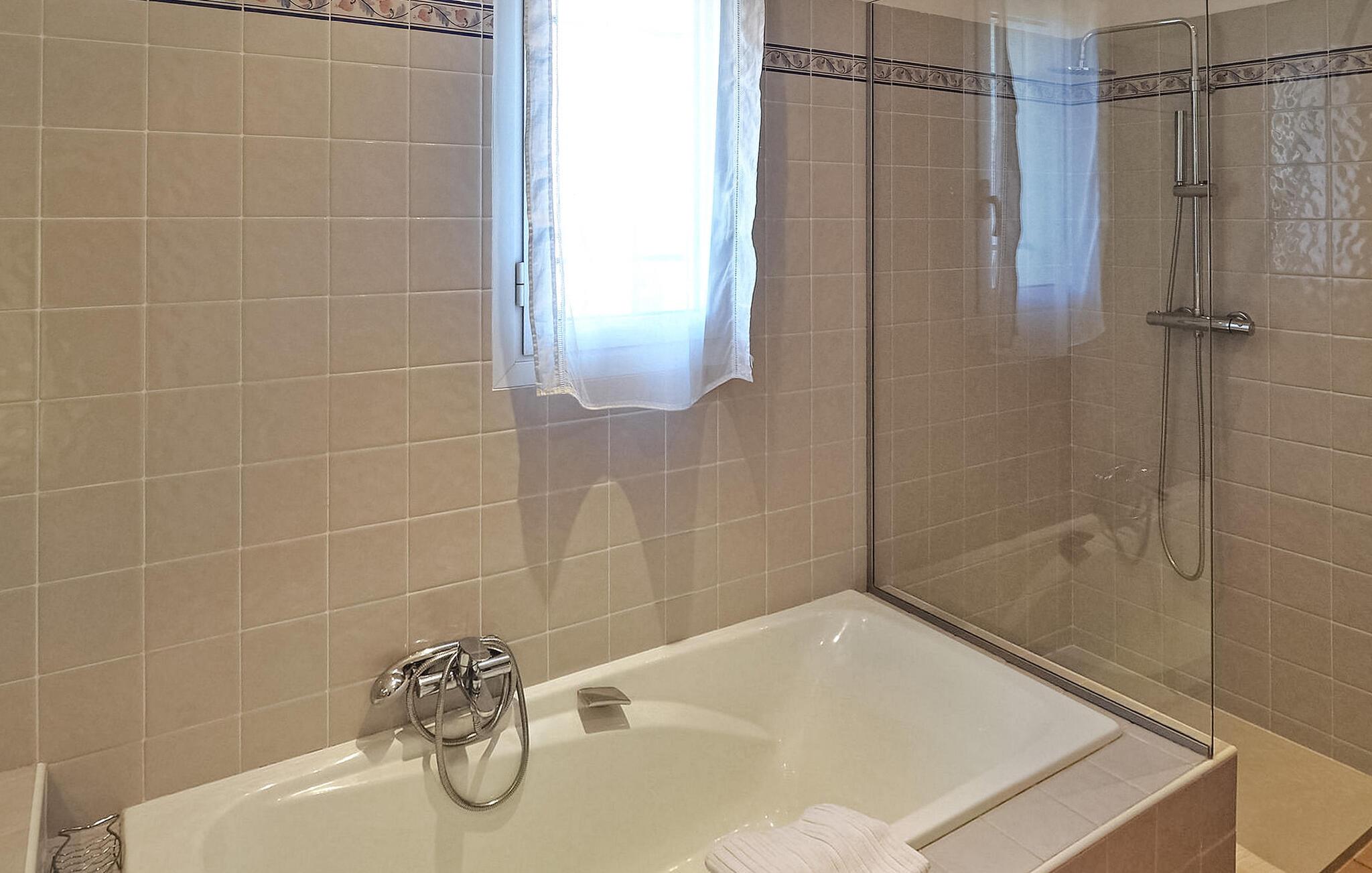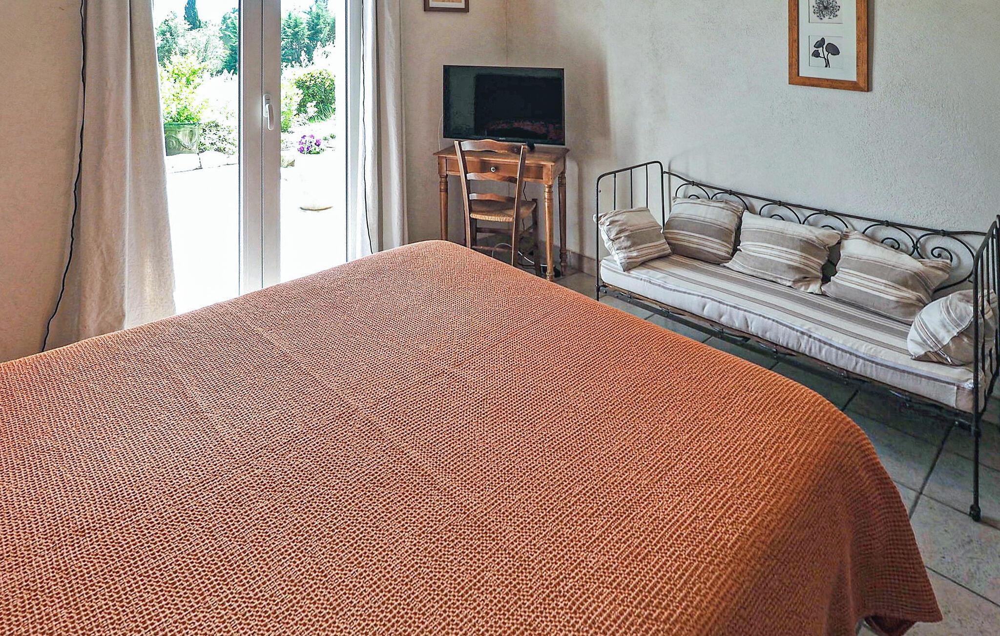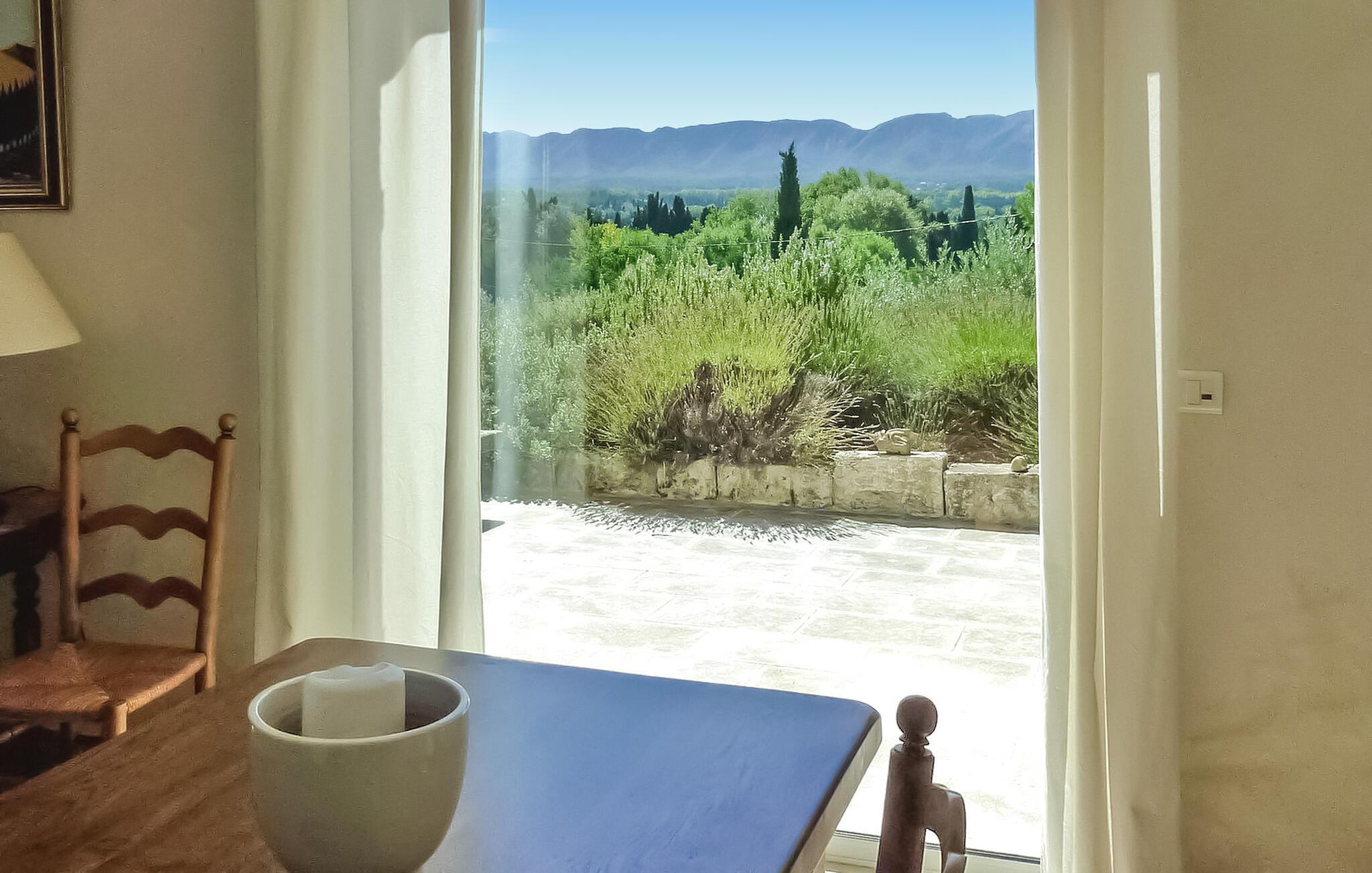 Denne charmerende villa i Saint Rémy de Provence kan prale af rolige omgivelser på en rummelig grund med en opvarmet pool og en fantastisk udsigt over Alpilles. Funktionerne i haveniveau inkluderer et køkken, der åbner ud til en overdækket terrasse, mens spisestuen/stuen (med brugbar pejs) også giver adgang til den overdækkede terrasse for at favne indendørs/udendørs ophold. I stueetagen er der et soveværelse med aircondition, eget badeværelse og en sovesofa egnet til et lille barn. De resterende to soveværelser og badeværelse med aircondition er på første sal. Udenfor er ejendommens vidtstrakte jord prydet med talrige træer. Den overdækkede terrasse byder på grillplads og alfresco spisning med havemøbler. Den private og lukkede opvarmede pool måler 13m x 6m. Huset ligger i ideelle omgivelser lige uden for landsbyen og har en smuk udsigt over Alpilles og et meget roligt miljø. Du skal bruge en bil for at komme til landsbyens centrum af Saint Rémy de Provence med alle butikker (bageri, købmand, supermarked, restauranter). Det er et ideelt udgangspunkt for at opdage Provence; Avignon, Arles og Baux de Provence. Nyd din ferie i en villa i Bouches-du-Rhône i Provence.
