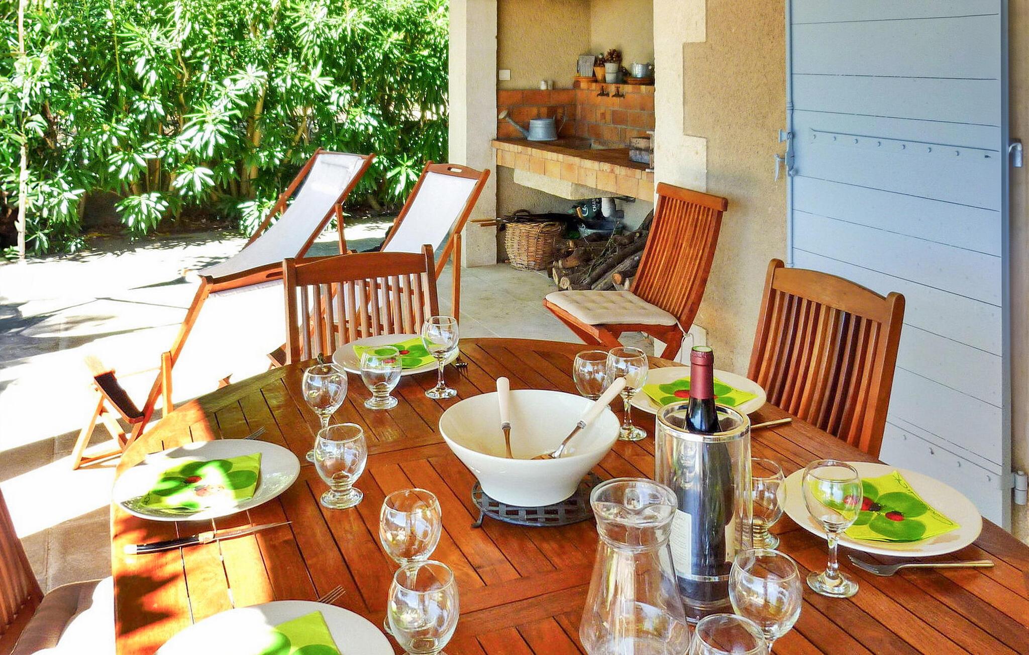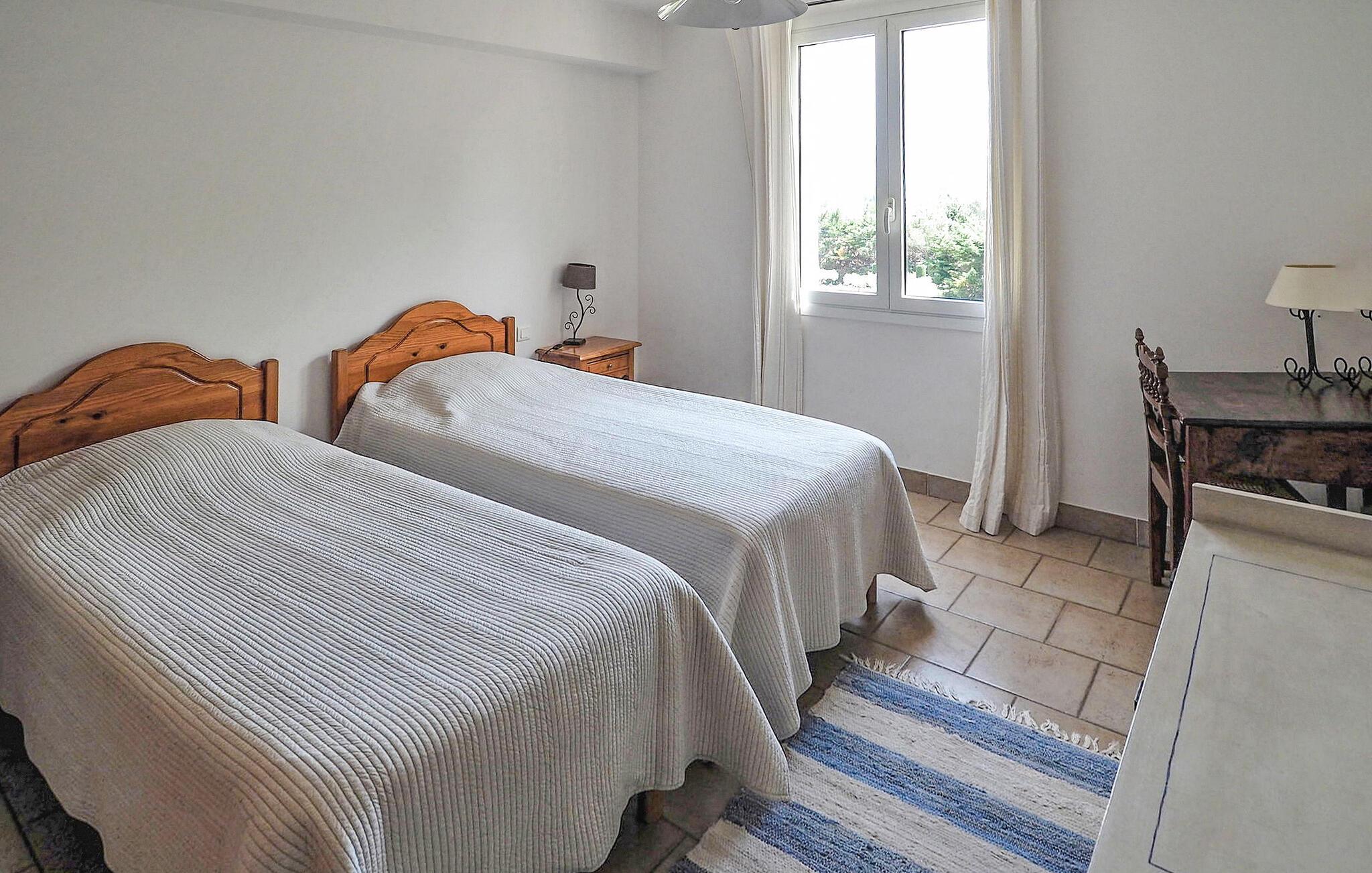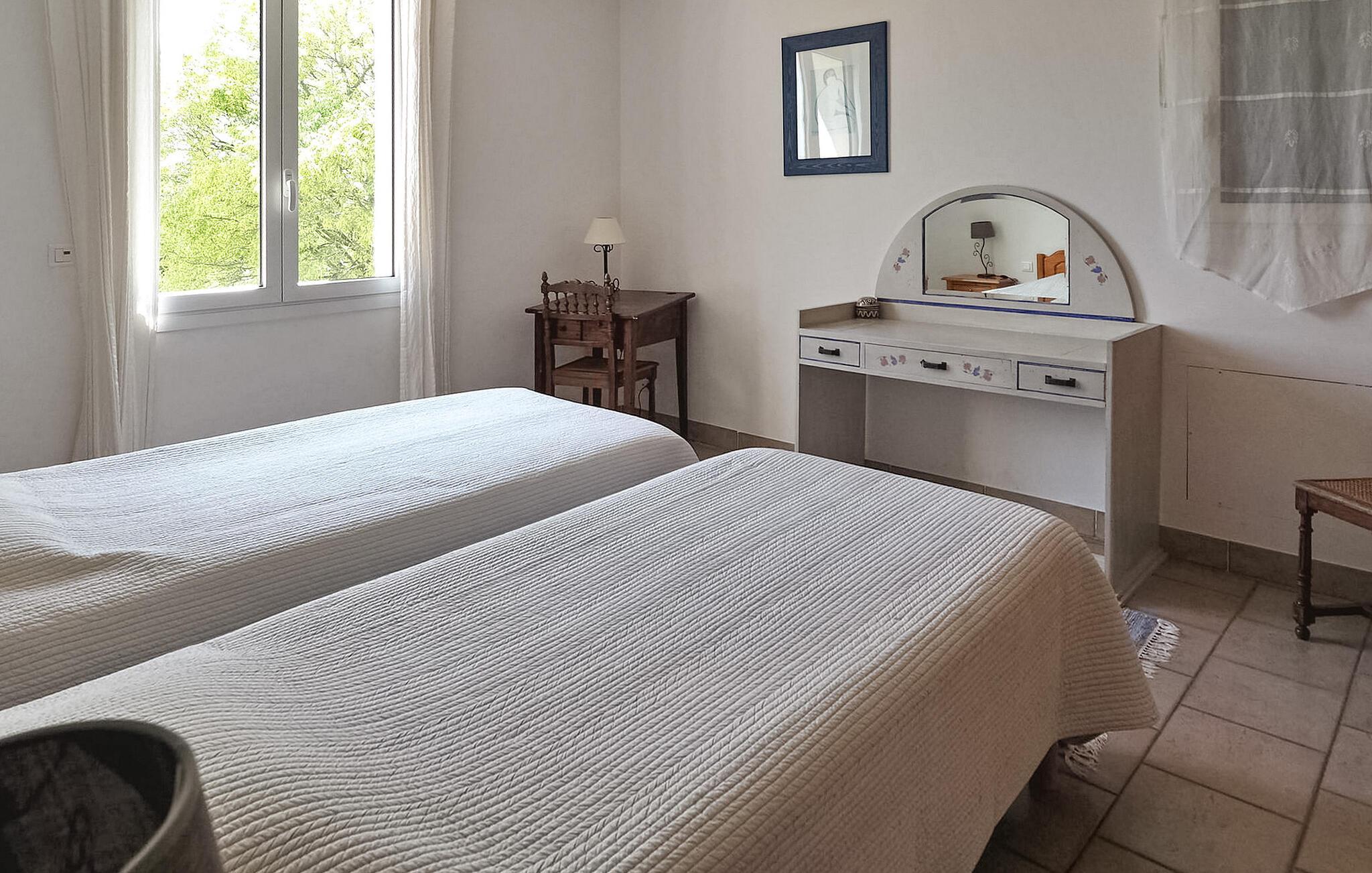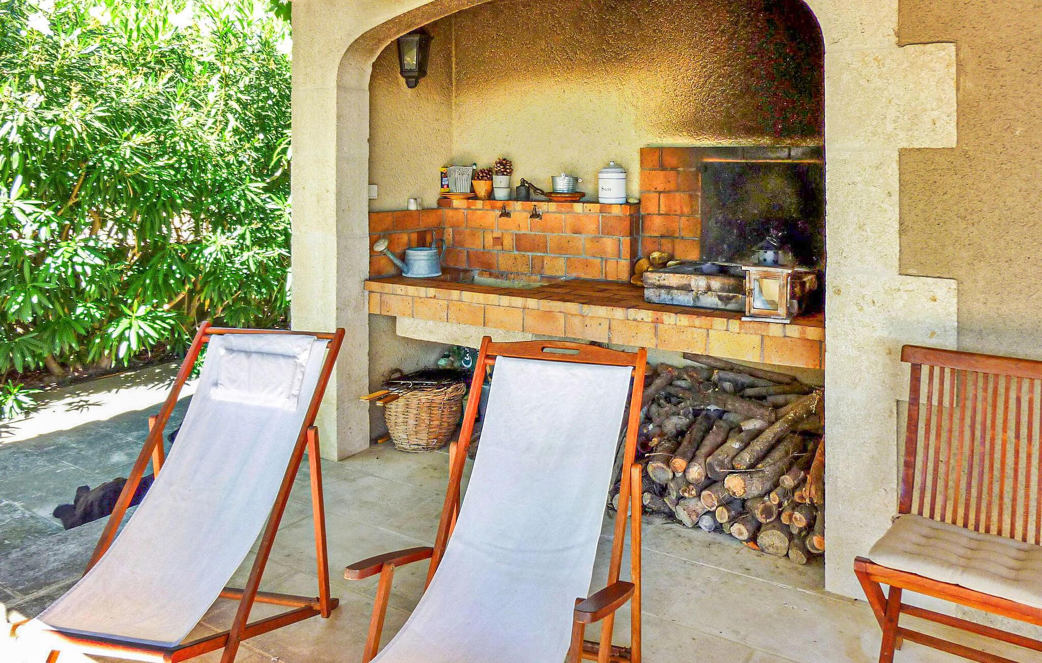 Denne charmerende villa i Saint Rémy de Provence kan prale af rolige omgivelser på en rummelig grund med en opvarmet pool og en fantastisk udsigt over Alpilles. Funktionerne i haveniveau inkluderer et køkken, der åbner ud til en overdækket terrasse, mens spisestuen/stuen (med brugbar pejs) også giver adgang til den overdækkede terrasse for at favne indendørs/udendørs ophold. I stueetagen er der et soveværelse med aircondition, eget badeværelse og en sovesofa egnet til et lille barn. De resterende to soveværelser og badeværelse med aircondition er på første sal. Udenfor er ejendommens vidtstrakte jord prydet med talrige træer. Den overdækkede terrasse byder på grillplads og alfresco spisning med havemøbler. Den private og lukkede opvarmede pool måler 13m x 6m. Huset ligger i ideelle omgivelser lige uden for landsbyen og har en smuk udsigt over Alpilles og et meget roligt miljø. Du skal bruge en bil for at komme til landsbyens centrum af Saint Rémy de Provence med alle butikker (bageri, købmand, supermarked, restauranter). Det er et ideelt udgangspunkt for at opdage Provence; Avignon, Arles og Baux de Provence. Nyd din ferie i en villa i Bouches-du-Rhône i Provence.